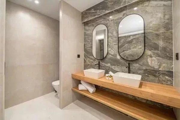 Con una superficie catastral de 135 m², la vivienda ofrece una distribución funcional y equilibrada. Dispone de dos amplios dormitorios y dos modernos baños, ambos con acabados de diseño. La cocina, de estilo contemporáneo, está totalmente equipada con electrodomésticos de última generación y cuenta con un cuarto de lavado independiente, optimizando el espacio y la practicidad del hogar.