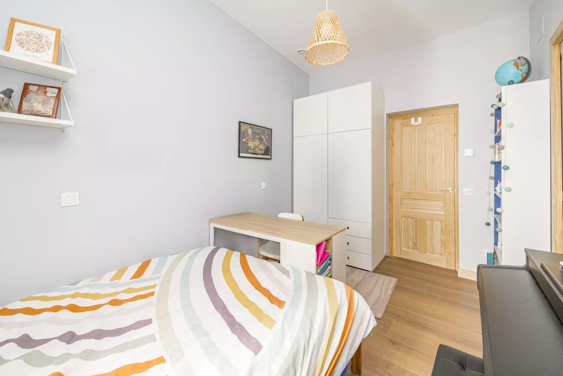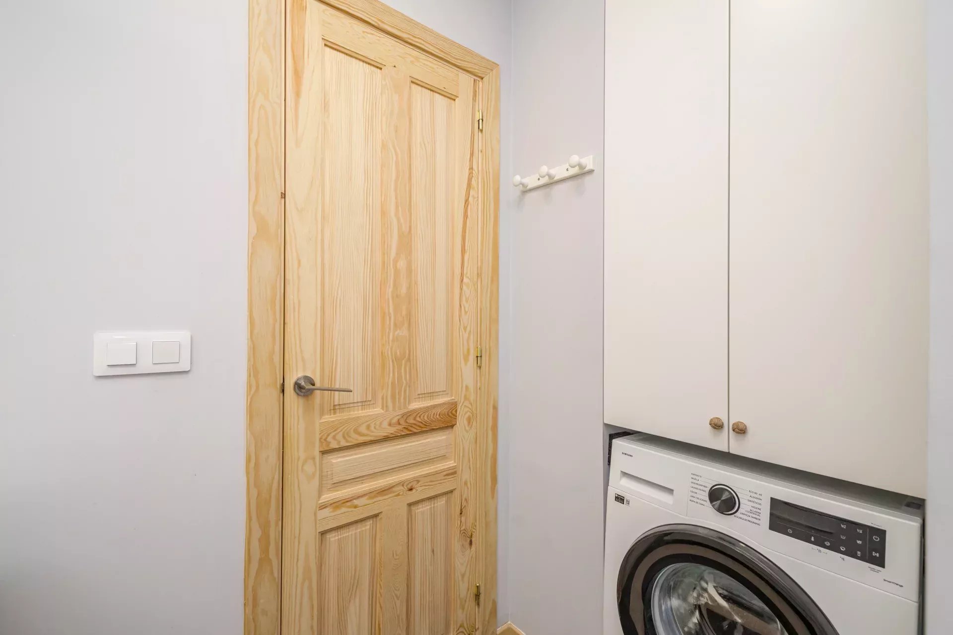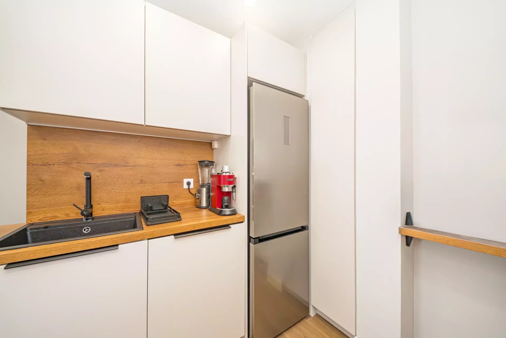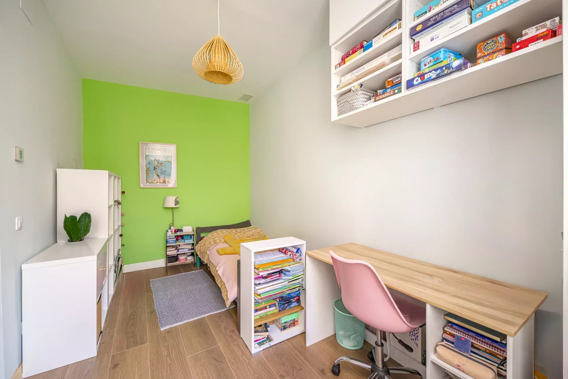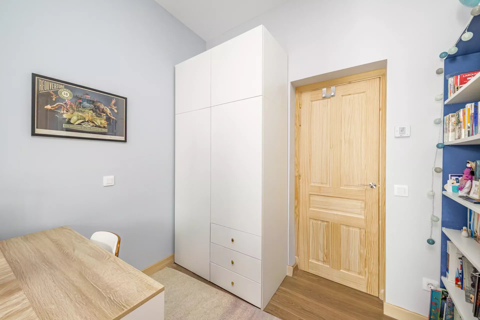 La cocina ha sido instalada a medida por Schmidt, diseñada con precisión y equipada con electrodomésticos de alta gama que aún están en garantía. En el pasillo, los armarios empotrados también son a medida, ofreciendo amplias soluciones de almacenamiento personalizadas.