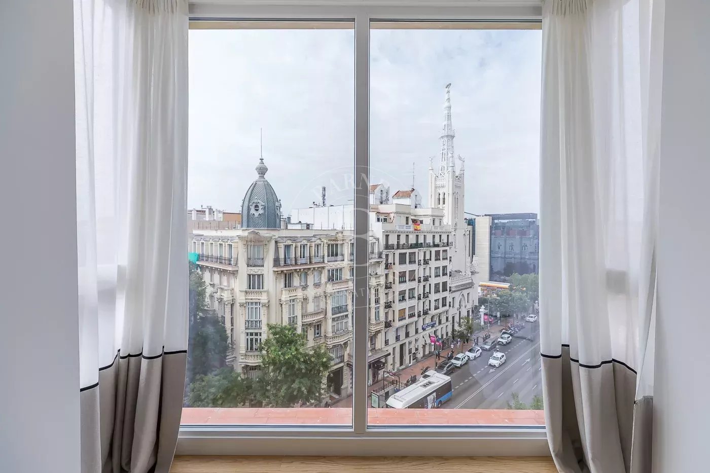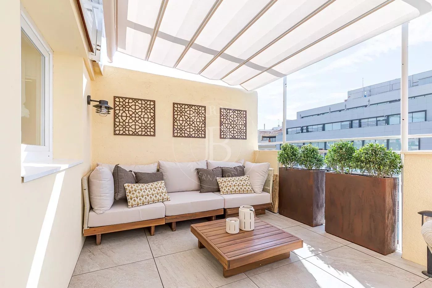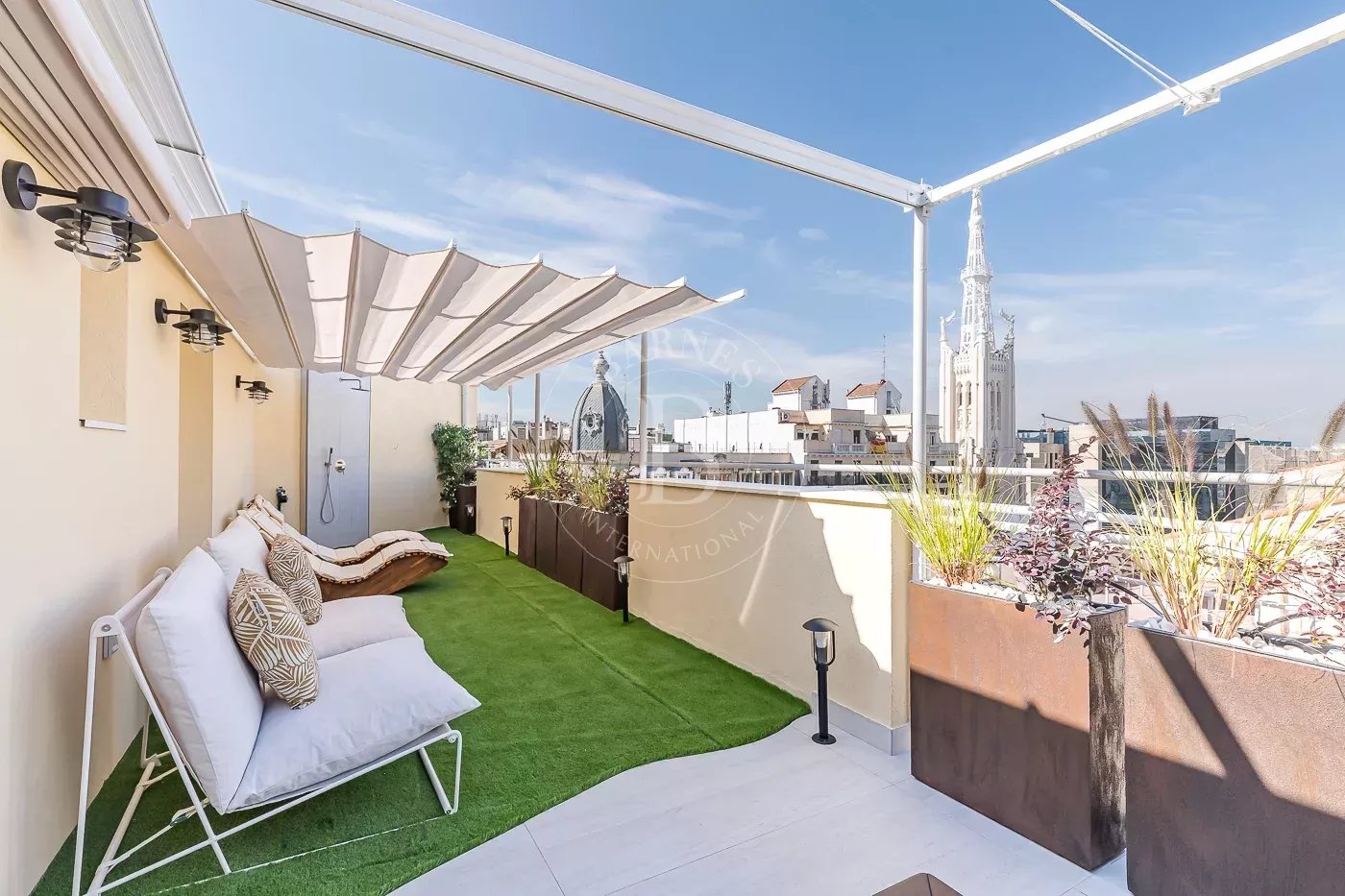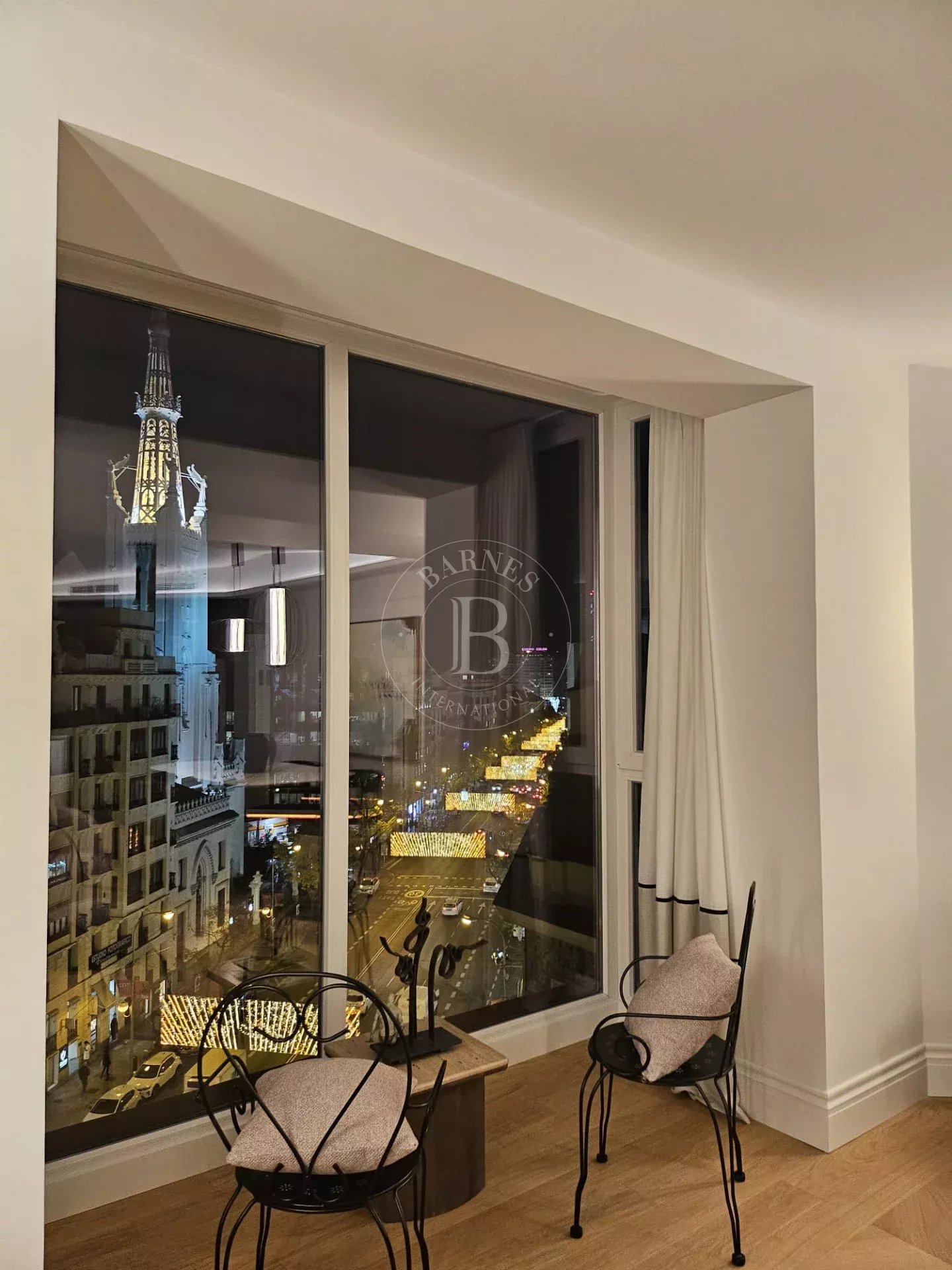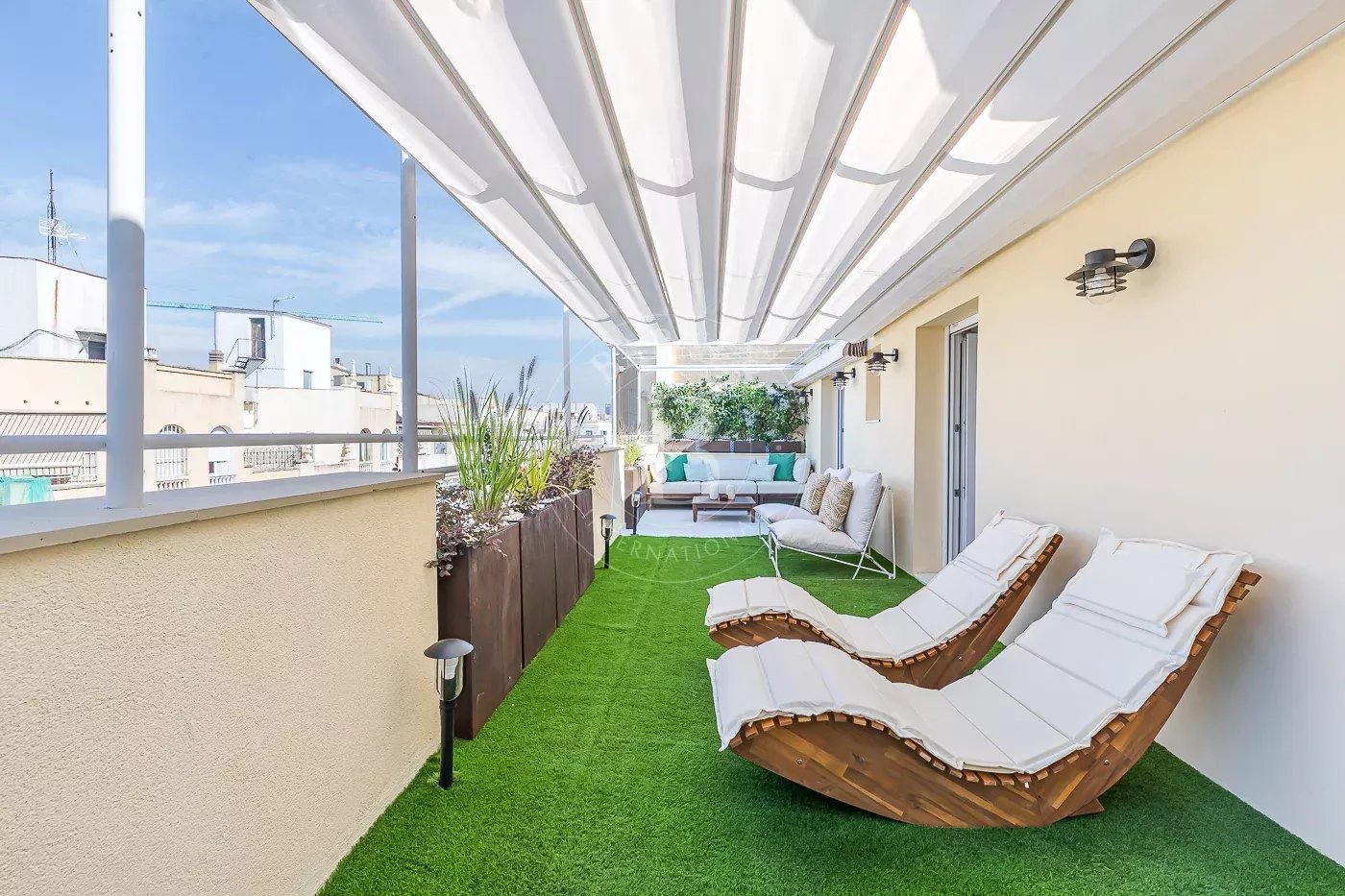 Las dos terrazas, totalmente amuebladas y equipadas con toldos domotizados, riego por goteo y vegetación natural, ofrecen dos oasis privados con vistas privilegiadas al skyline de Madrid.