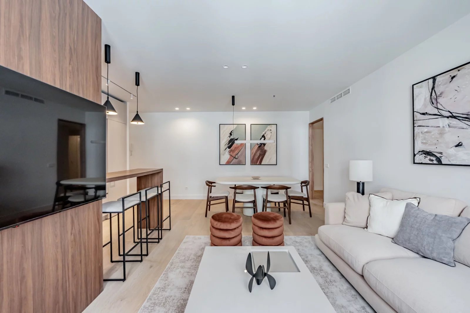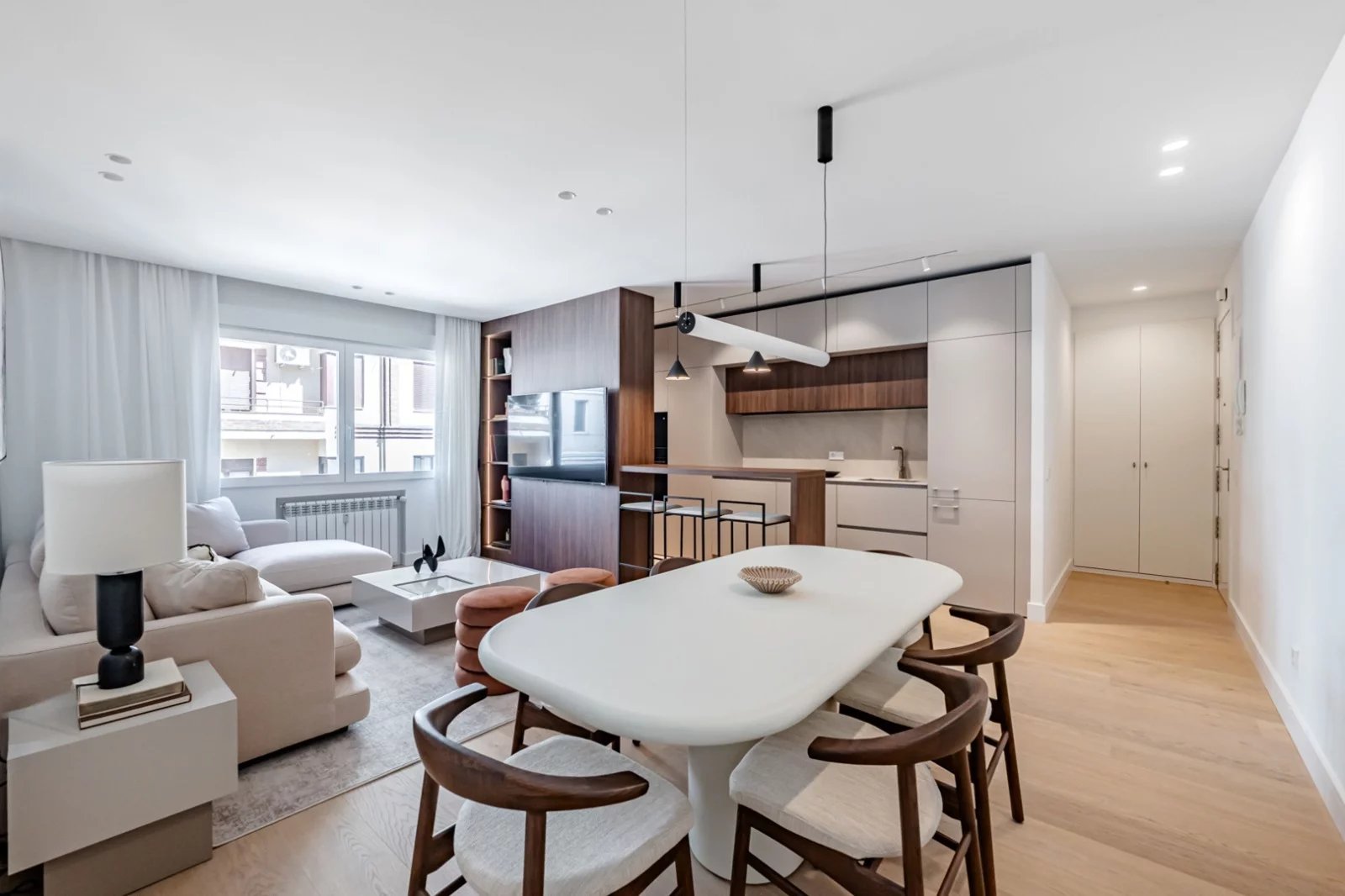 BARNES Madrid presenta esta elegante vivienda de 140 m² construidos situada en una tercera planta de un edificio clásico. La propiedad, actualmente en proceso de reforma integral con finalización prevista para marzo de 2026, ha sido concebida con un cuidado proyecto de interiorismo que combina funcionalidad, diseño contemporáneo y materiales de alta calidad.