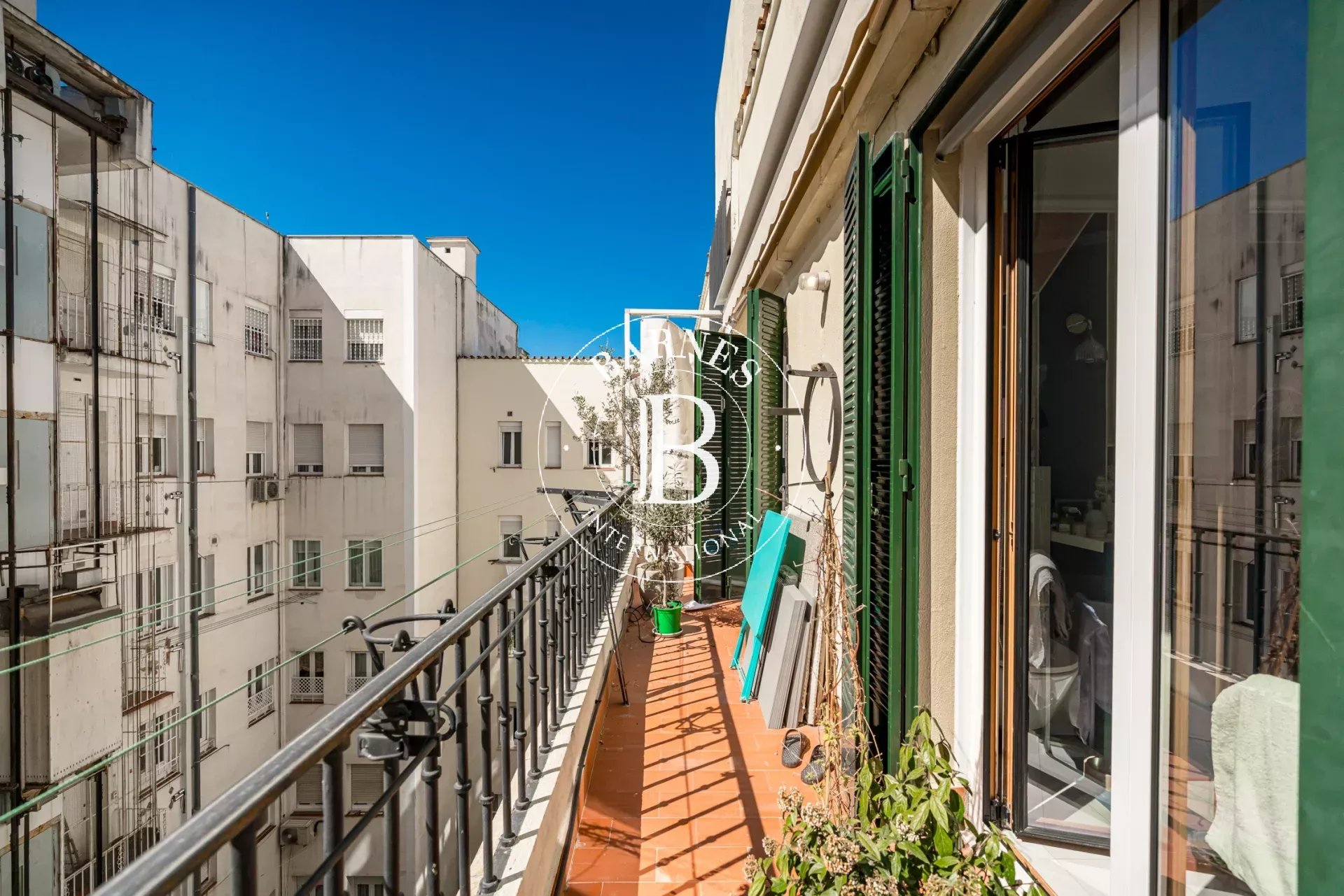 La vivienda, en formato ático, ofrece una magnífica terraza privada, ideal para disfrutar de momentos al aire libre, así como un elegante balcón corrido que recorre la fachada lateral de la finca hacia un amplio patio interior, aportando carácter, continuidad y una agradable conexión con el exterior.