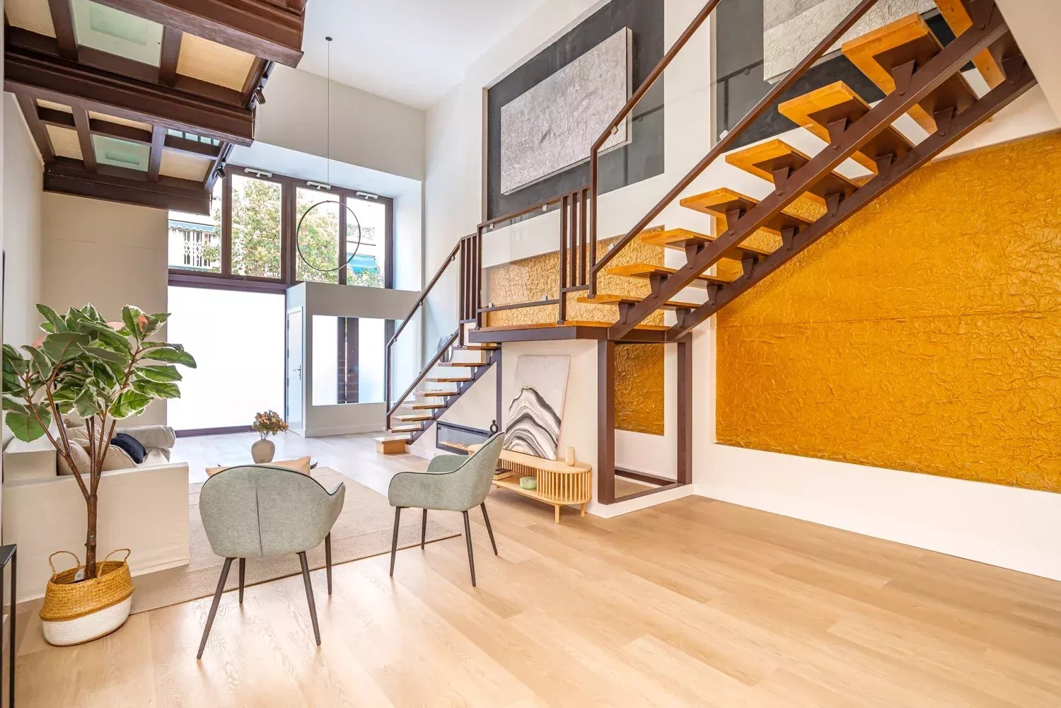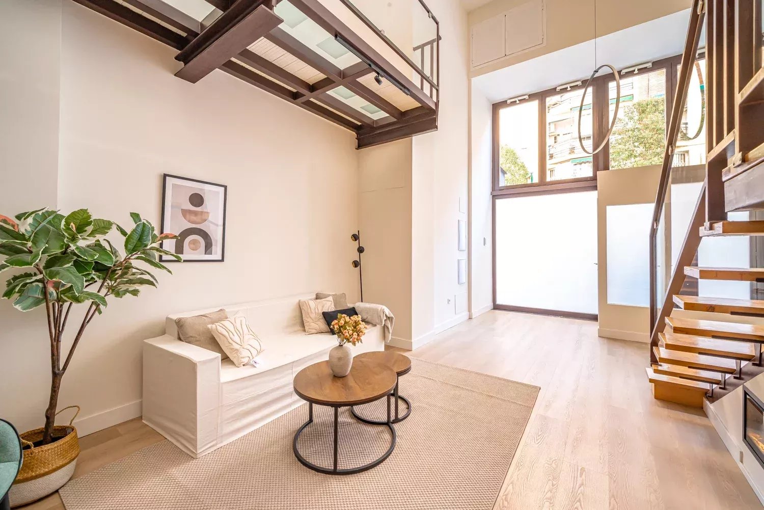 BARNES presenta en exclusiva un espectacular loft dúplex de 160 m² recientemente reformado, ubicado en la planta baja de un edificio residencial consolidado. La vivienda destaca por su impresionante altura de techos de 6 metros, que aporta amplitud, luminosidad y un carácter único y original a cada uno de sus espacios.