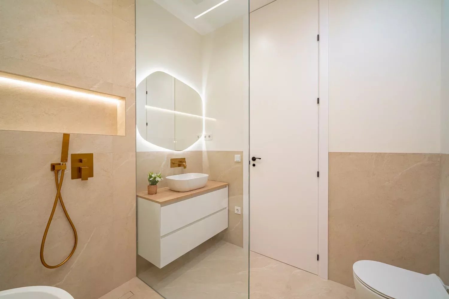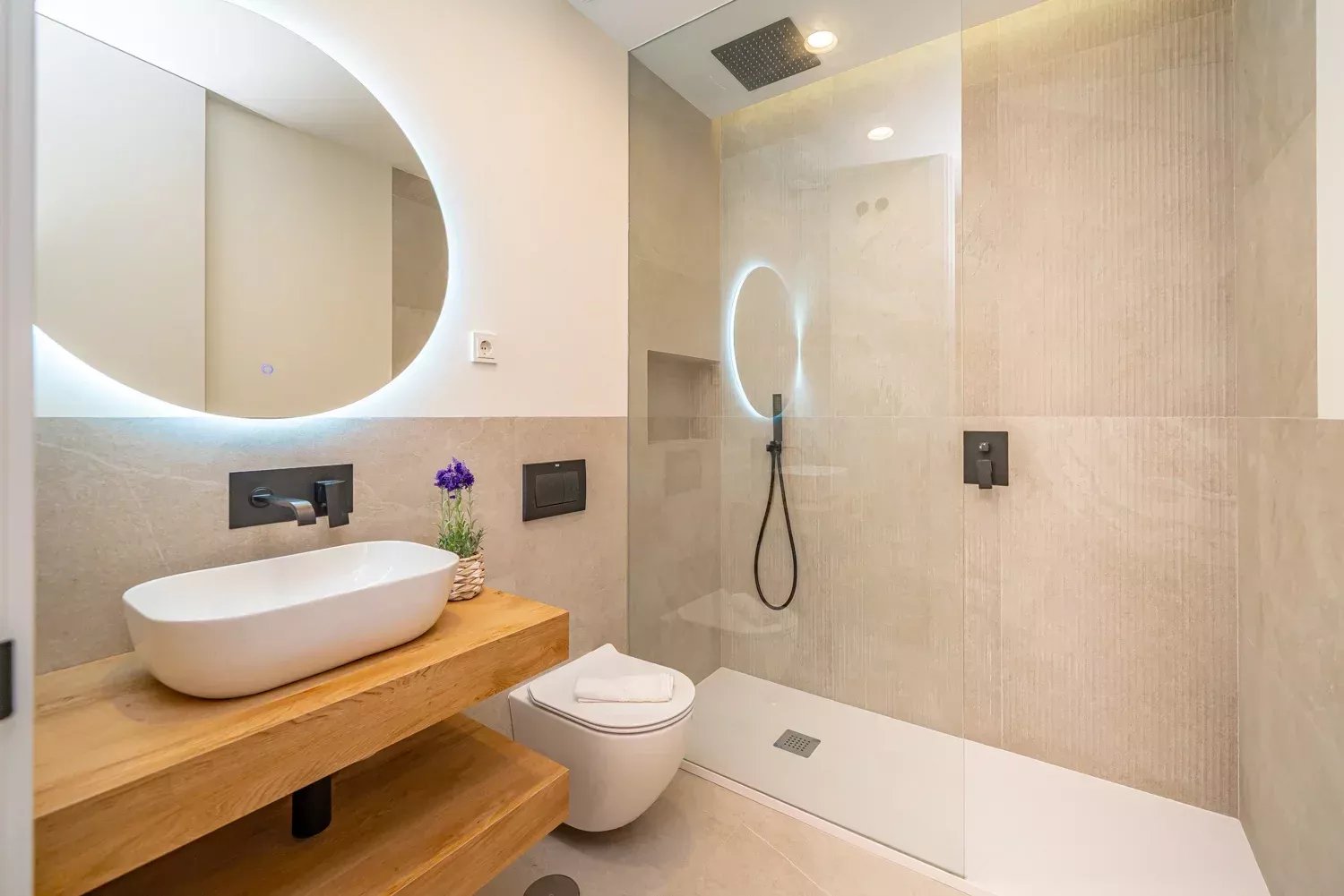 La planta baja, alberga una amplia zona de día con salón, comedor y cocina de concepto abierto, diseñada para potenciar la sensación de amplitud y favorecer la vida social. En esta misma planta se encuentra el primer dormitorio, que dispone de un elegante vestidor y baño en suite, ofreciendo privacidad y confort.