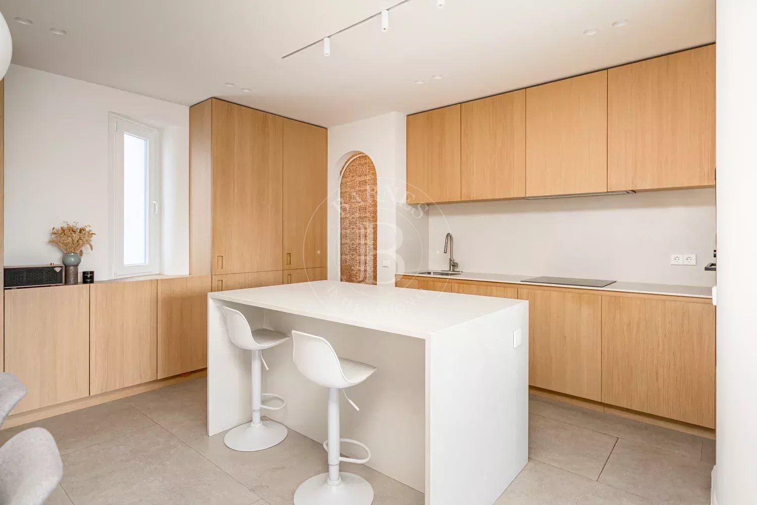 El salón–comedor, amplio y muy luminoso, se abre directamente a una magnífica terraza privada de aproximadamente 15 m², un espacio exclusivo y sin miradas externas, ideal para disfrutar del exterior con total privacidad. La cocina, realizada a medida, está equipada con materiales de primer nivel y una isla central próxima al comedor, ofreciendo un entorno moderno, funcional y perfectamente aprovechado.