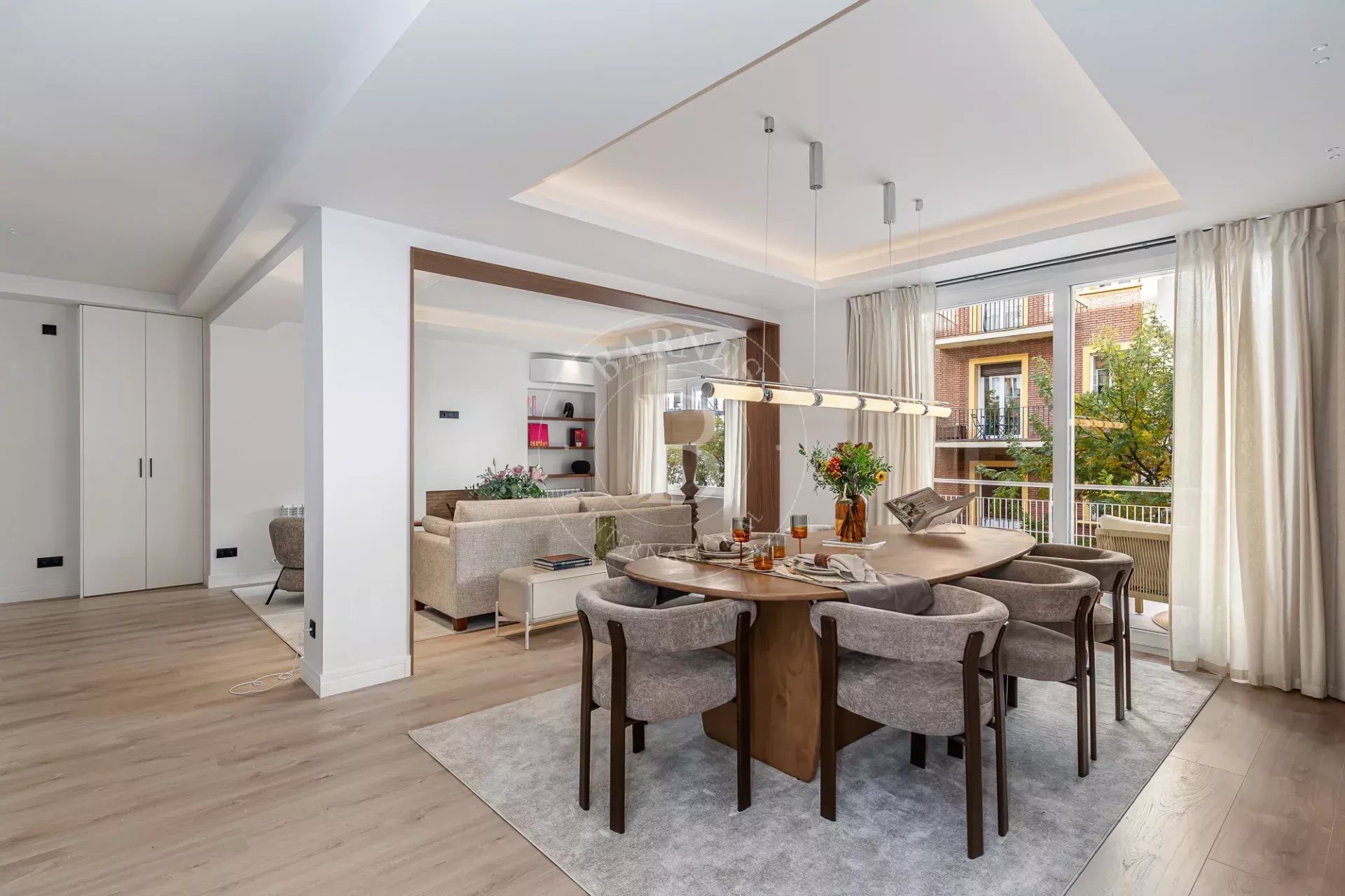 BARNES Madrid presenta esta elegante vivienda completamente reformada y amueblada, situada en una de las zonas más atractivas del distrito de Chamberí, en pleno barrio de Arapiles. Con 175 m², esta tercera planta ofrece amplitud, luminosidad y una cuidada reforma de diseño, además de una agradable terraza que amplía el espacio de salón.