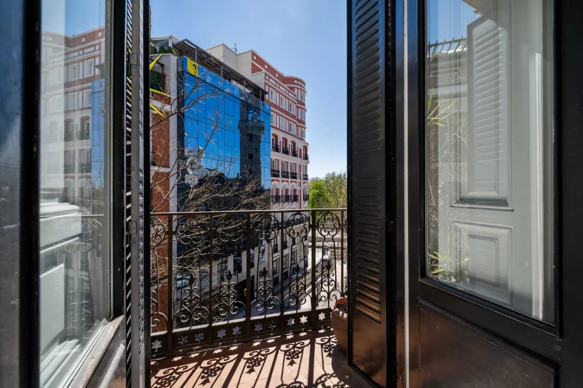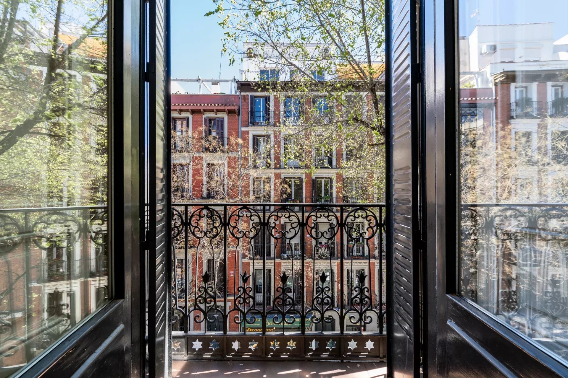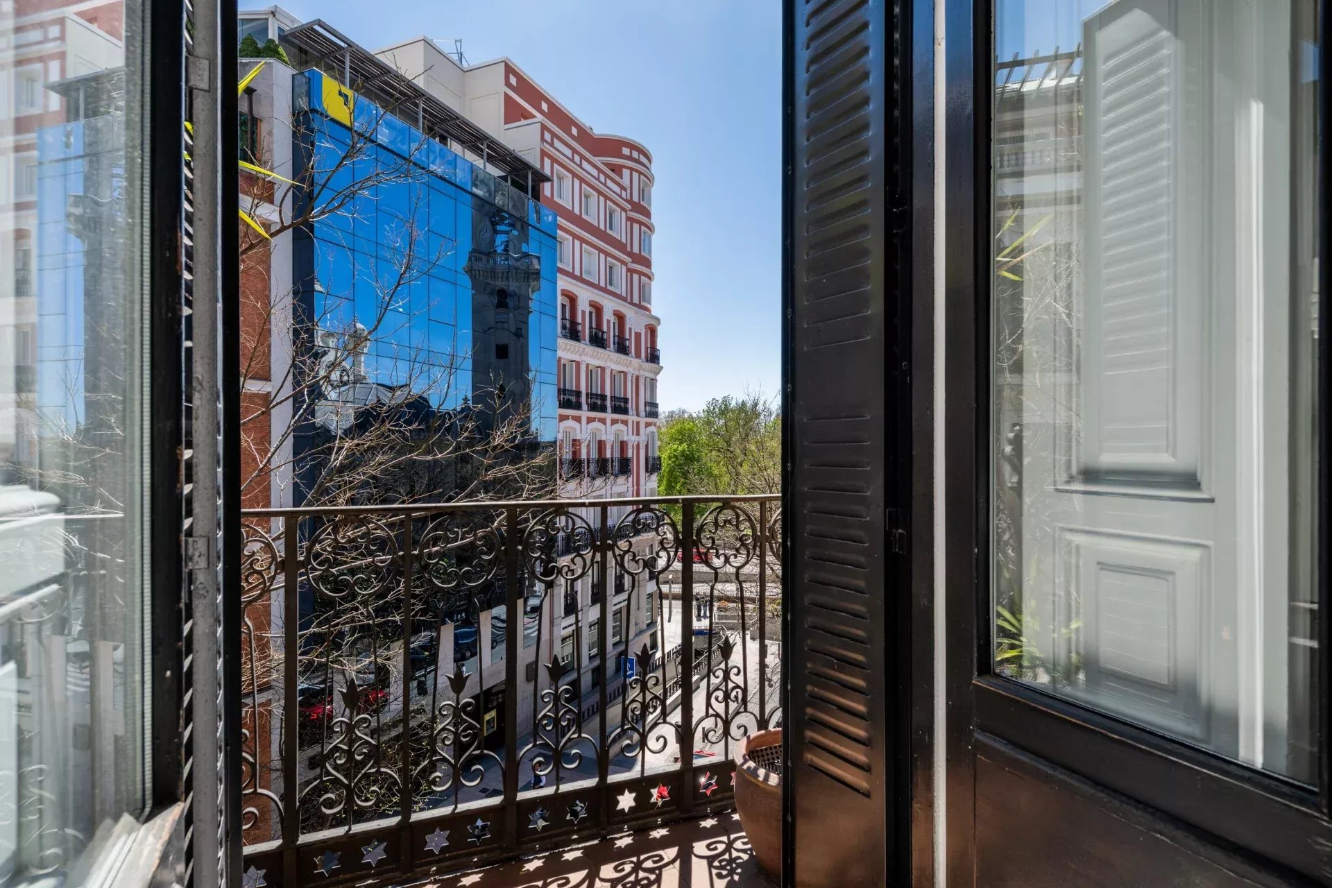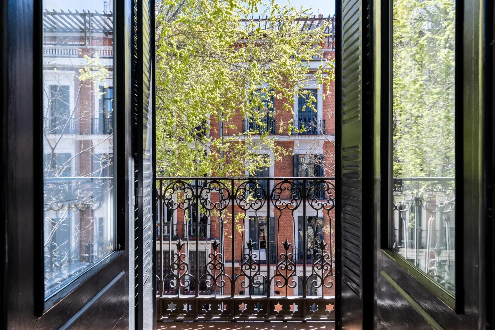La propiedad destaca especialmente por su imponente fachada exterior, con cinco balcones a la calle en el salón principal que enmarcan unas vistas completamente despejadas hacia el Retiro, aportando una conexión directa con uno de los enclaves más emblemáticos de Madrid. Esta condición exterior se extiende a toda la vivienda, ya que cada uno de los dormitorios cuenta también con salida o ventana a fachada, garantizando luz natural, ventilación cruzada y una calidad espacial superior en todas las estancias.