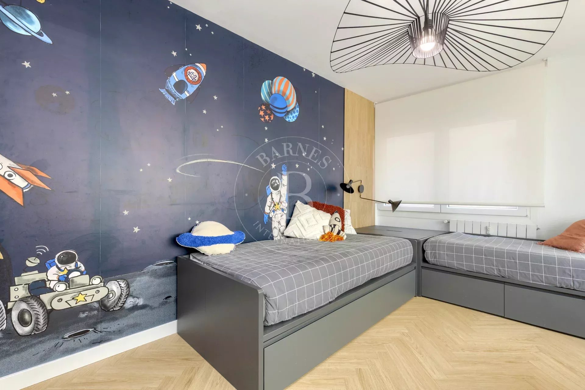 La cocina, espaciosa y de diseño moderno, ha sido pensada para ofrecer la máxima funcionalidad sin renunciar a la elegancia. La zona privada cuenta con cuatro dormitorios bien proporcionados y tres baños de alta calidad, además de un amplio armario y un espacio independiente destinado a lavandería.