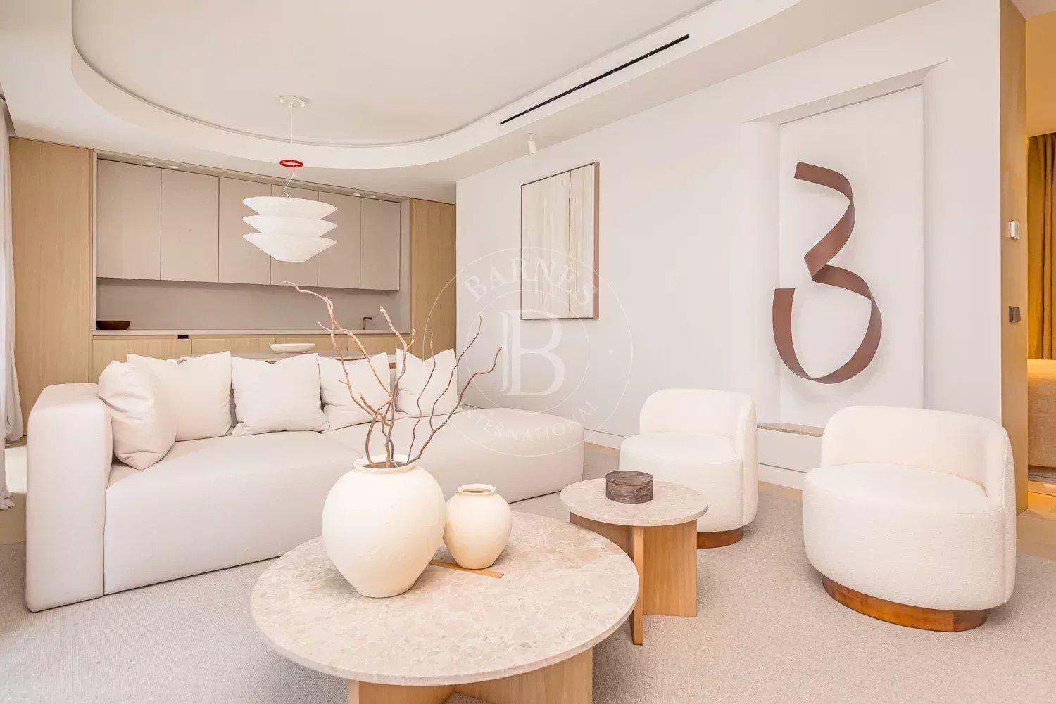 La zona de día se organiza en un luminoso y amplio salón-comedor con vistas despejadas, mientras que los dos dormitorios —el principal con baño en suite— se orientan hacia un cuidado jardín interior, asegurando serenidad, privacidad y confort superiores. La cocina de diseño, totalmente integrada, incorpora un sistema de inducción oculto que aporta una estética limpia y armónica con el espacio.