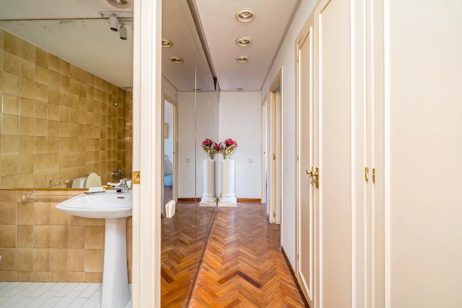 El apartamento consta de 4 dormitorios, de los cuales 2 cuentan con baño privado y 1 con balcón interior, perfectos para acoger a la familia y a los invitados con comodidad. El amplio salón-comedor, bañado de luz natural, ofrece acceso directo al balcón. La cocina, a reformar según sus gustos, da acceso a un balcón-lavadero que aporta mayor funcionalidad.