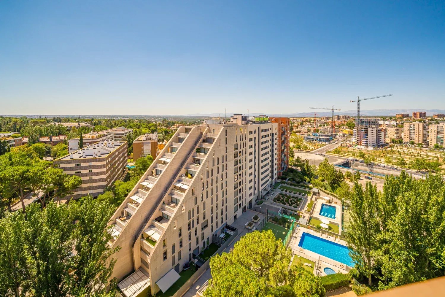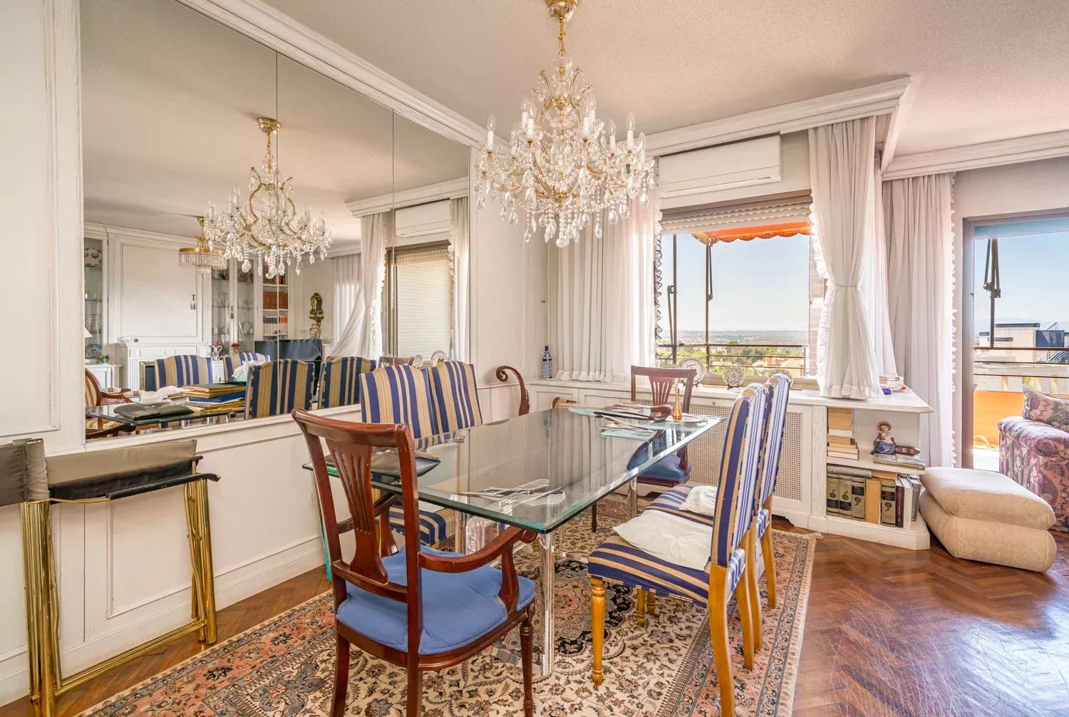 Situado en un encantador edificio con piscina y jardines en comunidad, este espacioso apartamento de 171 m² útiles en el 11º piso goza de una luminosidad excepcional gracias a su orientación y a su gran balcón que rodea casi completamente la vivienda, ofreciendo unas vistas impresionantes de Madrid.