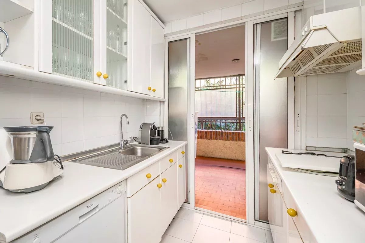 Situado en una primera planta con altura superior a la habitual, la vivienda goza de vistas despejadas al jardín y al arbolado circundante. Su triple orientación este, sur y oeste garantiza una excelente luminosidad en todas sus estancias.
