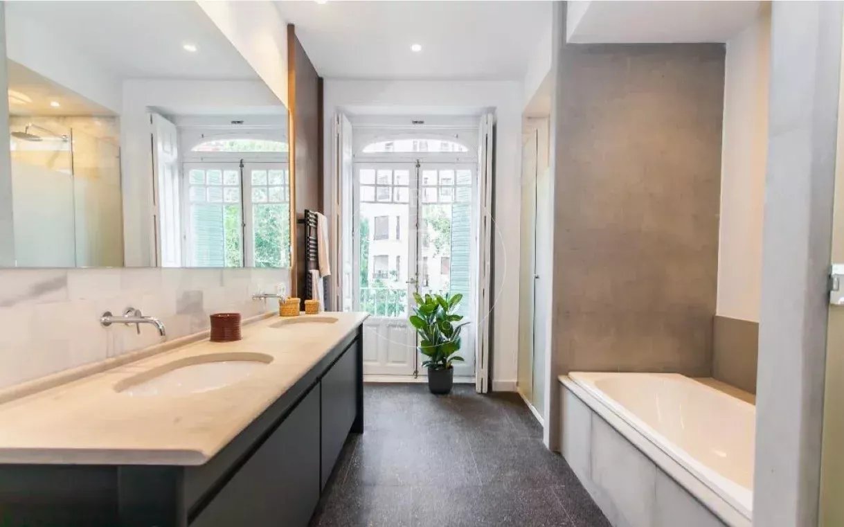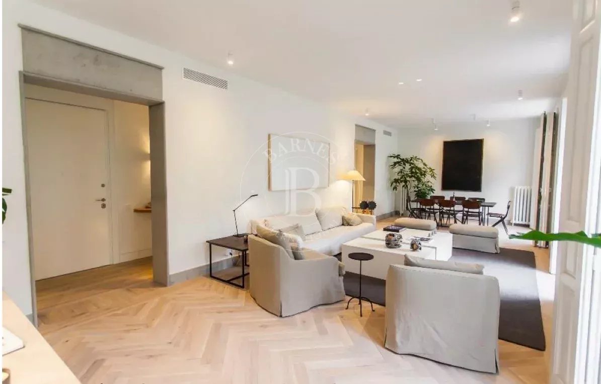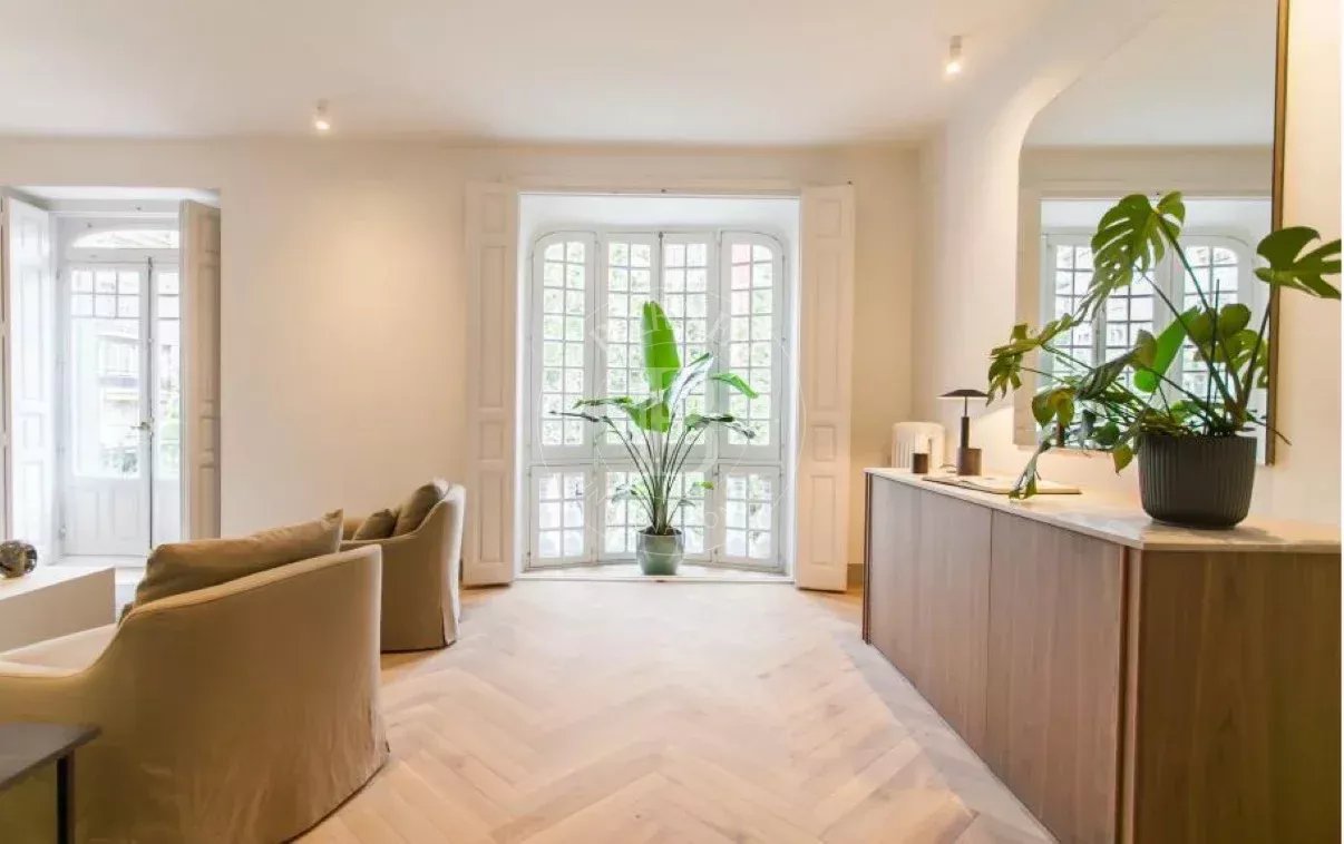 La vivienda se sitúa en un elegante edificio clásico y ha sido completamente renovada con materiales de alta gama y una distribución contemporánea que combina amplitud, funcionalidad y sofisticación. Sus altos techos realzan la sensación de espacio y elegancia, mientras que su configuración pasante permite una circulación natural de la luz a lo largo de toda la vivienda. Los espacios principales se articulan alrededor de un amplio salón que se abre hacia la terraza, permitiendo disfrutar de una conexión privilegiada con el exterior y una agradable continuidad entre interior y exterior.