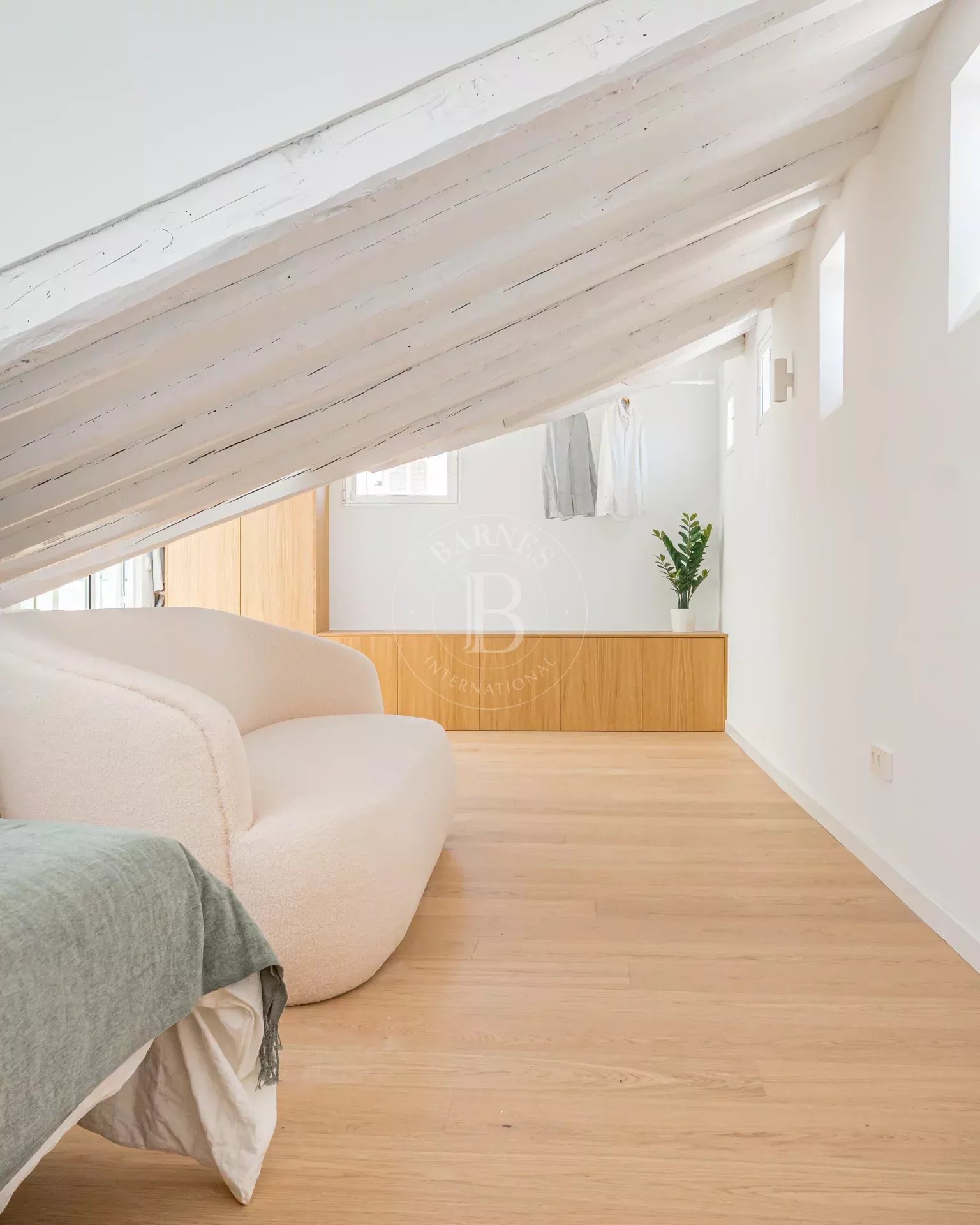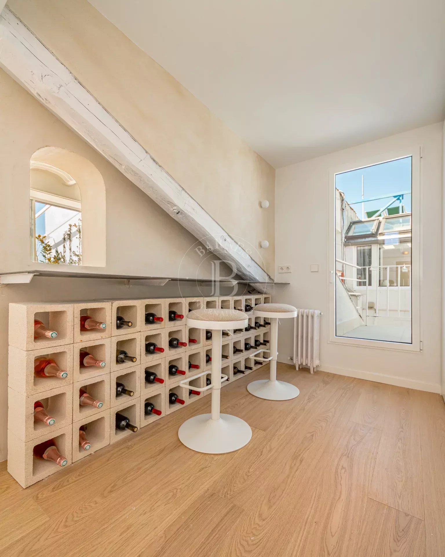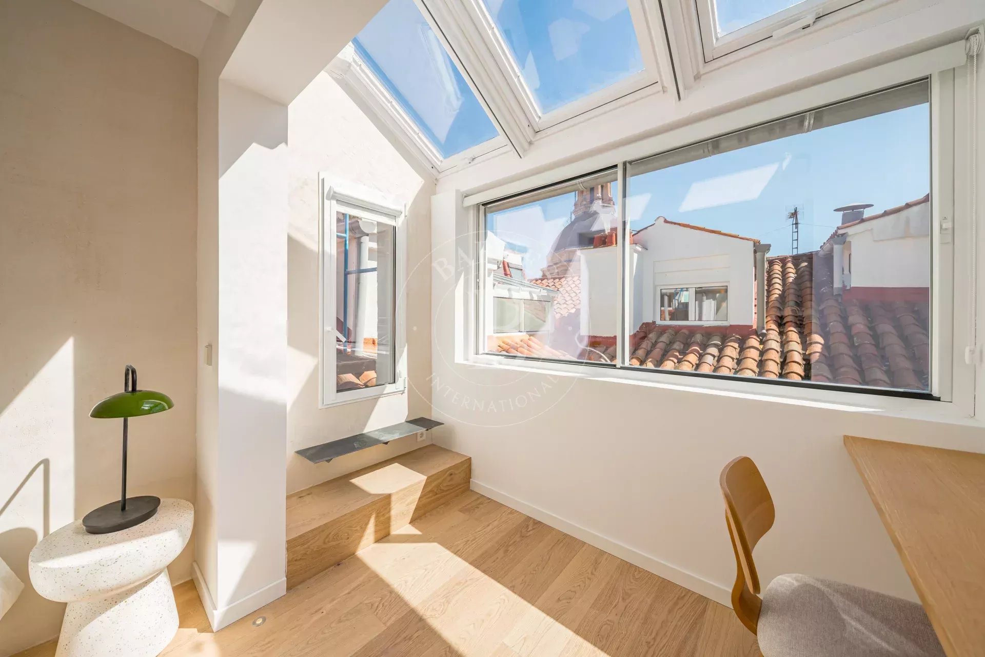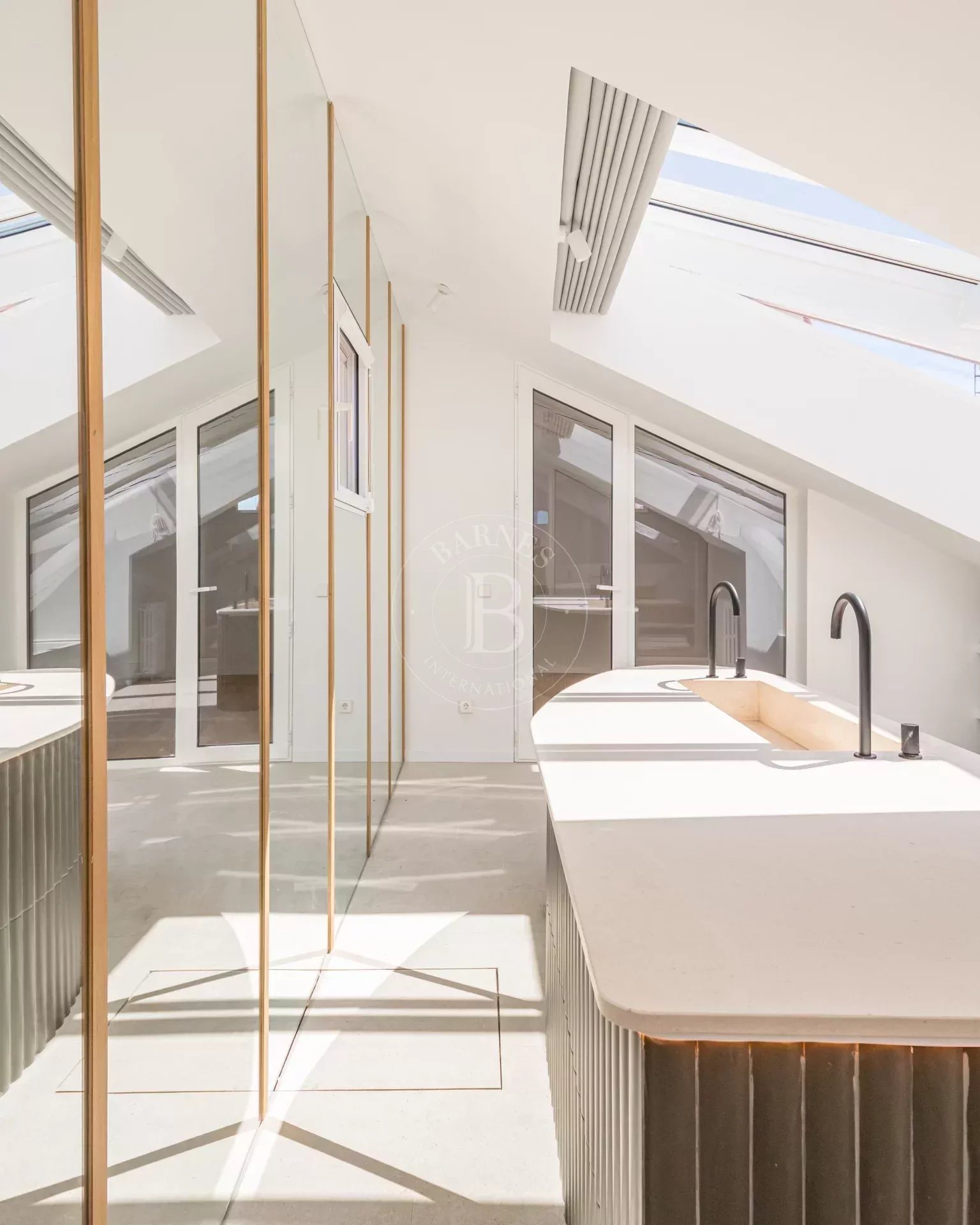El ático ocupa la totalidad de la planta superior y destaca por su extraordinaria luminosidad y sus espectaculares vistas 360º sobre Madrid. Su orientación sur y los amplios ventanales conectan los espacios interiores con dos terrazas exteriores, desde las que se disfrutan vistas abiertas a las cúpulas madrileñas y al skyline urbano, ofreciendo una sensación de privacidad y privilegio excepcional en el corazón de la ciudad.