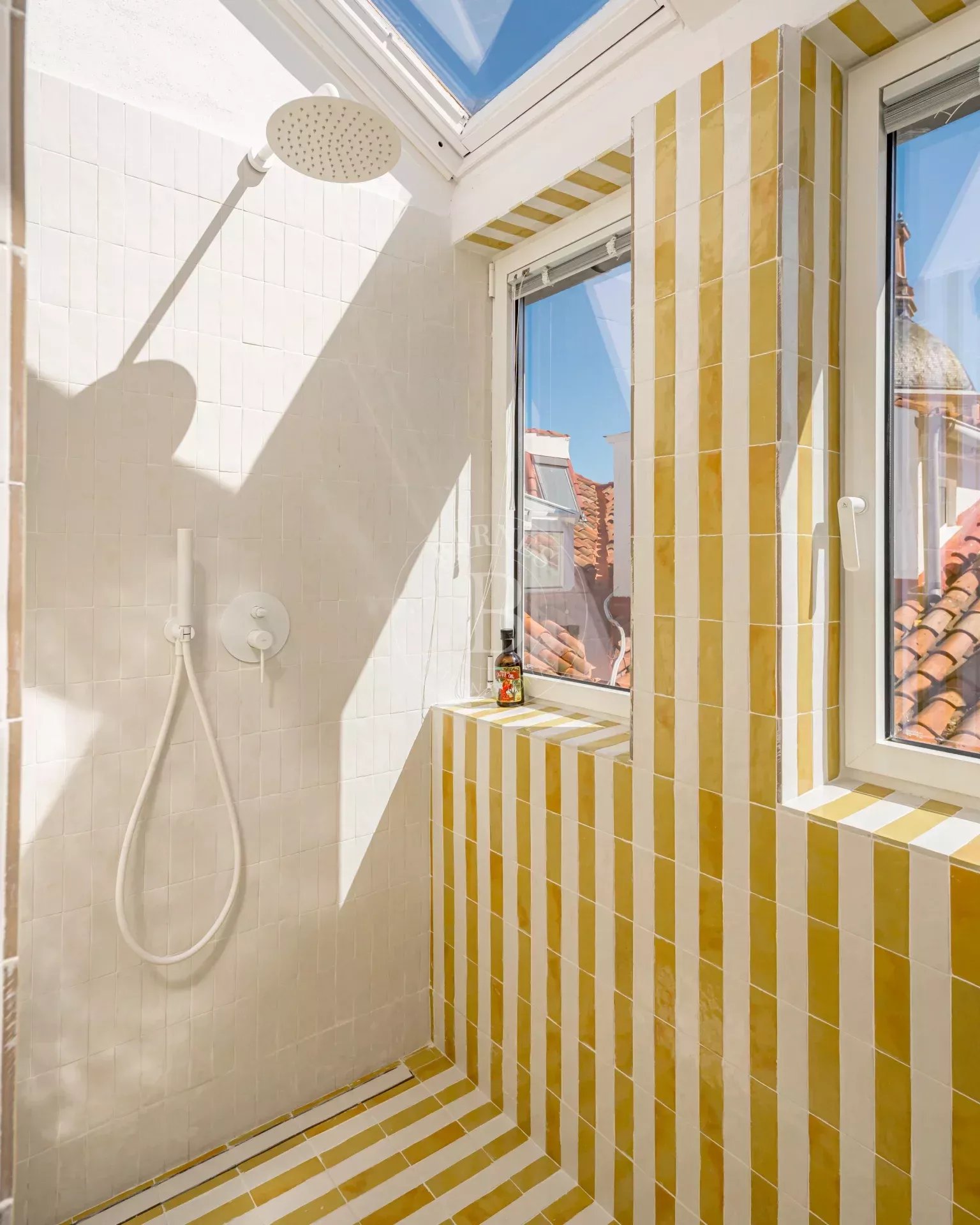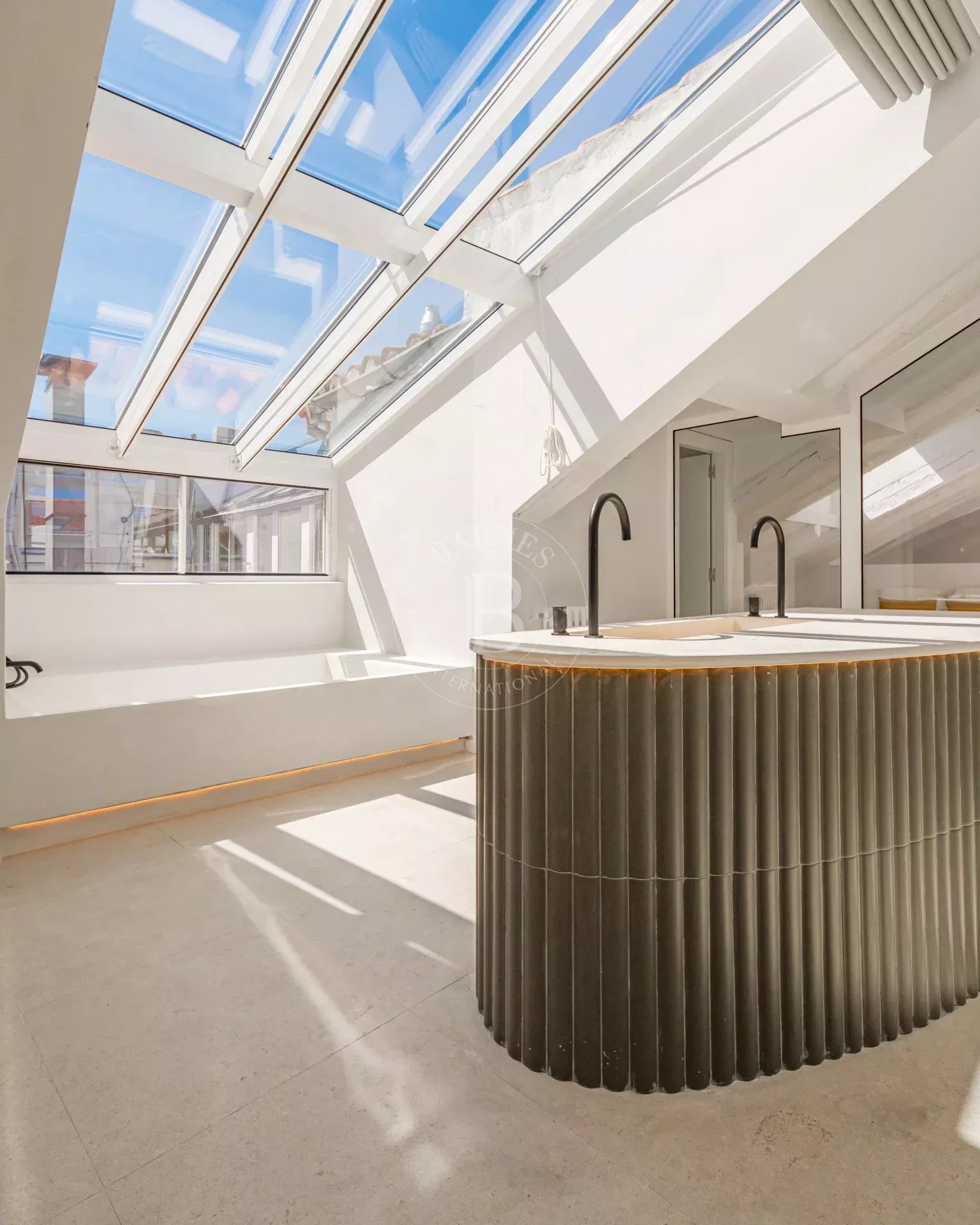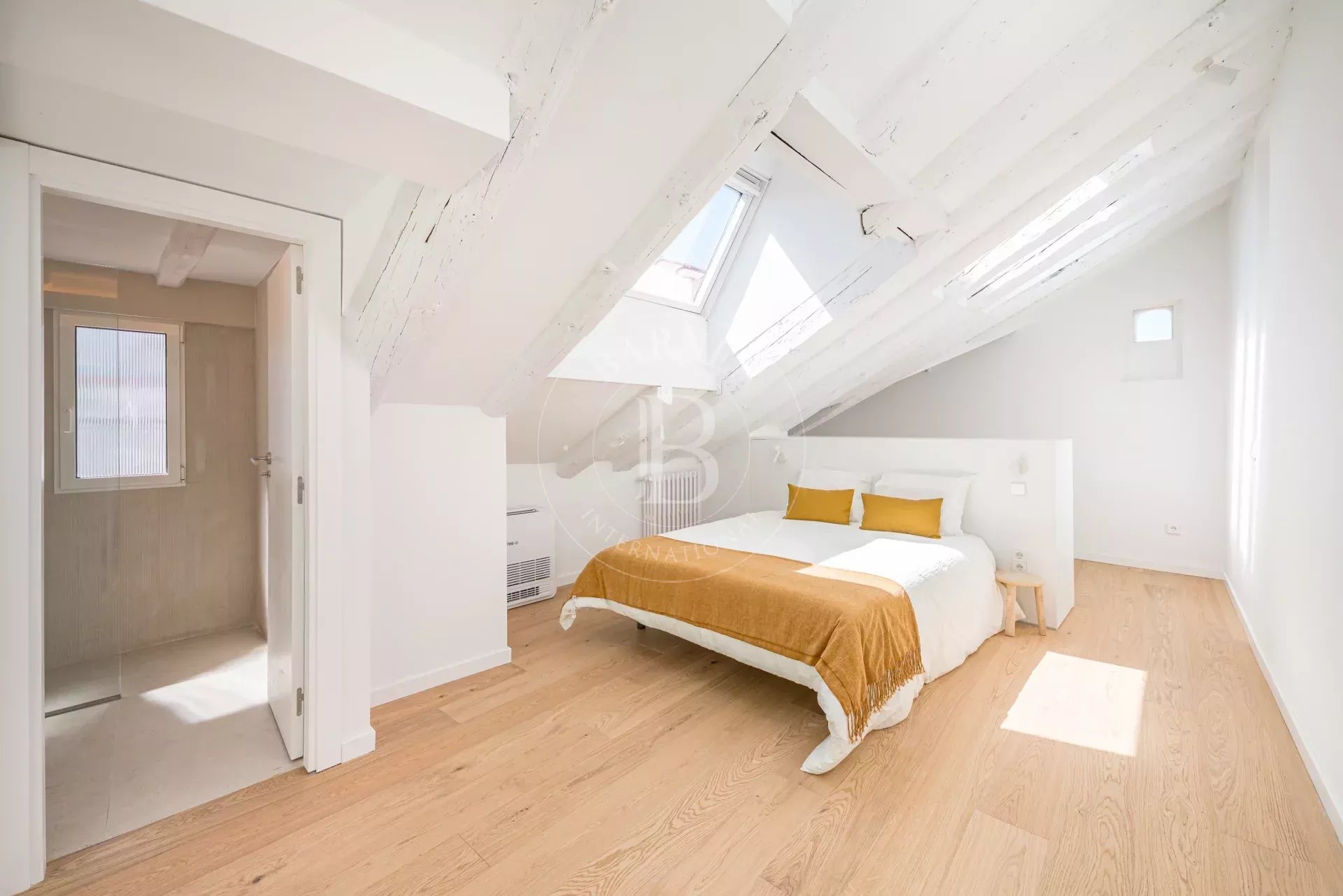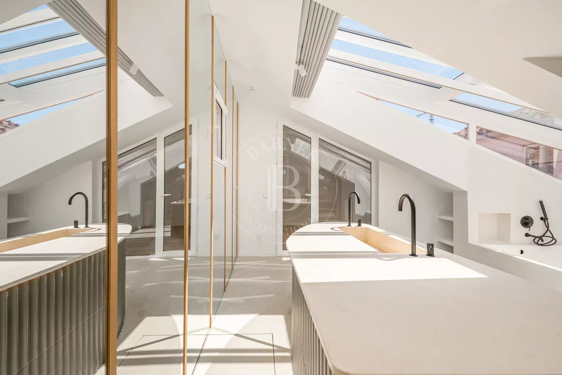 El ático ocupa la totalidad de la planta superior y destaca por su extraordinaria luminosidad y sus espectaculares vistas 360º sobre Madrid. Su orientación sur y los amplios ventanales conectan los espacios interiores con dos terrazas exteriores, desde las que se disfrutan vistas abiertas a las cúpulas madrileñas y al skyline urbano, ofreciendo una sensación de privacidad y privilegio excepcional en el corazón de la ciudad.