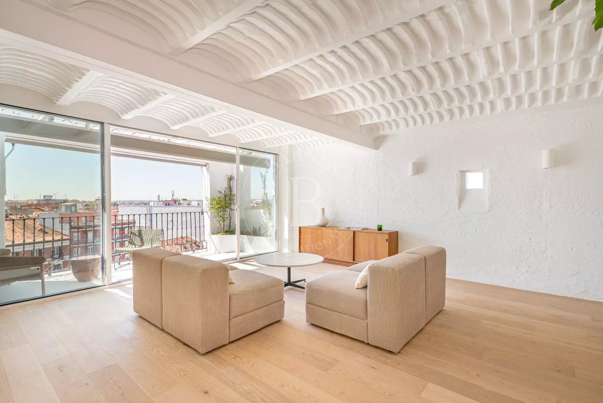 Barnes presenta este exclusivo ático tipo loft de lujo, una auténtica joya arquitectónica concebida por arquitectos, donde el diseño contemporáneo dialoga con el carácter histórico del edificio. Ubicado en la última planta de un inmueble emblemático completamente rehabilitado, se sitúa en pleno centro de Madrid, en el reconocido y vibrante barrio de La Latina. La vivienda es completamente nueva y lista para estrenar.