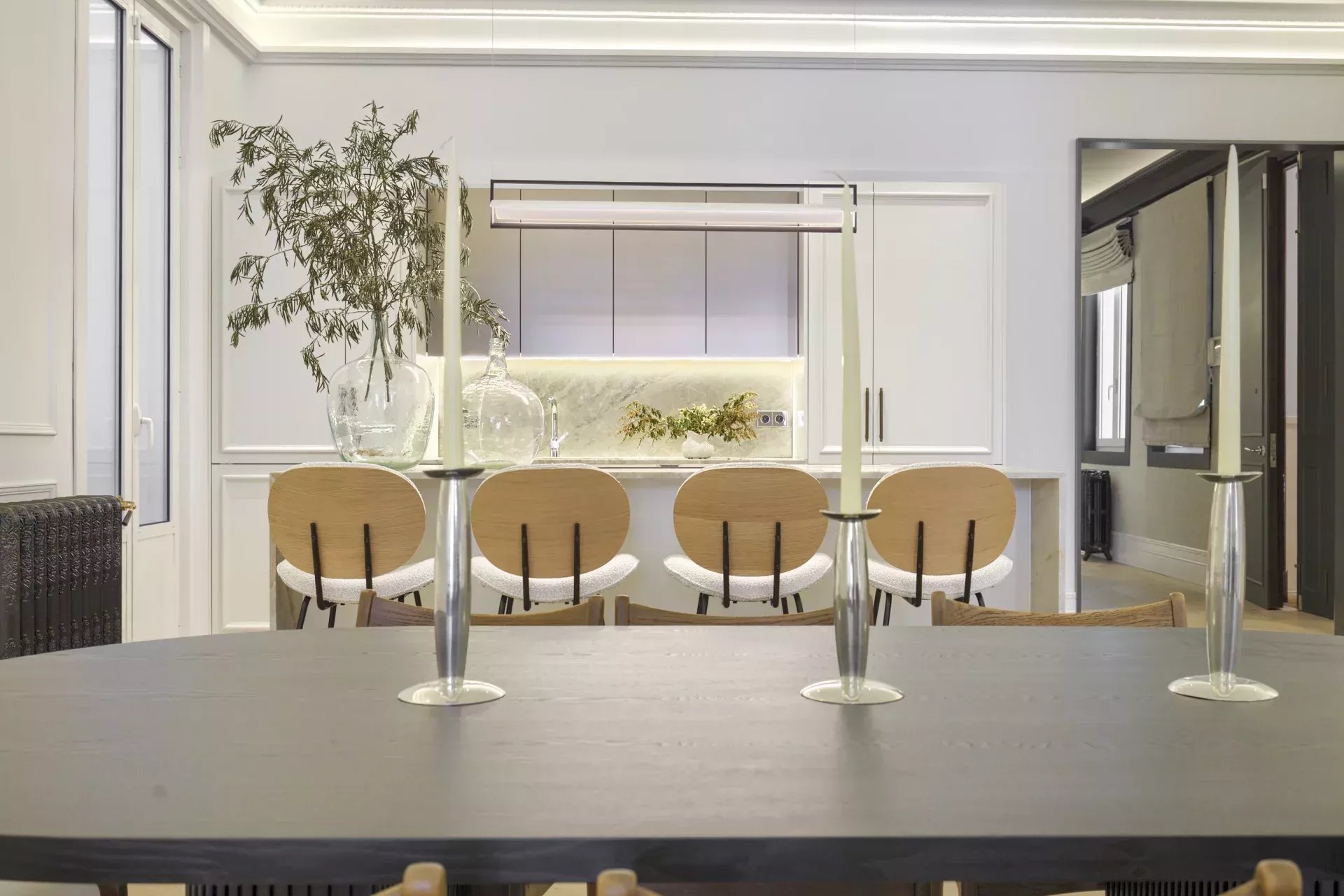 Cocina de diseño con molduras lacadas, acabados en madera noble y equipamiento de última generación.