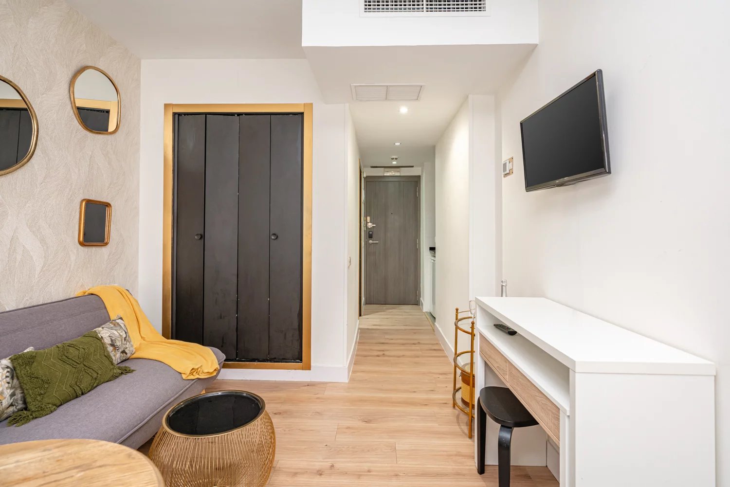 El estudio ofrece un ambiente moderno, luminoso y perfectamente optimizado, diseñado para garantizar confort y eficiencia en estancias cortas o medias. Su integración en un entorno con servicios hoteleros proporciona comodidad, seguridad y facilidad operativa, manteniendo en todo momento la independencia de una propiedad privada.
