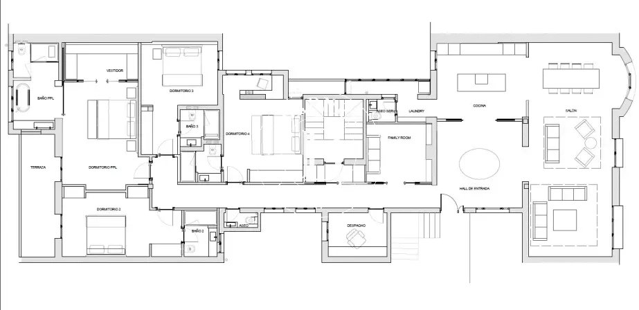 Cuenta con una magnífica distribución que incluye varias zonas de estar, comedor independiente, cocina de diseño equipada, cinco dormitorios y cinco baños. La suite principal dispone de vestidor y baño en suite.
