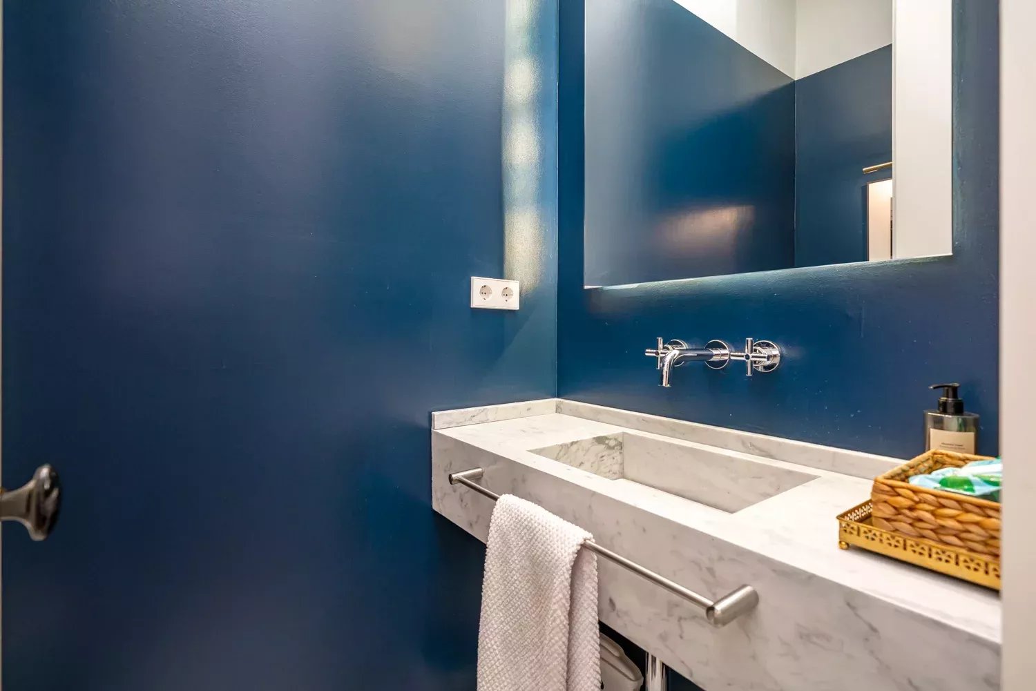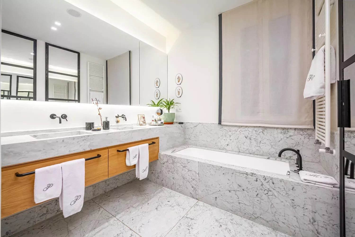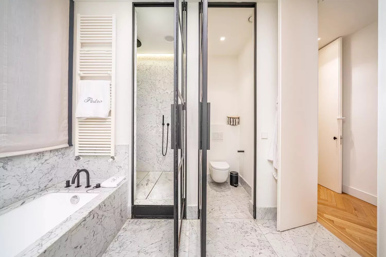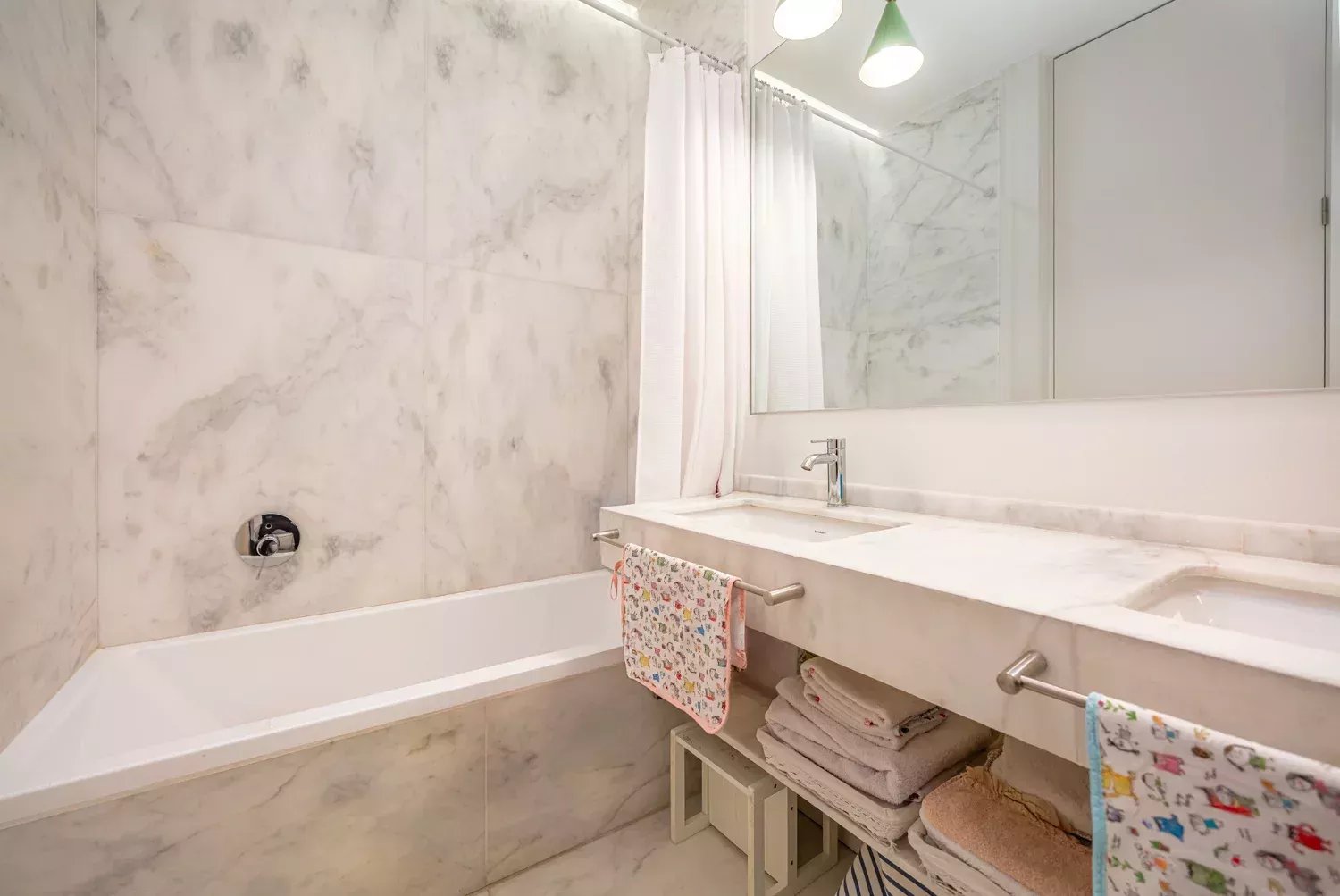 Los interiores destacan por su suelo de roble francés, los acabados de mármol en los baños y una distribución que incluye cuatro dormitorios, entre ellos un dormitorio de servicio, así como una lavandería independiente.