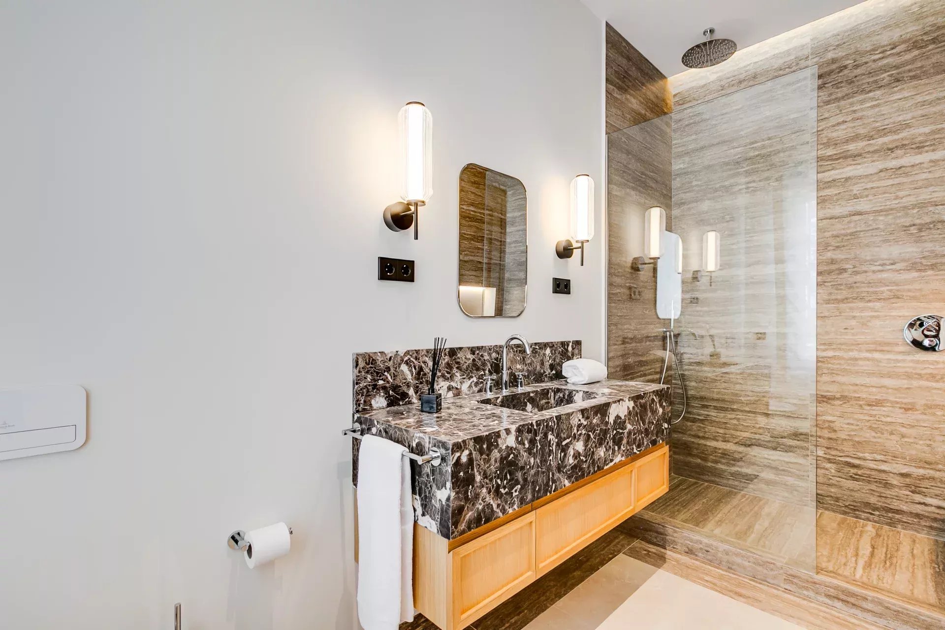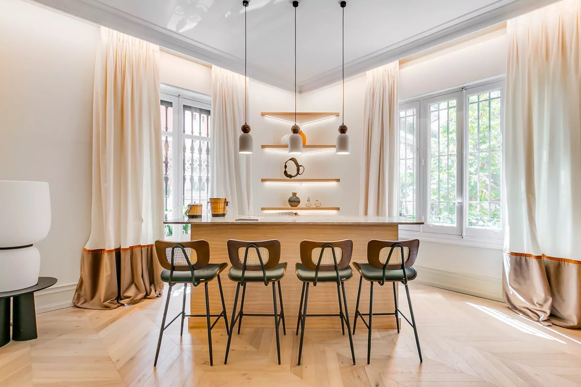 BARNES Madrid presenta en venta esta joya arquitectónica en la Milla de Oro del Barrio de Salamanca, una de las residencias de lujo más distinguidas del mercado prime en Madrid. Con 389 m² construidos, ha sido íntegramente renovada y amueblada con interiorismo de alta gama, empleando materiales nobles como roble natural, mármoles de primera calidad y acabados artesanales en techos y paredes. Ubicada en un señorial edificio de época con fachada histórica protegida y zonas ajardinadas, esta vivienda en esquina disfruta de luz natural excepcional gracias a sus grandes ventanales y orientación privilegiada; el edificio, de estilo palacete, ofrece escaleras monumentales, ascensor de jaula, conserjería y portero físico, videovigilancia y un exclusivo aparcamiento exterior privado para residentes. El gran salón principal con techos altos se organiza en recibidor, dos zonas de estar, bar refinado y comedor independiente; la cocina independiente combina madera y mármol con electrodomésticos de alta gama. La zona de noche incluye cinco dormitorios: cuatro suites con baño y armarios a medida, más un quinto dormitorio ideal como cuarto de servicio; la suite principal ofrece vestidor de gran capacidad, zona de tocador, doble lavabo, doble ducha efecto lluvia, dos inodoros independientes y bañera exenta. Entre sus comodidades destacan pasillos amplios, doble acristalamiento, sistema Airzone en cada estancia para climatización independiente, cuarto de lavandería, trastero de 10 m² y plaza de aparcamiento exterior. Rodeada de boutiques de prestigio, galerías de arte y restaurantes de alta gastronomía, esta vivienda exclusiva en Salamanca – Milla de Oro representa la esencia del estilo de vida más sofisticado de Madrid, combinando ubicación prime, diseño contemporáneo y servicios premium. Para más información o para concertar una visita, contacte con BARNES Madrid y descubra en nuestra web una cuidada selección de pisos de lujo y propiedades exclusivas en Madrid.