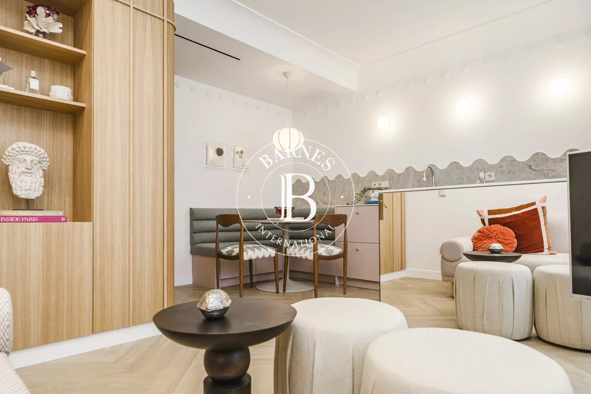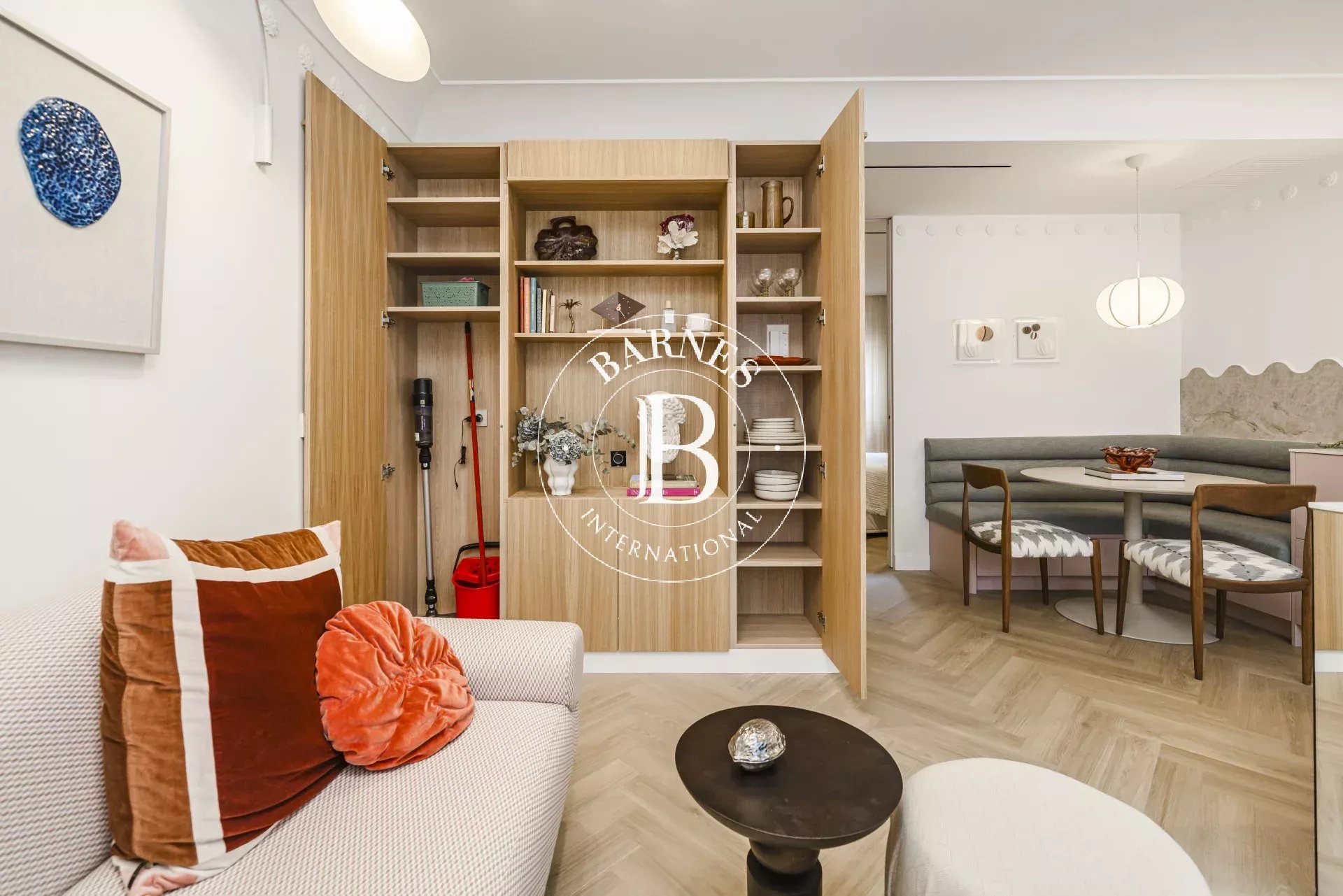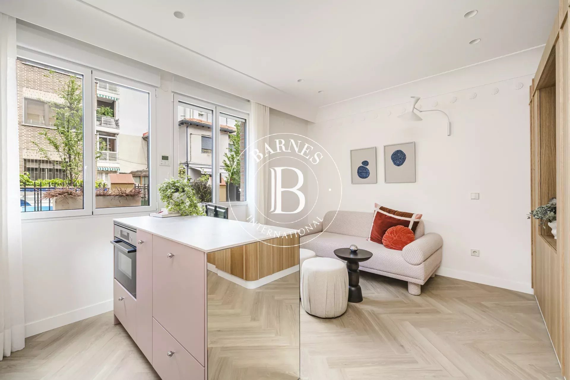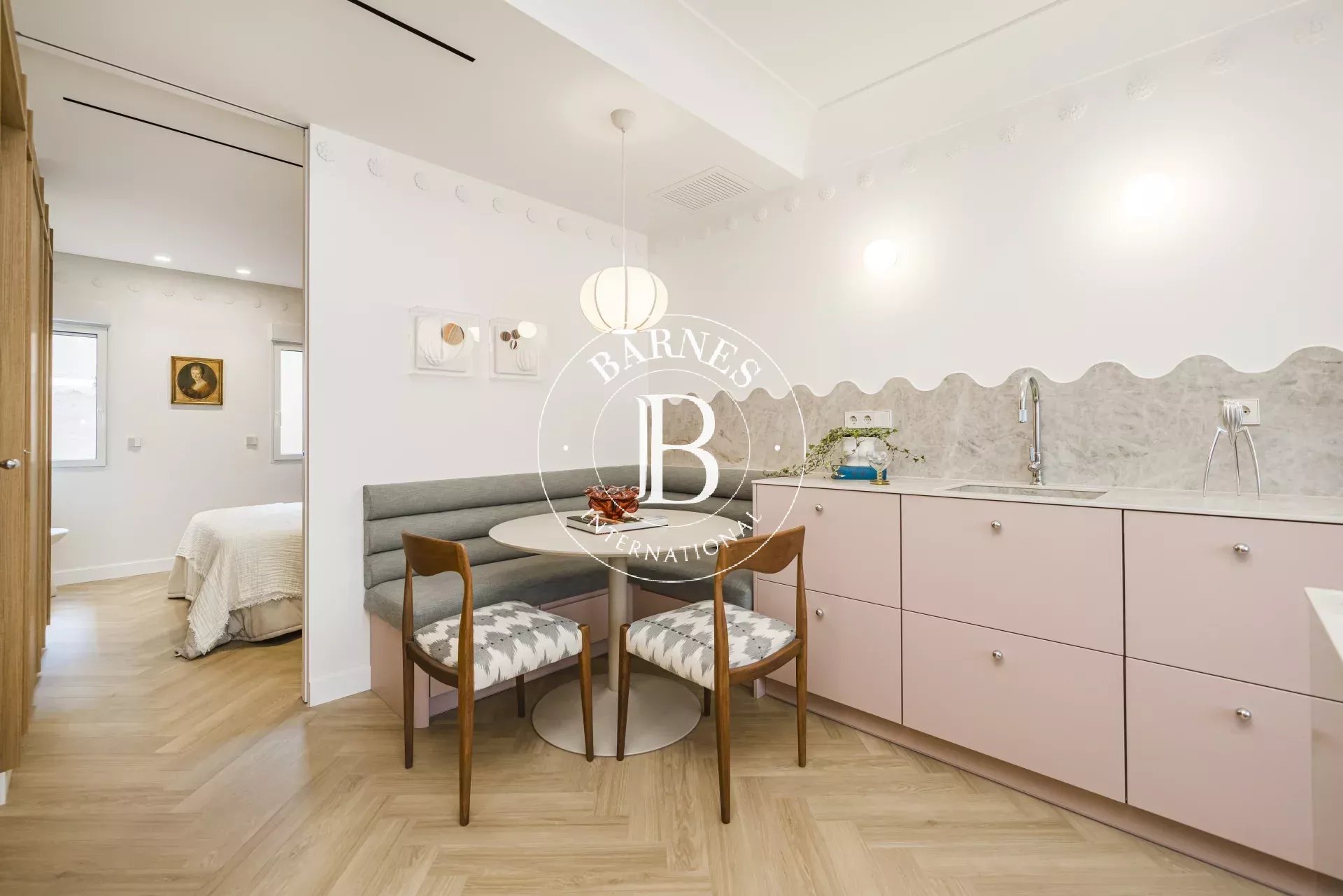 La zona de día ofrece un agradable salón-comedor, bañado por luz natural gracias a su carácter exterior, integrado de manera equilibrada con una cocina completamente equipada con electrodomésticos de alta gama. El conjunto ha sido decorado con mobiliario cuidadosamente seleccionado, aportando estilo y personalidad, y se entrega totalmente amueblado y listo para entrar a vivir.