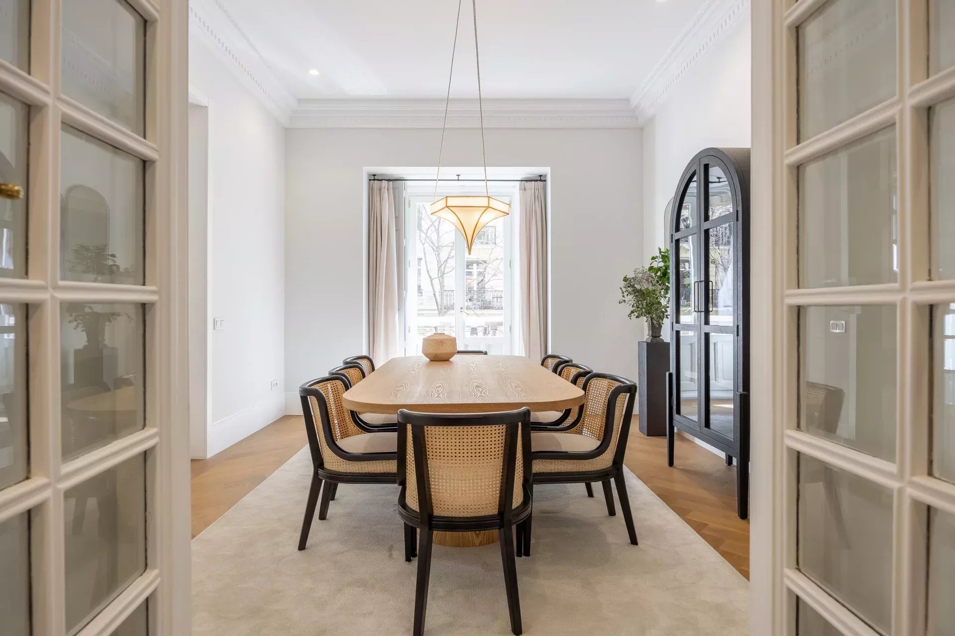 Ubicada en una finca señorial y representativa con piezas de diseño exclusivo y materiales de altísima calidad, con techos de 3,70 m de altura y grandes ventanales, la luz natural inunda cada estancia, acentuando la amplitud y el carácter distinguido de la propiedad.