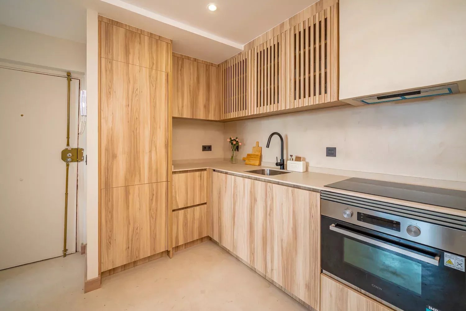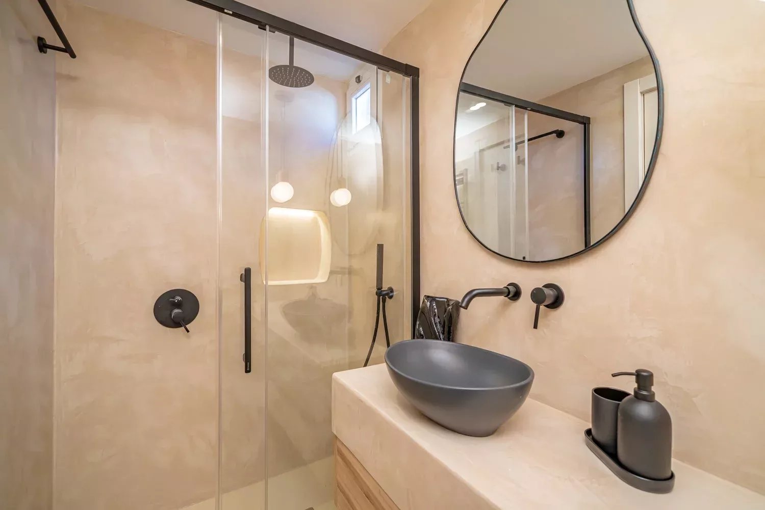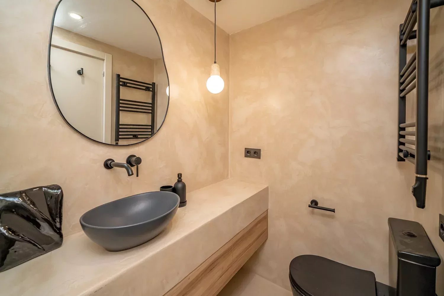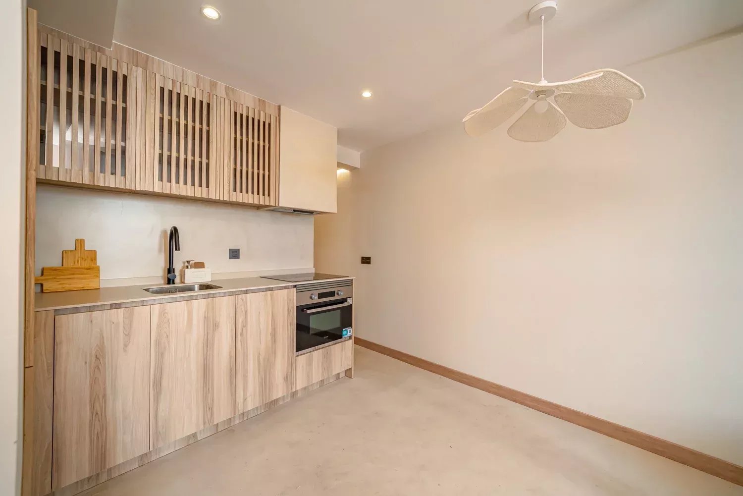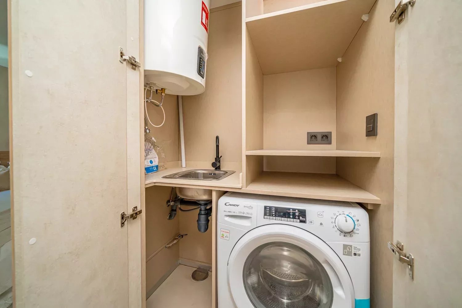 El apartamento cuenta con un salón contemporáneo de concepto abierto con cocina integrada, dos dormitorios bien proporcionados y un baño elegante. Las ventanas de doble acristalamiento, las persianas eléctricas y el aire acondicionado garantizan confort y eficiencia durante todo el año, mientras que el diseño interior ofrece un ambiente luminoso y acogedor.