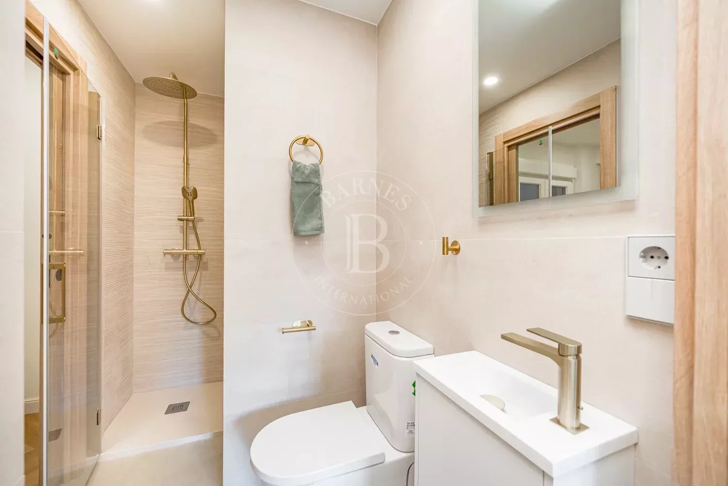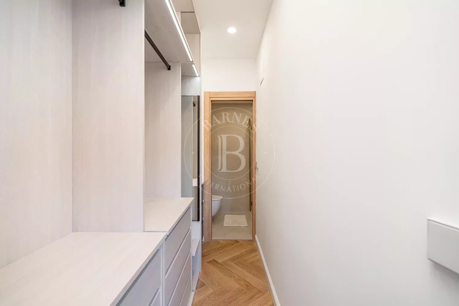 La reforma es integral y de primer nivel: suelos de gran formato, carpintería a medida, iluminación empotrada, y una estética sobria y atemporal que no envejecerá. La finca cuenta con portero físico, ascensor y zonas comunes en excelente estado — el tipo de edificio seguro y de prestigio que los compradores internacionales buscan y valoran.