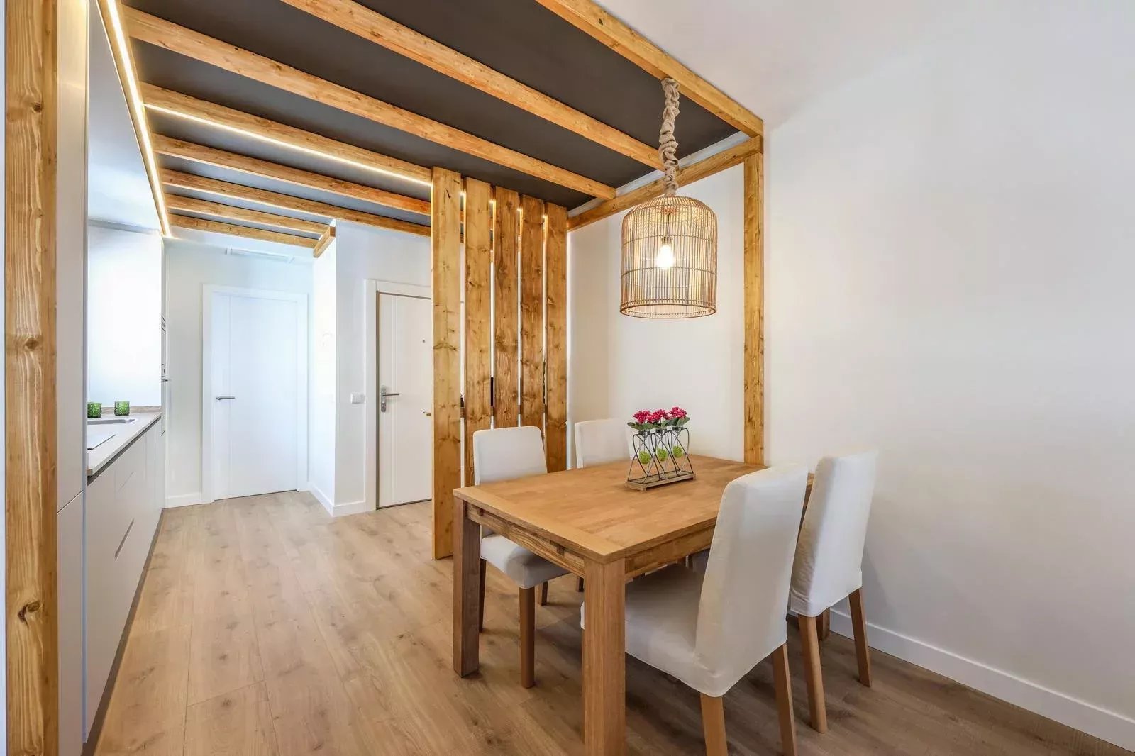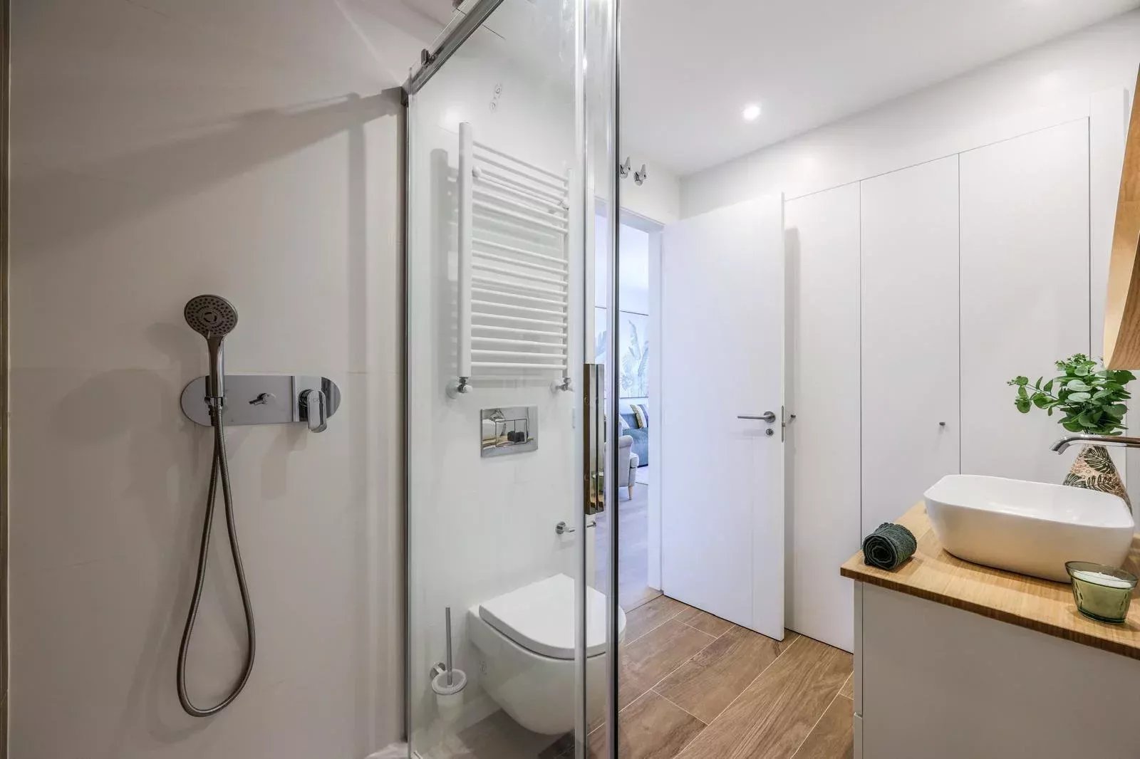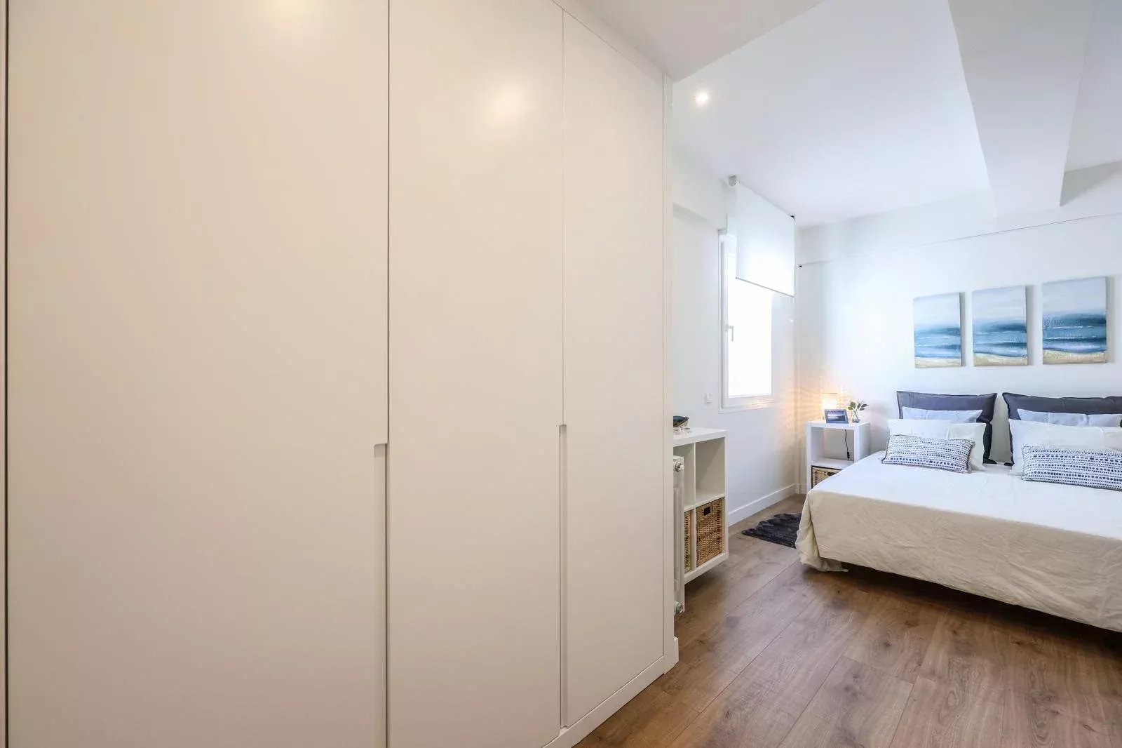 El piso cuenta con un amplio salón comedor, cocina moderna equipada con todos los electrodomésticos, dos dormitorios con armarios empotrados totalmente vestidos, y dos baños completos, uno de ellos en suite. El diseño interior combina funcionalidad y estilo contemporáneo, pensado para ofrecer el máximo confort tanto para residencia habitual como para inversión.