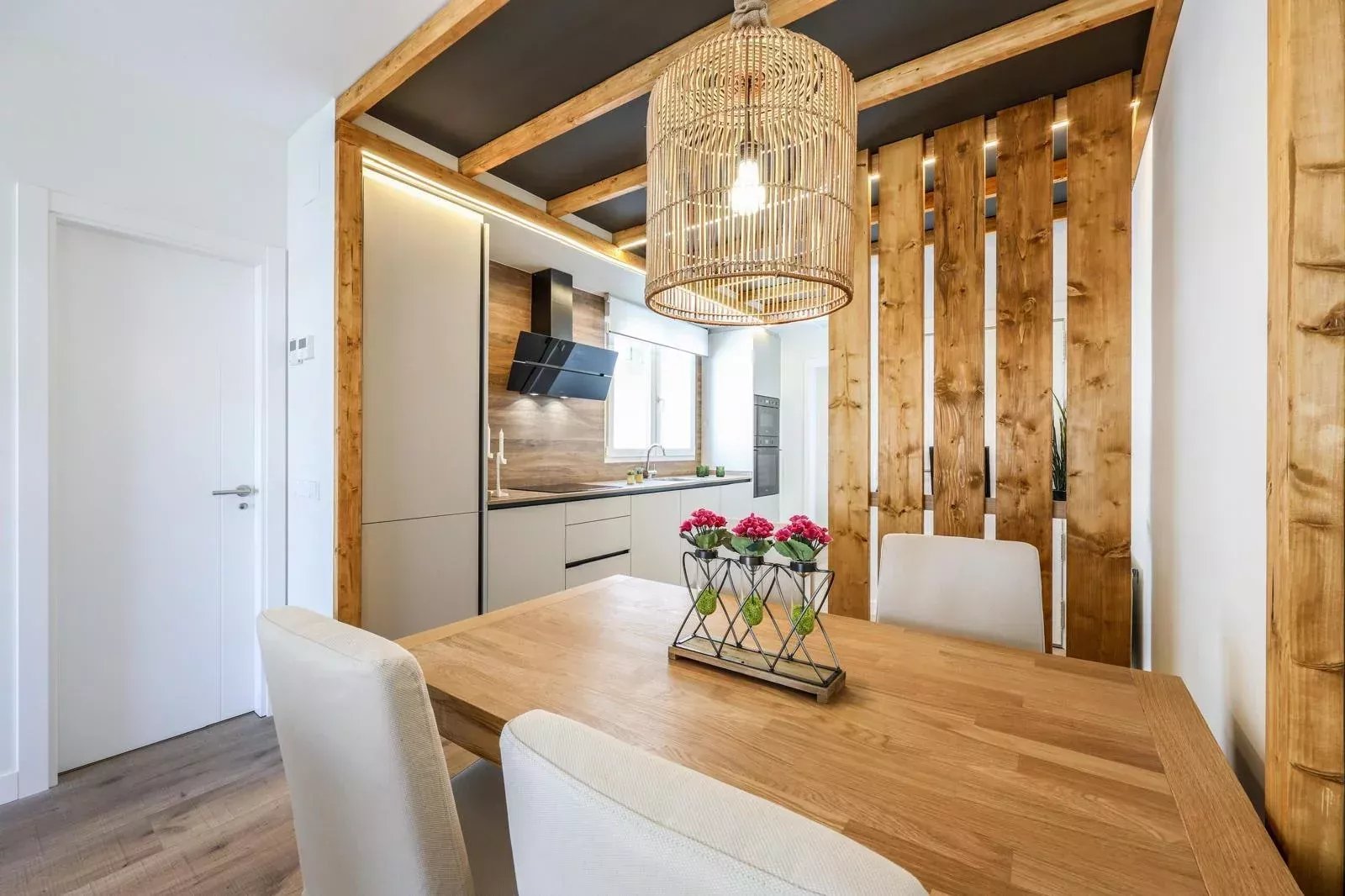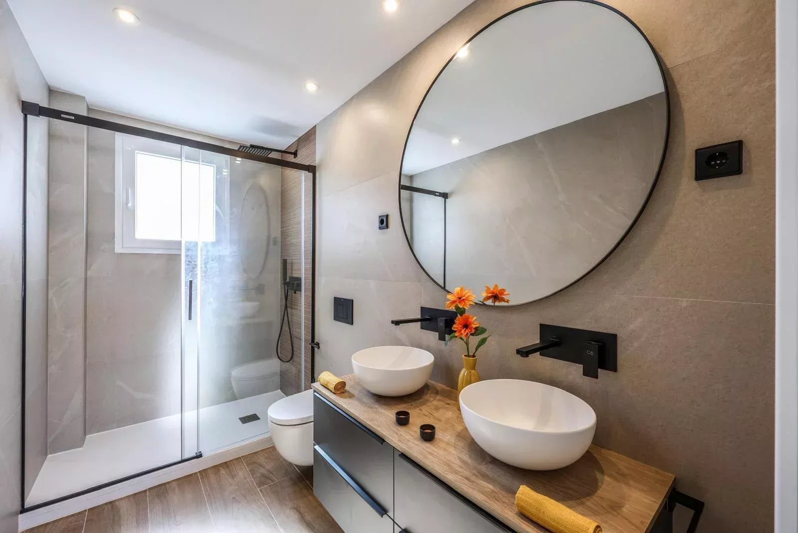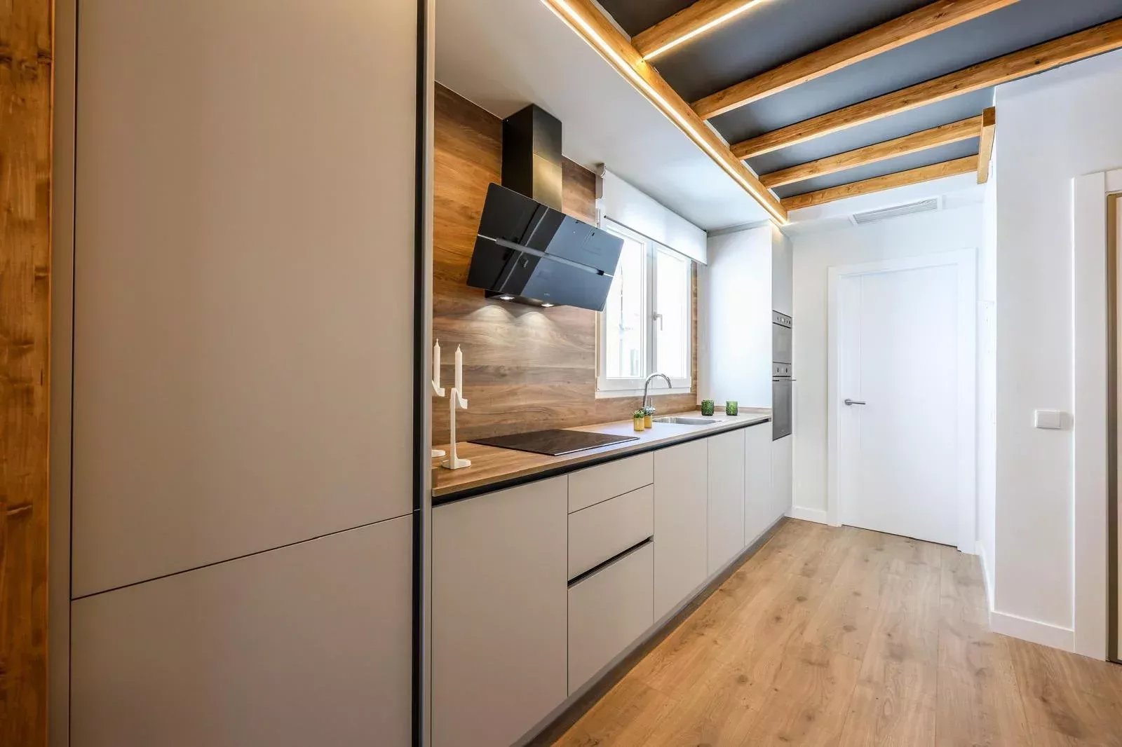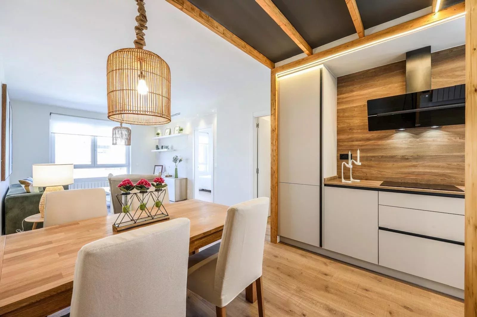 El piso cuenta con un amplio salón comedor, cocina moderna equipada con todos los electrodomésticos, dos dormitorios con armarios empotrados totalmente vestidos, y dos baños completos, uno de ellos en suite. El diseño interior combina funcionalidad y estilo contemporáneo, pensado para ofrecer el máximo confort tanto para residencia habitual como para inversión.