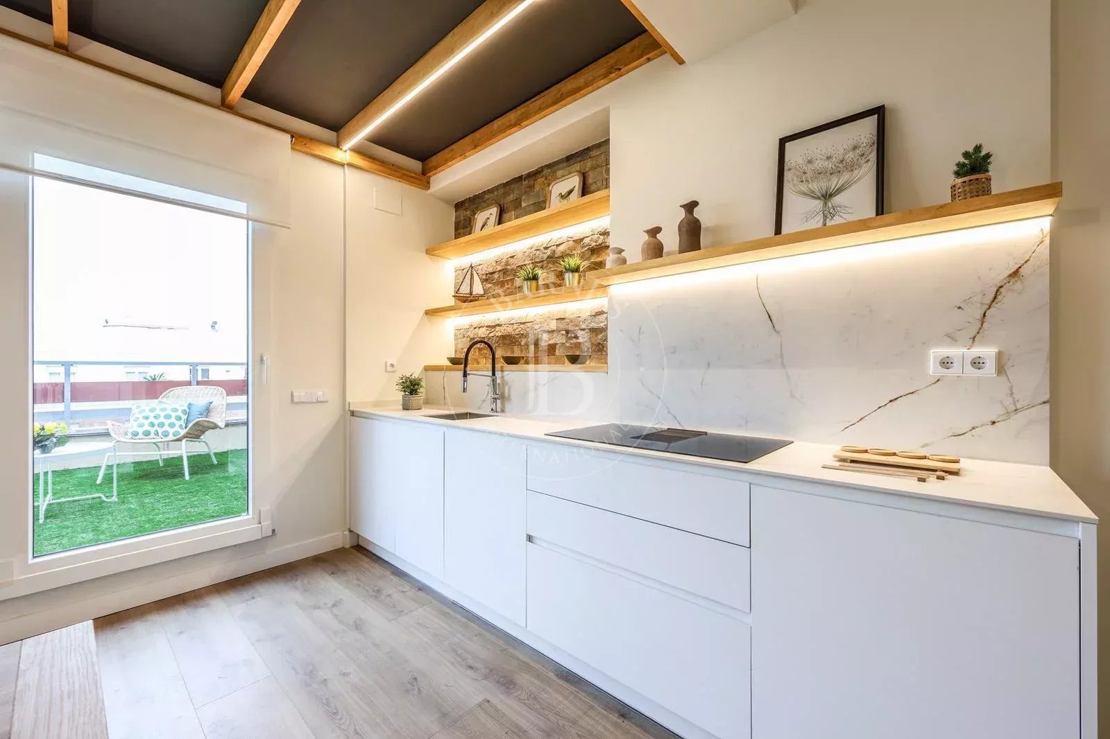 El interior se organiza en un elegante salón con cocina americana, un espacio moderno y funcional que conecta directamente con la terraza, aportando continuidad y una agradable sensación de amplitud. La distribución se completa con tres dormitorios bien proporcionados, todos ellos con armarios empotrados que optimizan el almacenamiento y mantienen una estética limpia y ordenada.
