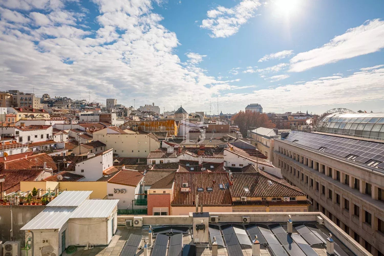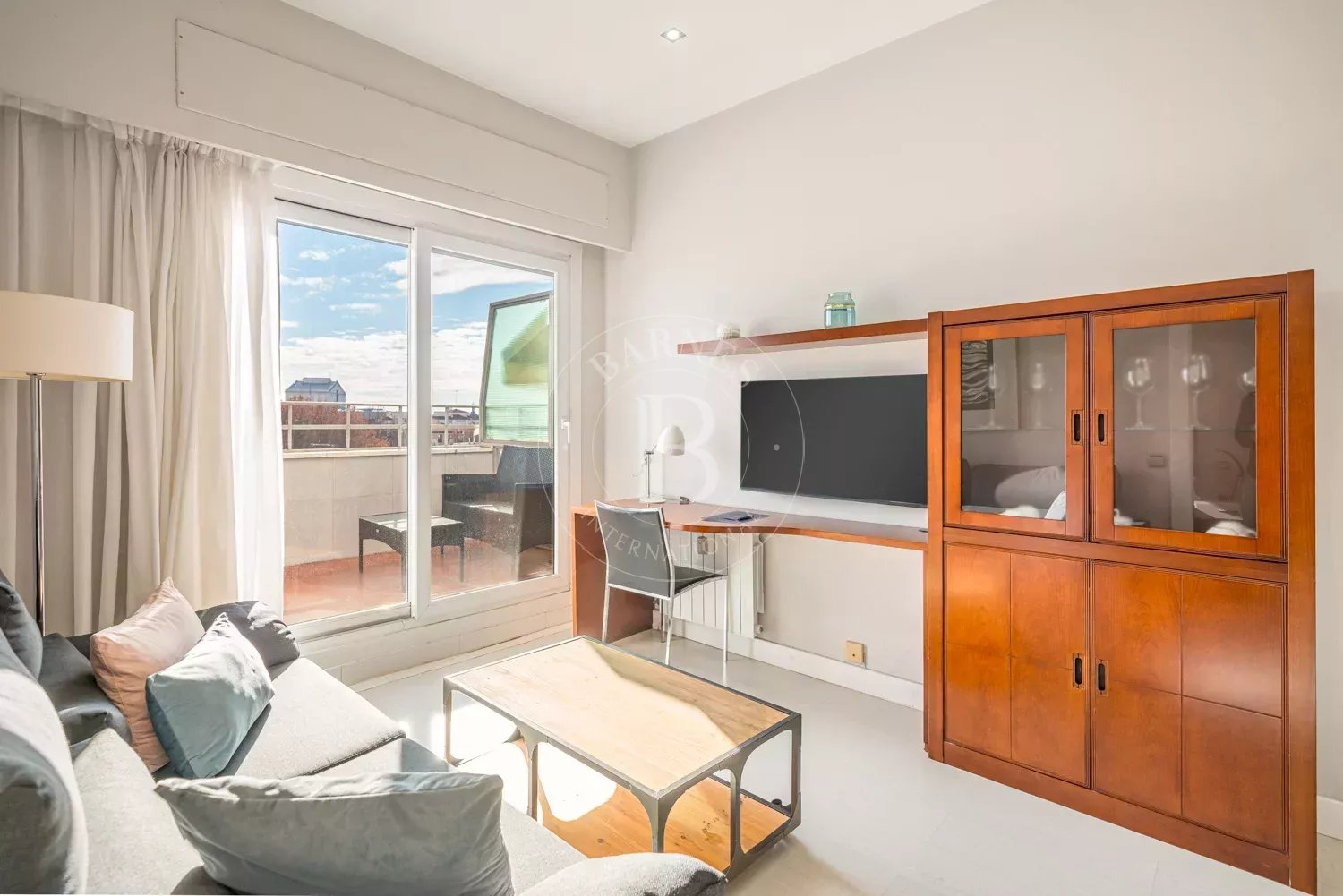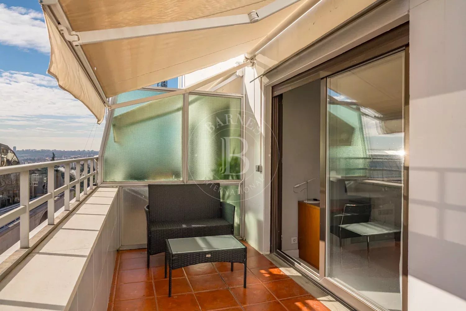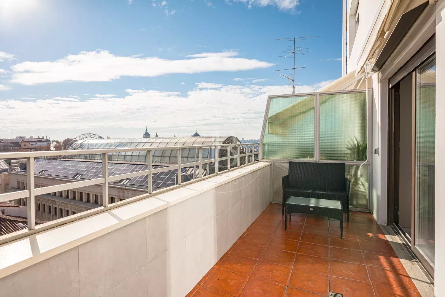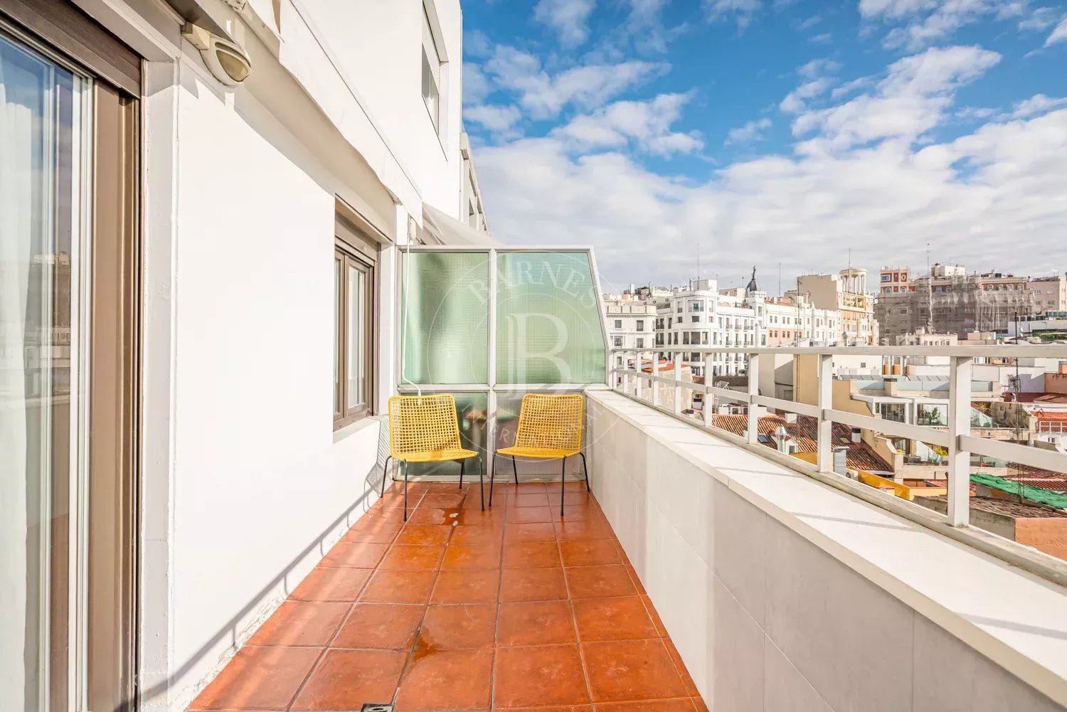 BARNES Madrid présente ce lumineux appartement meublé avec terrasse, situé en plein centre de Madrid et offrant des vues dégagées sur le skyline de la ville.