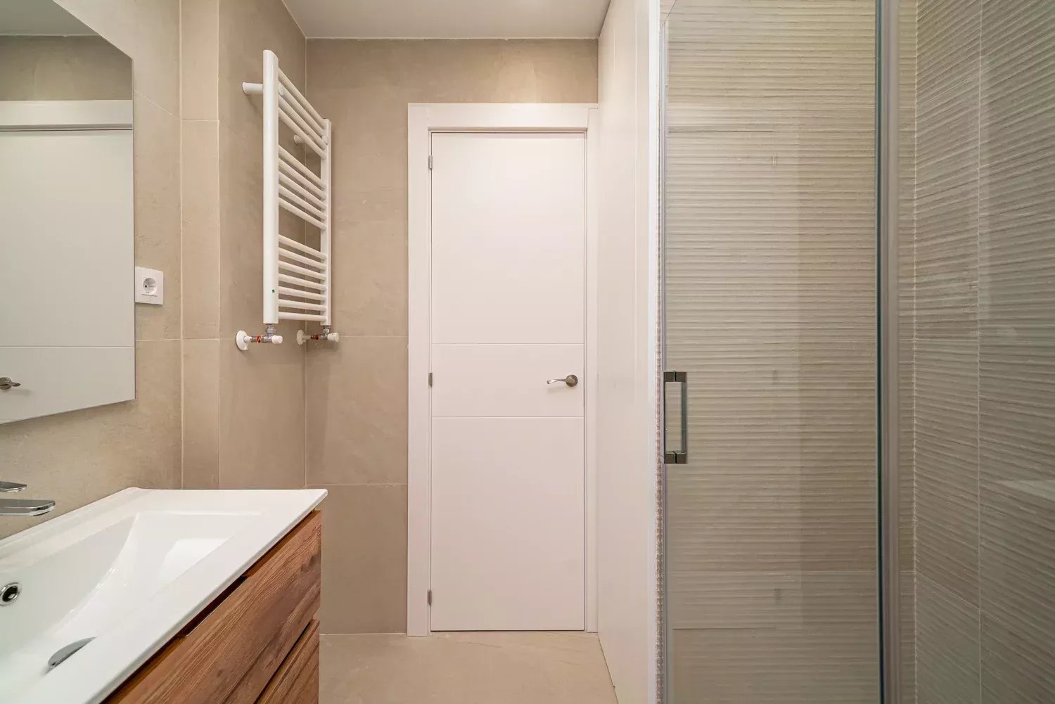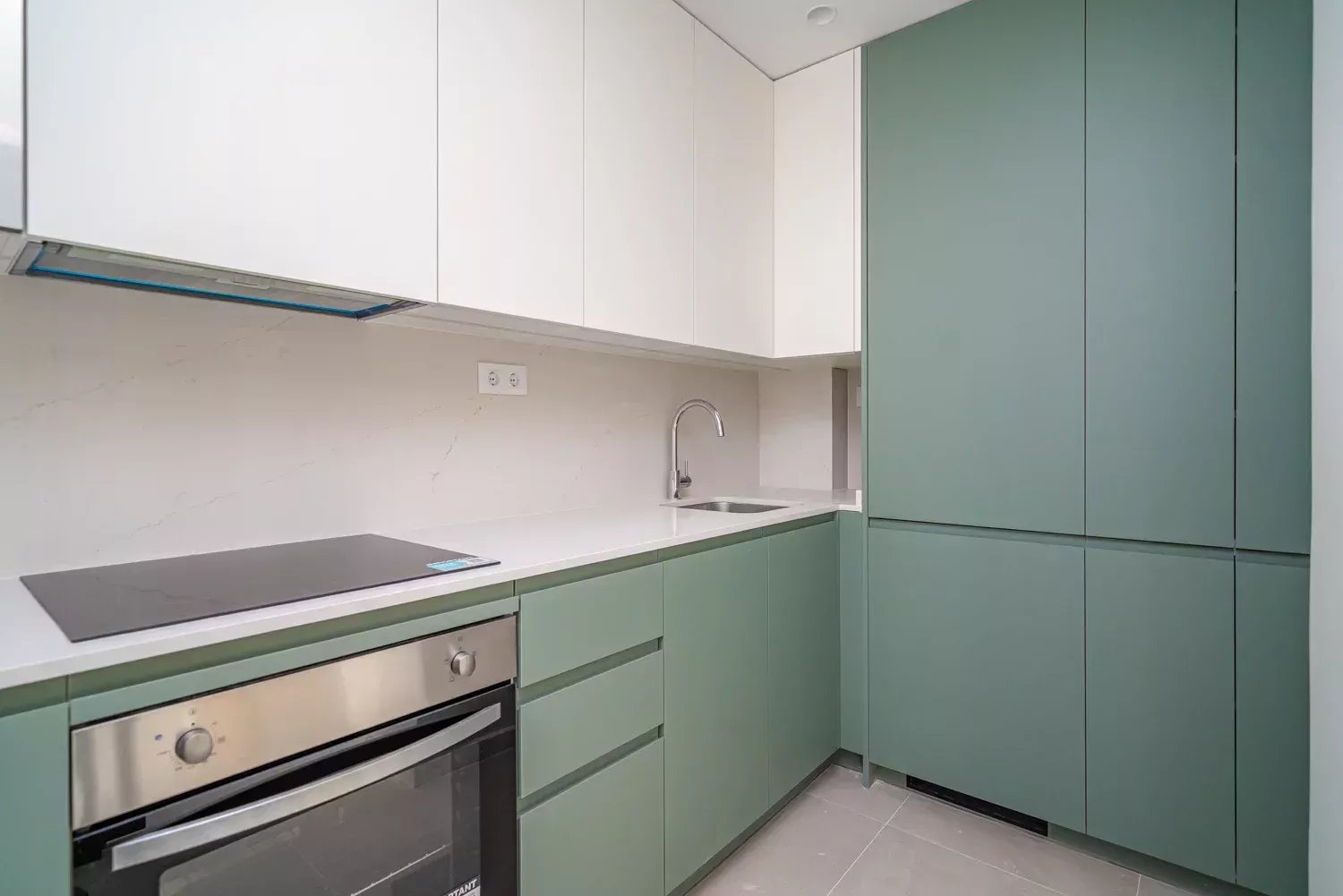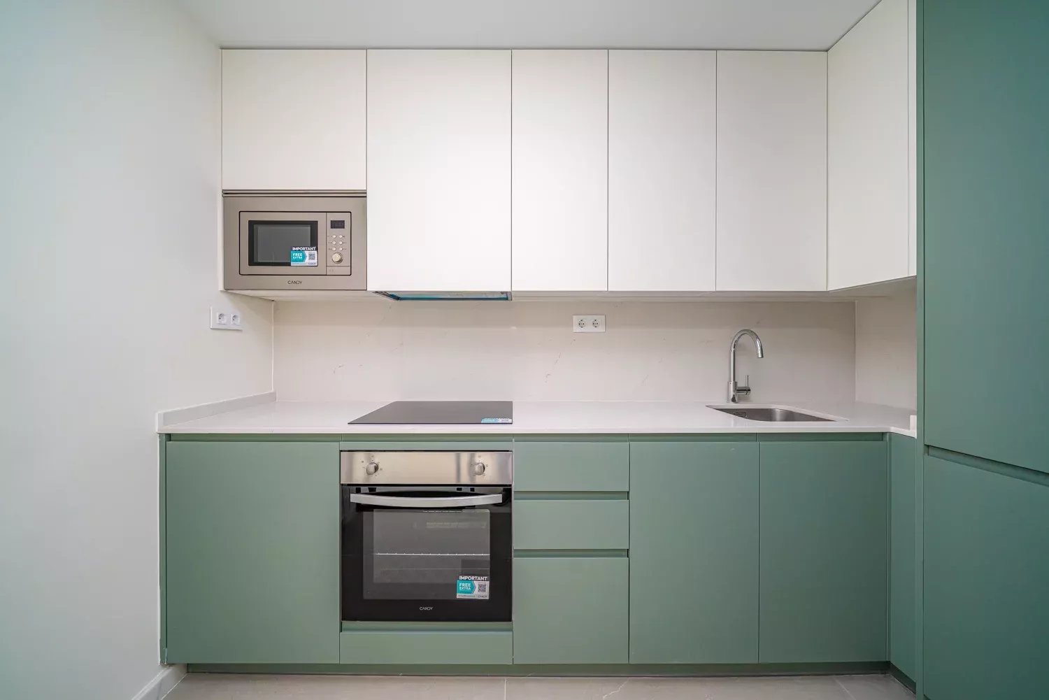 Le logement comprend une chambre double, une salle de bain complète et un grand salon-salle à manger avec cuisine intégrée, équipée d'appareils électroménagers neufs. Grâce à sa hauteur et à son orientation, l'appartement bénéficie d'une excellente lumière naturelle tout au long de la journée, ce qui lui confère une grande sensation d'espace et de confort.