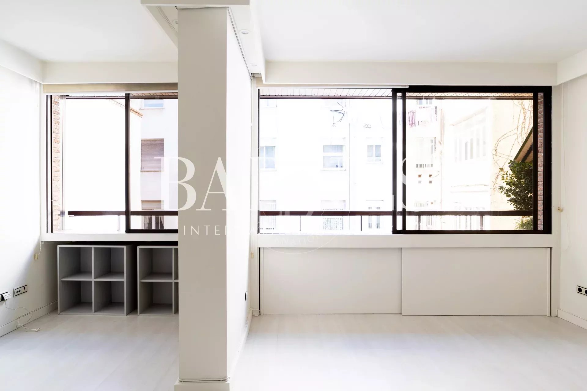 Les grandes fenêtres de l’appartement offrent une vue agréable sur le jardin intérieur, apportant lumière naturelle et sérénité.