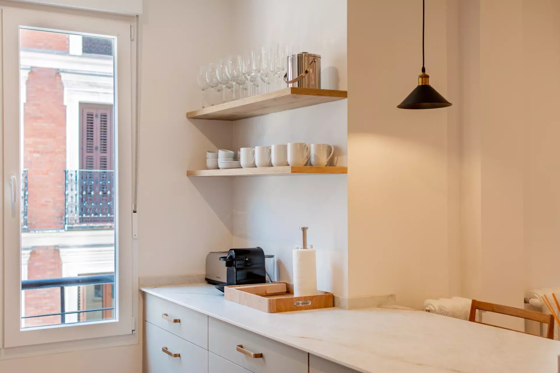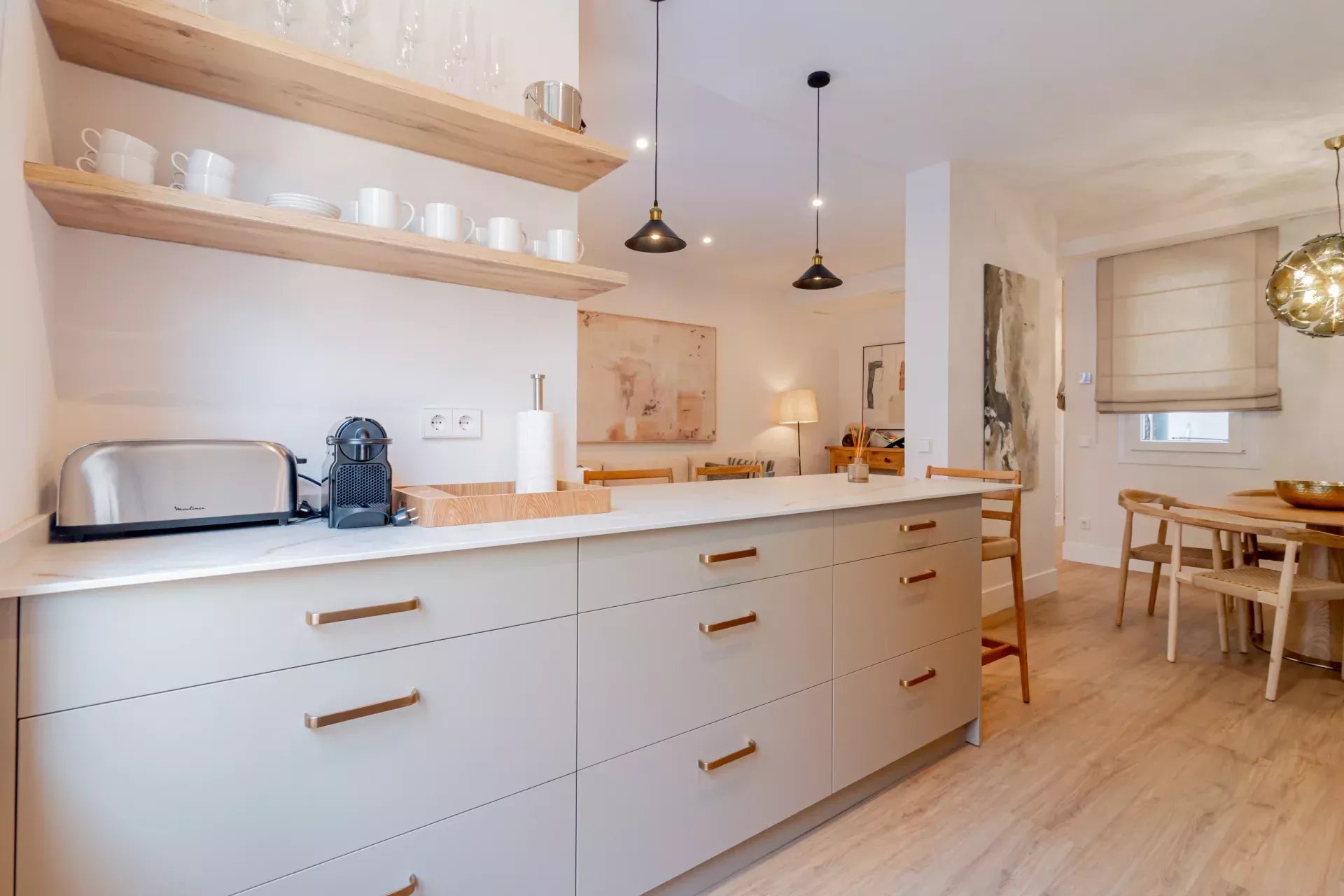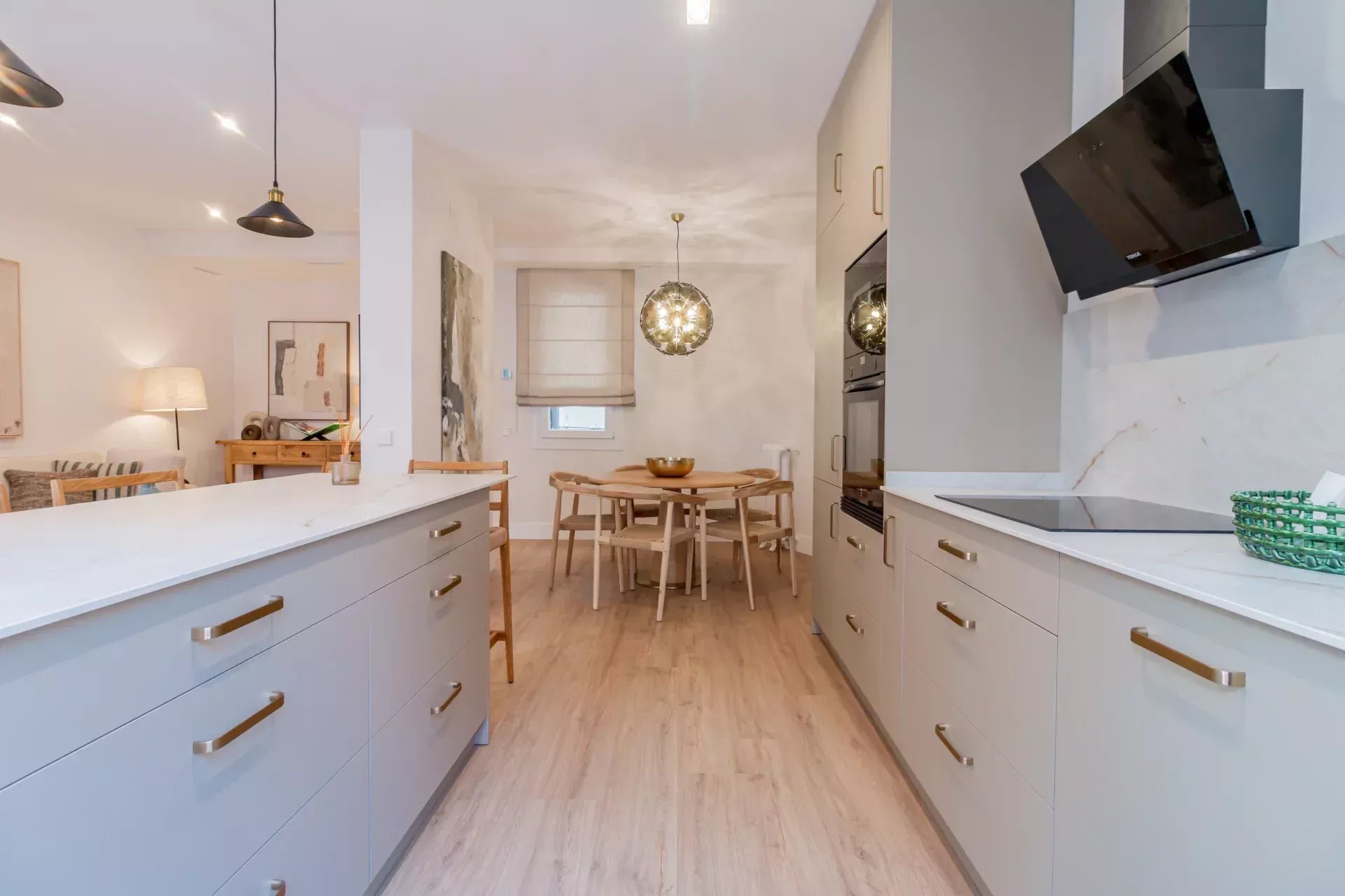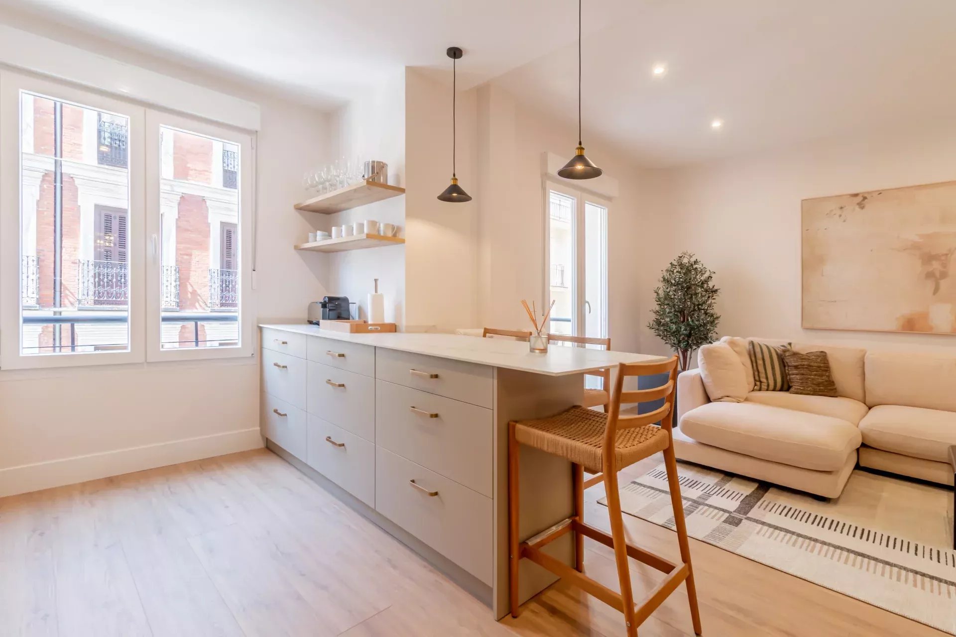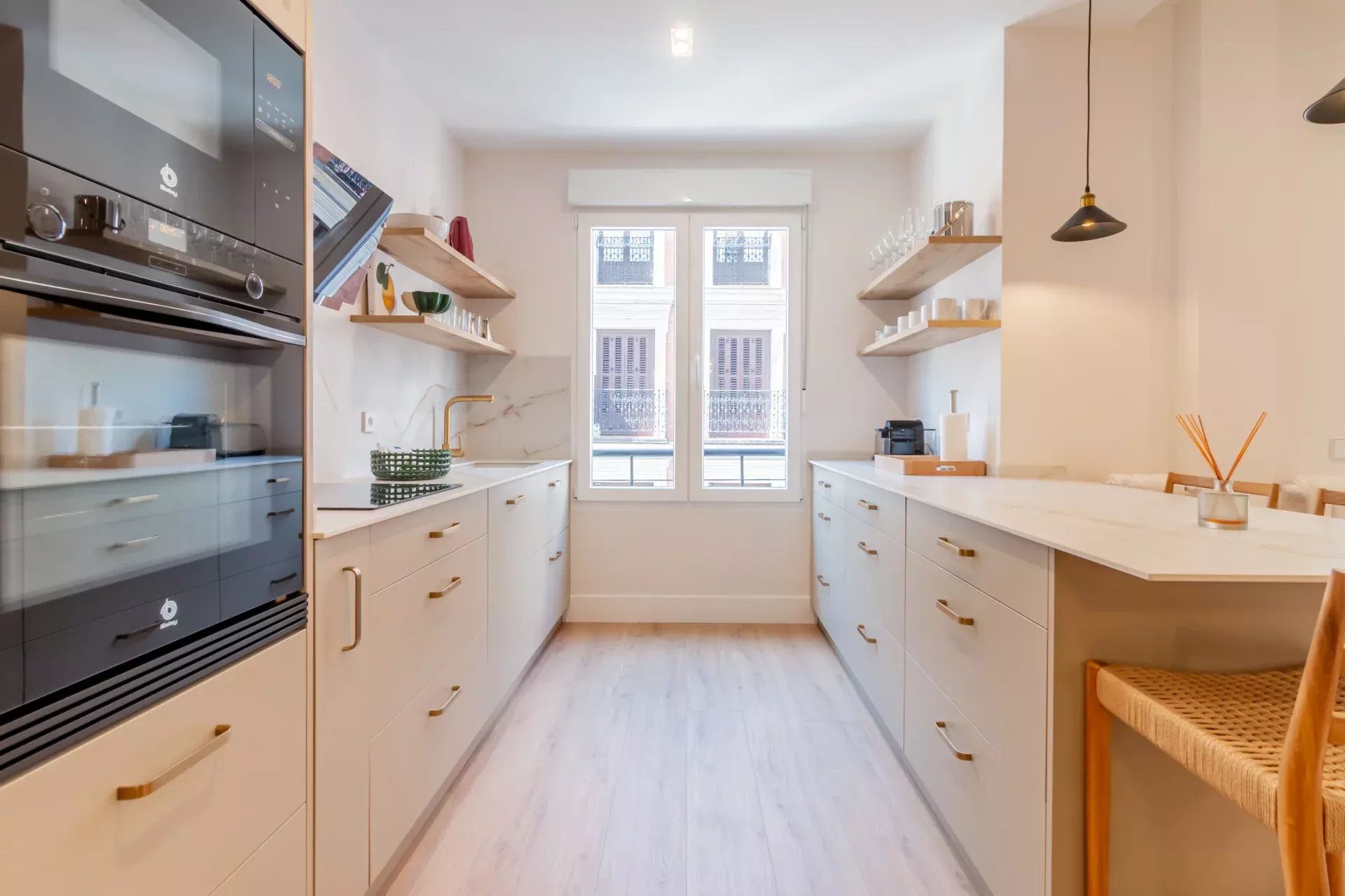 D'une surface construite de 103 m², ce bien offre une distribution intelligente et fonctionnelle. Le vaste salon-salle à manger dispose de grandes fenêtres qui baignent l’espace de lumière naturelle toute la journée. La cuisine ouverte, de style américain, est entièrement équipée avec des électroménagers haut de gamme et toute la vaisselle nécessaire, idéale pour une vie urbaine raffinée.