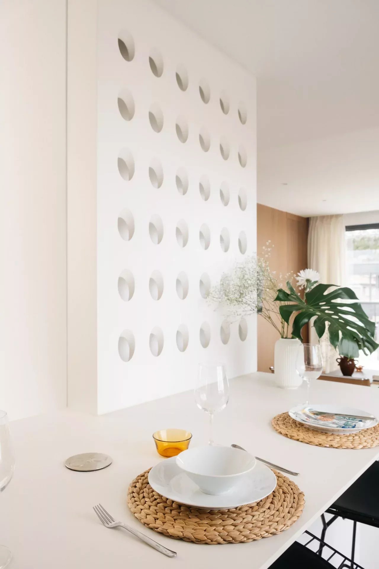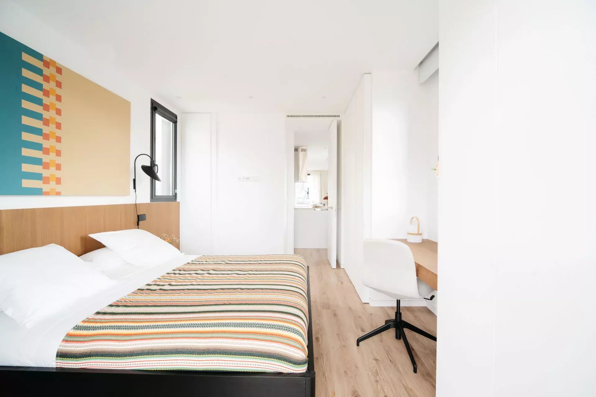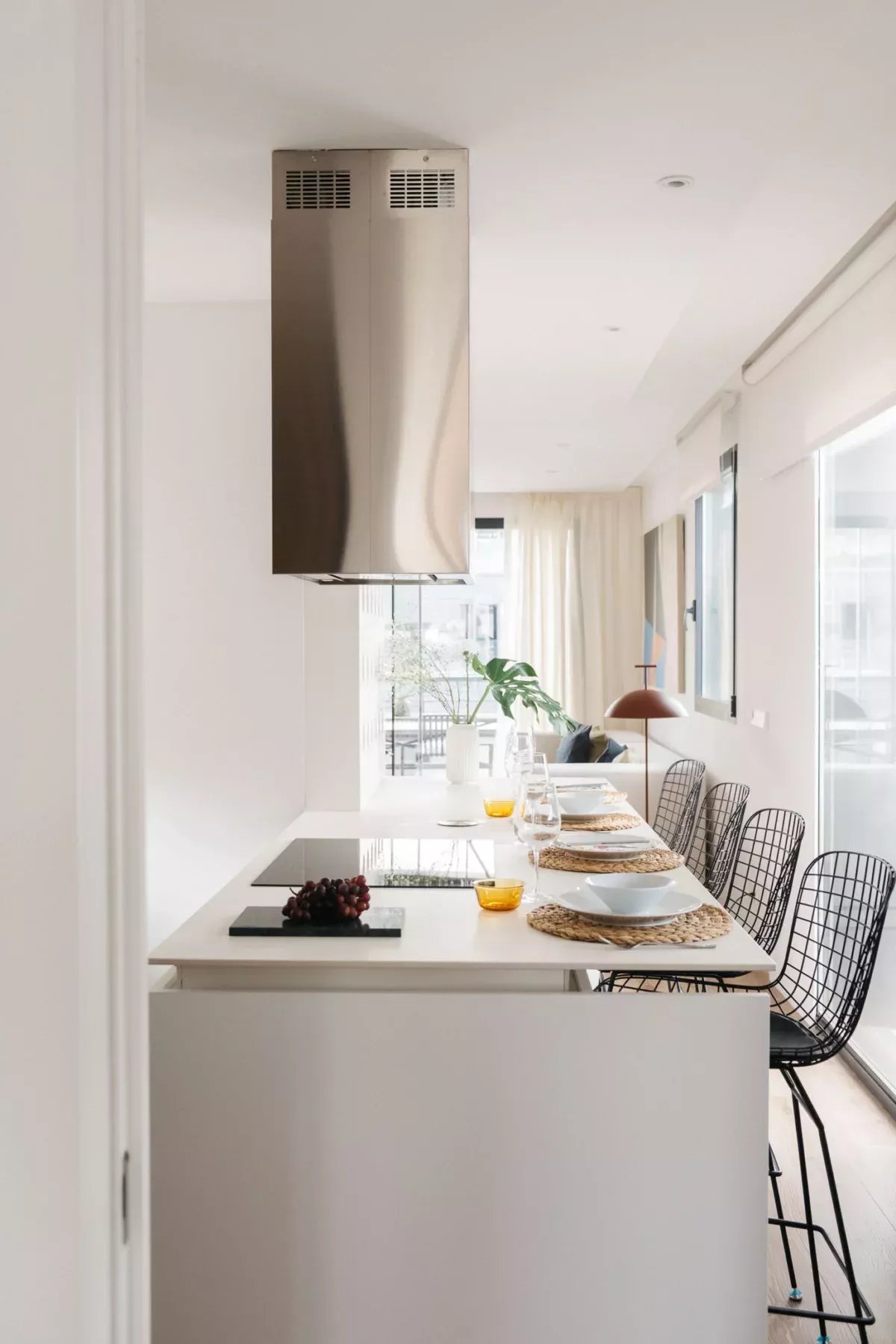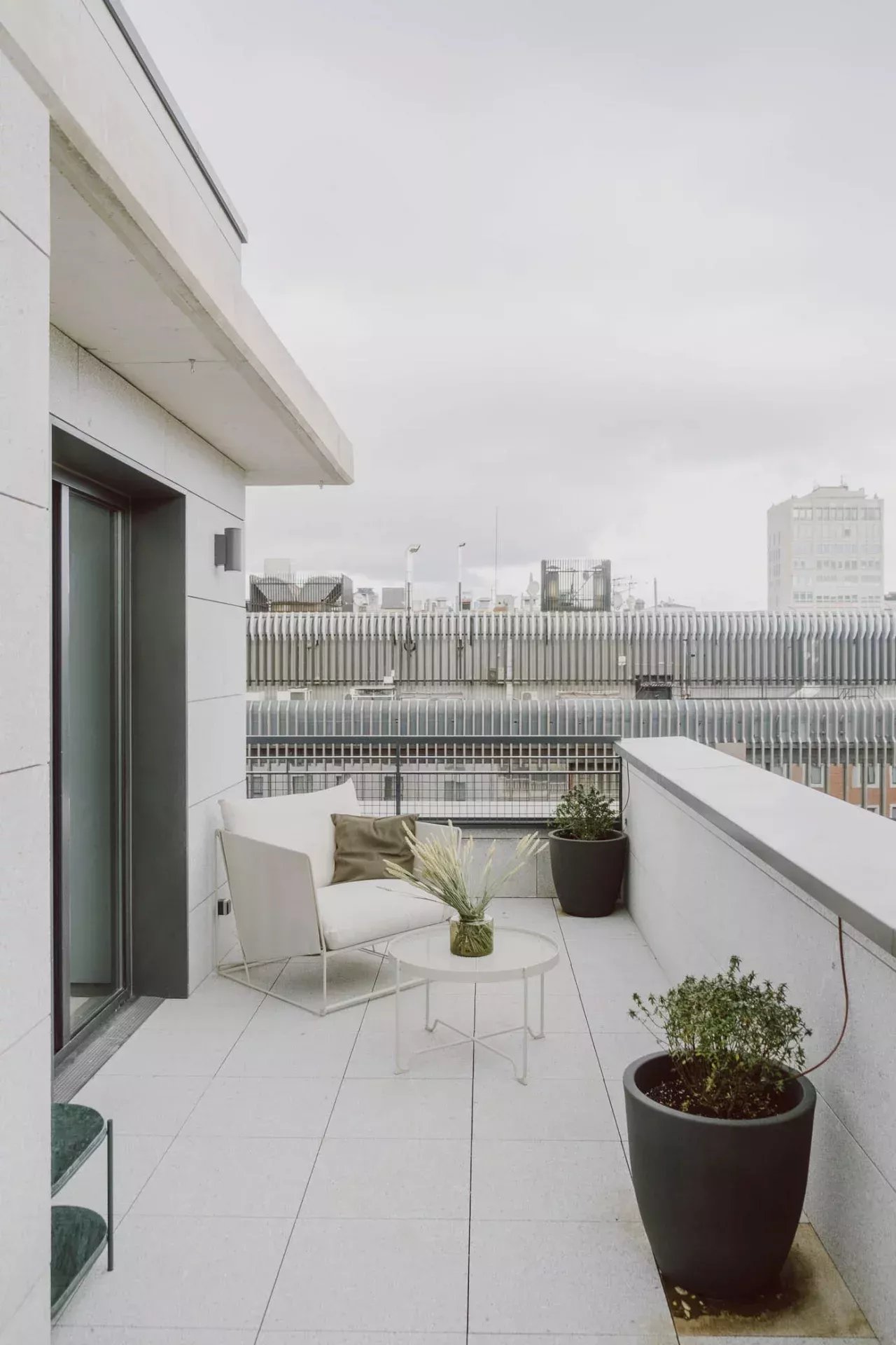 Superficie : 80m² + 90m² de terrasse. Dès l'entrée, on trouve un salon ouvert avec deux grandes portes coulissantes en verre qui donnent accès à une partie de la spectaculaire terrasse qui entoure la propriété. La terrasse, en forme de "U", entoure trois côtés de la propriété, offrant une grande quantité de lumière et des vues aériennes spectaculaires sur la ville. Les différentes zones de la terrasse comprennent une grande table à manger avec une pergola, des zones de détente avec des chaises longues, des fauteuils et des canapés, ainsi qu'une douche extérieure pour se rafraîchir pendant les journées les plus chaudes. L'ensemble est aménagé avec des plantes et des arbres pour en améliorer la beauté et le confort. La cuisine, ouverte sur le salon, est entièrement équipée de tous les appareils électroménagers et dispose d'un bar de style "show cooking". La chambre à coucher, entièrement extérieure et dotée d'un dressing, dispose également d'un accès direct à la terrasse. L'appartement dispose d'une salle de bain complète en-suite et d'une toilette pour les invités.