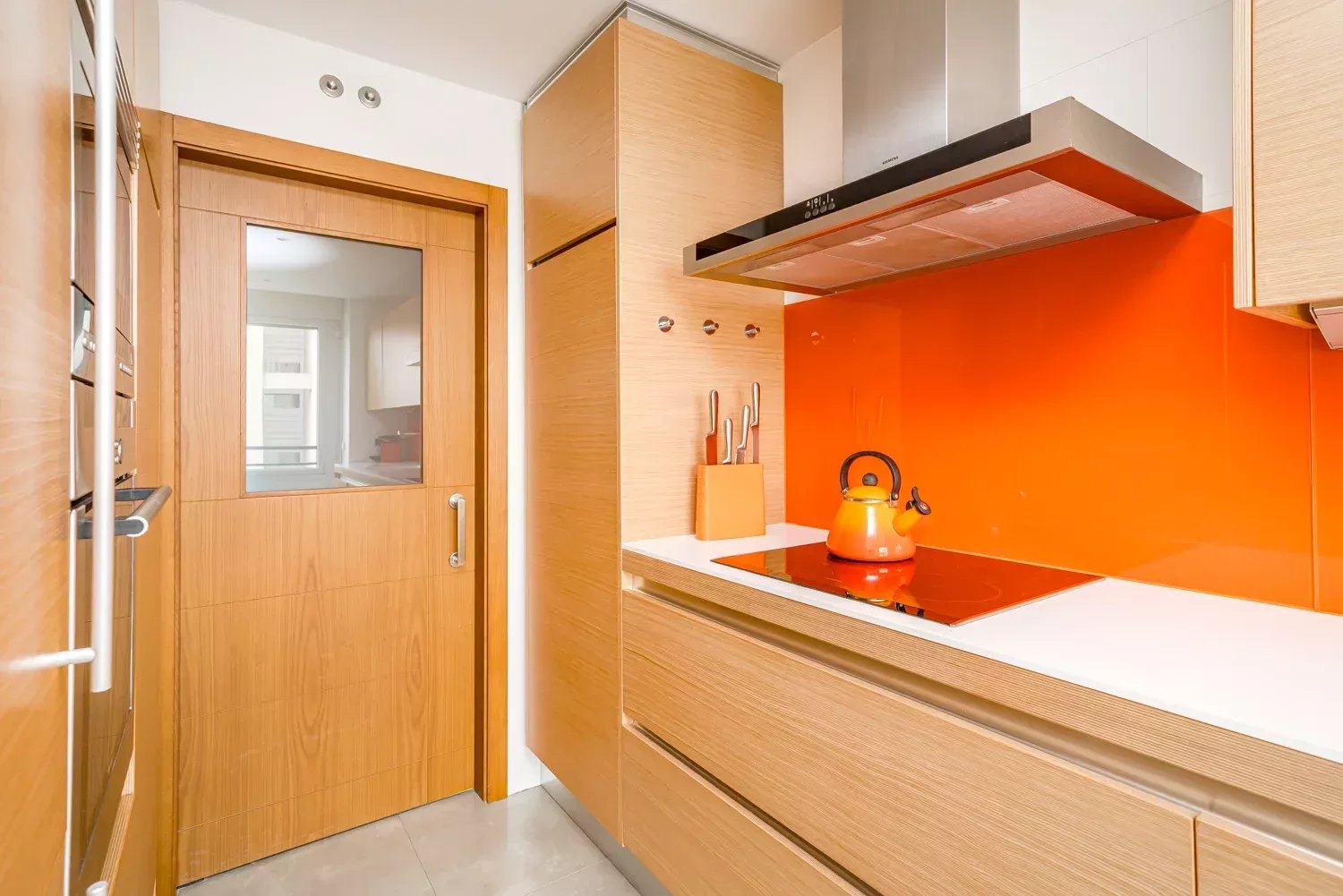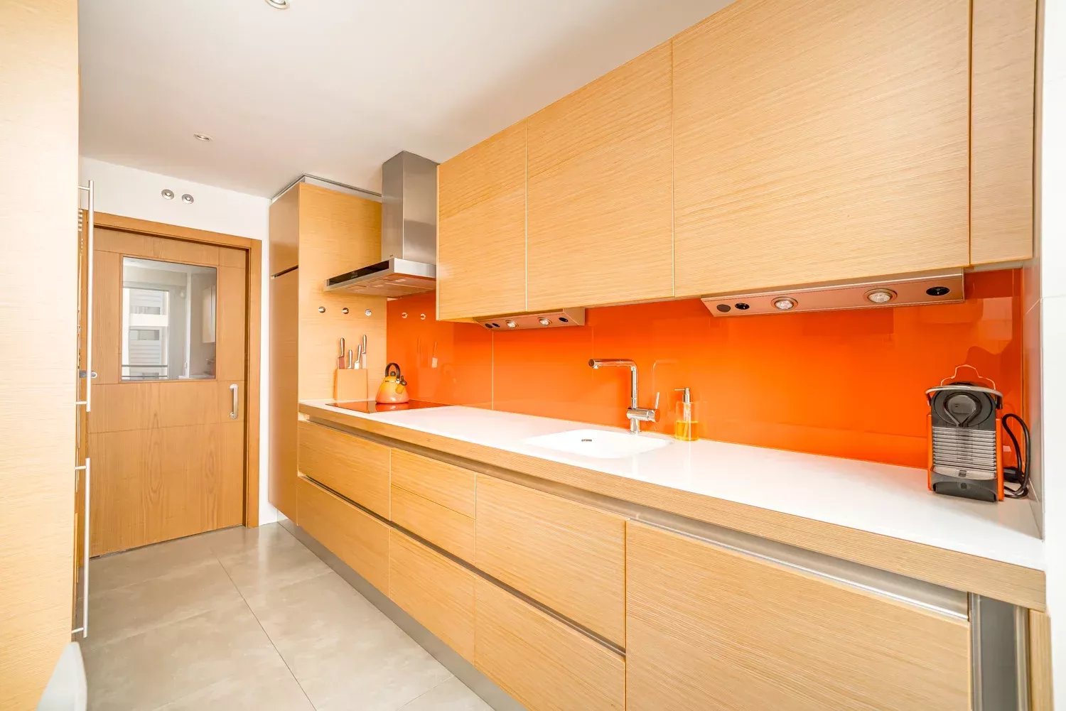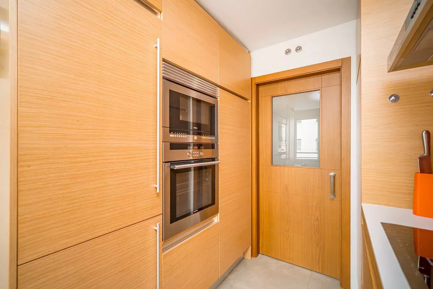 La cuisine est entièrement équipée avec des appareils électroménagers intégrés et un nécessaire de cuisine complet, idéale pour ceux qui aiment cuisiner et recevoir chez eux.