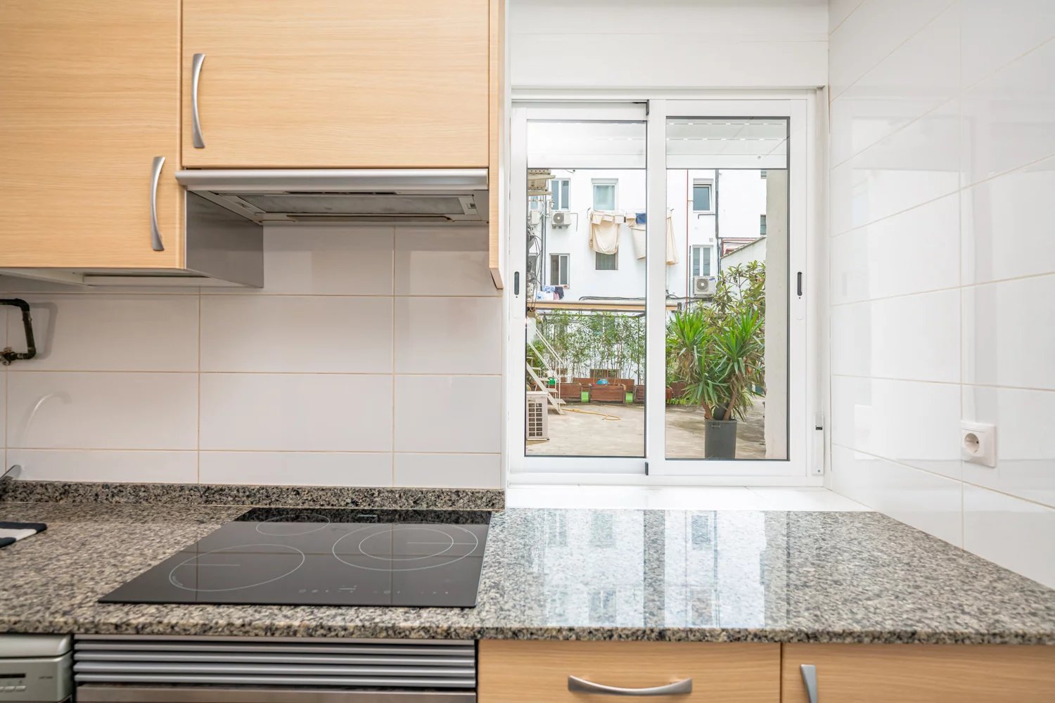 Récemment rénové, il se compose: d'un salon-salle à manger, de deux chambres, d’une salle de bain, de toilettes indépendantes et d’une cuisine entièrement équipée donnant sur un grand patio intérieur, lumineux et calme.