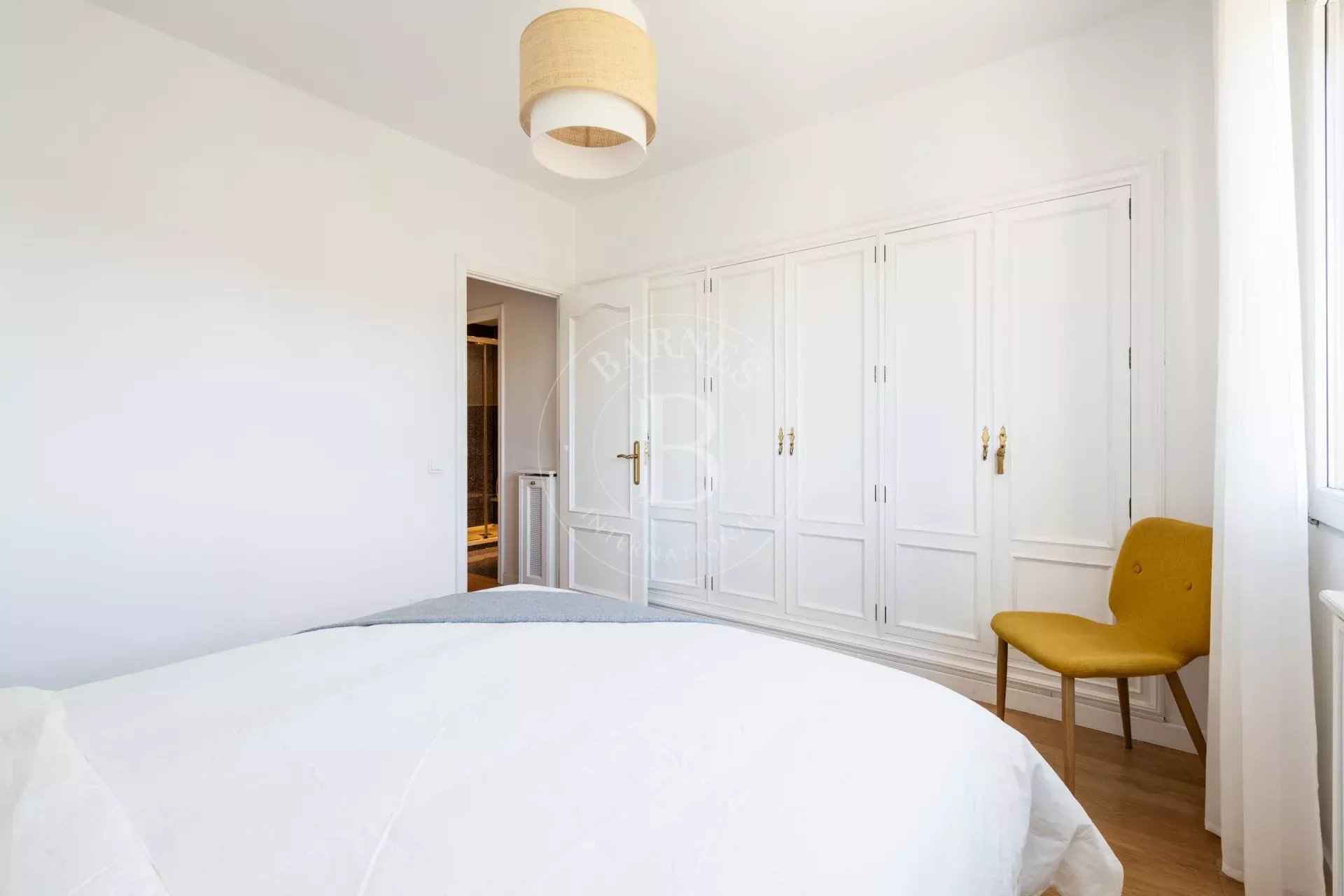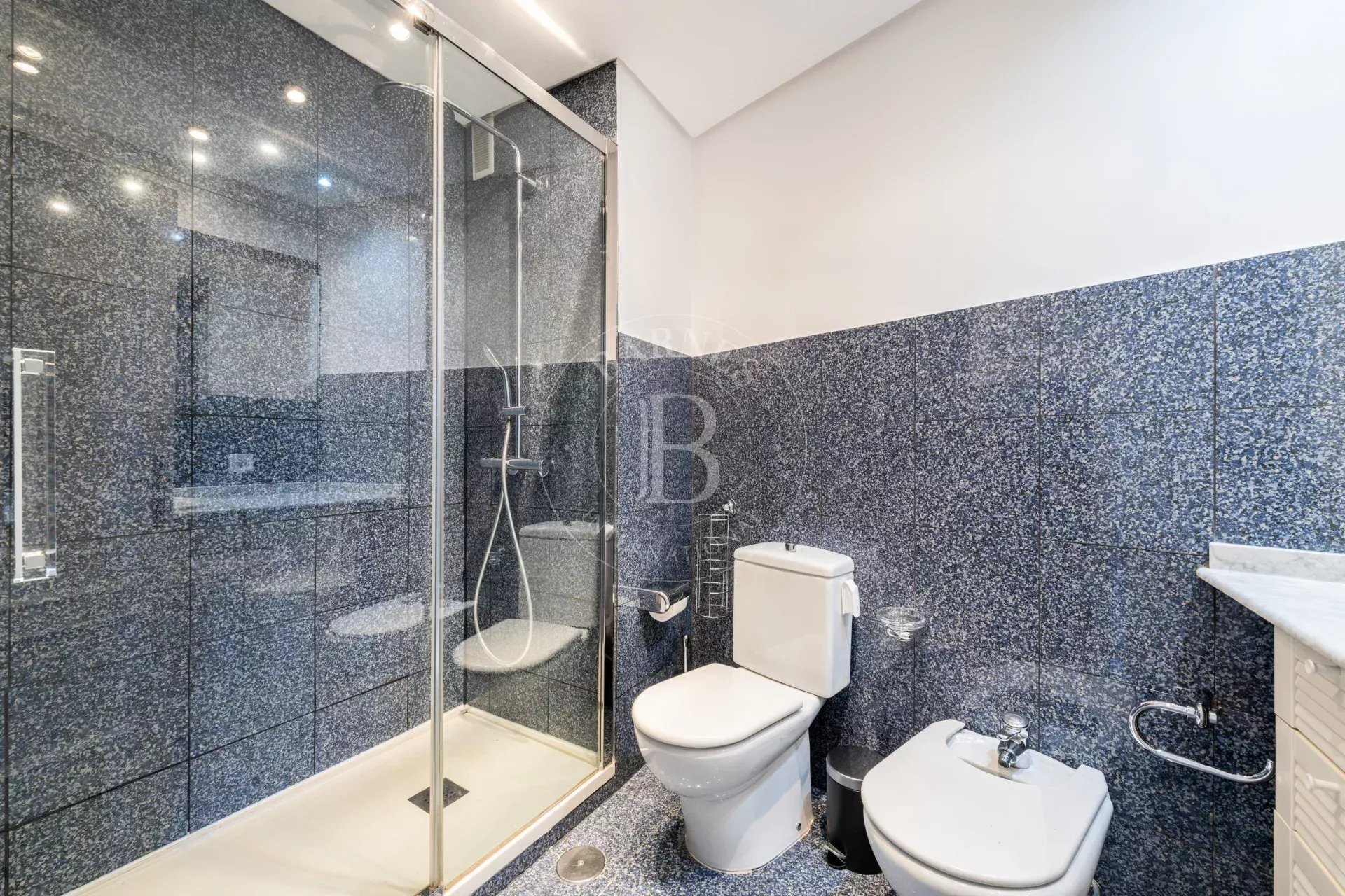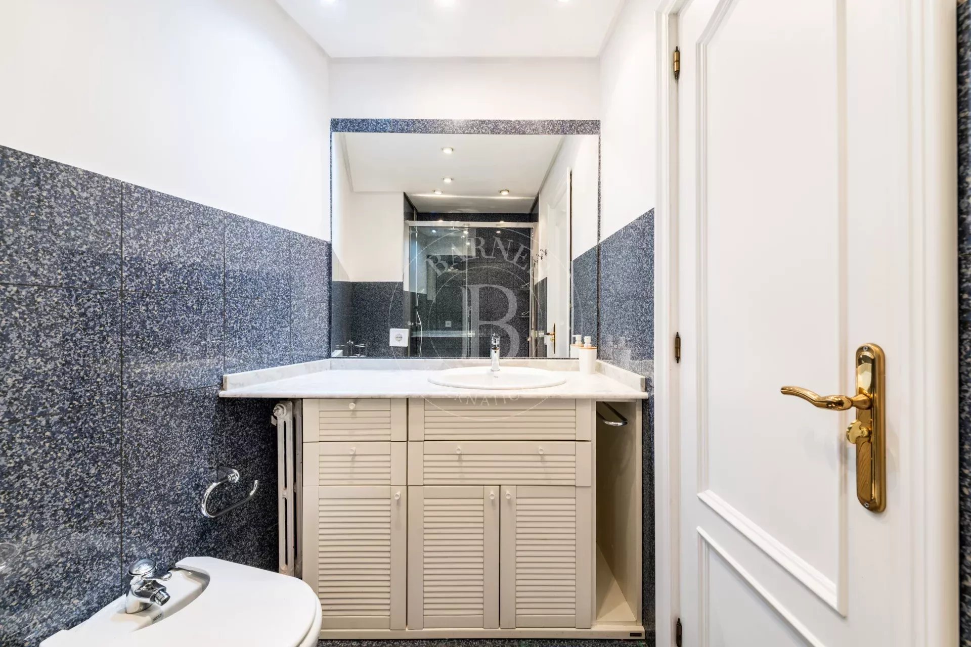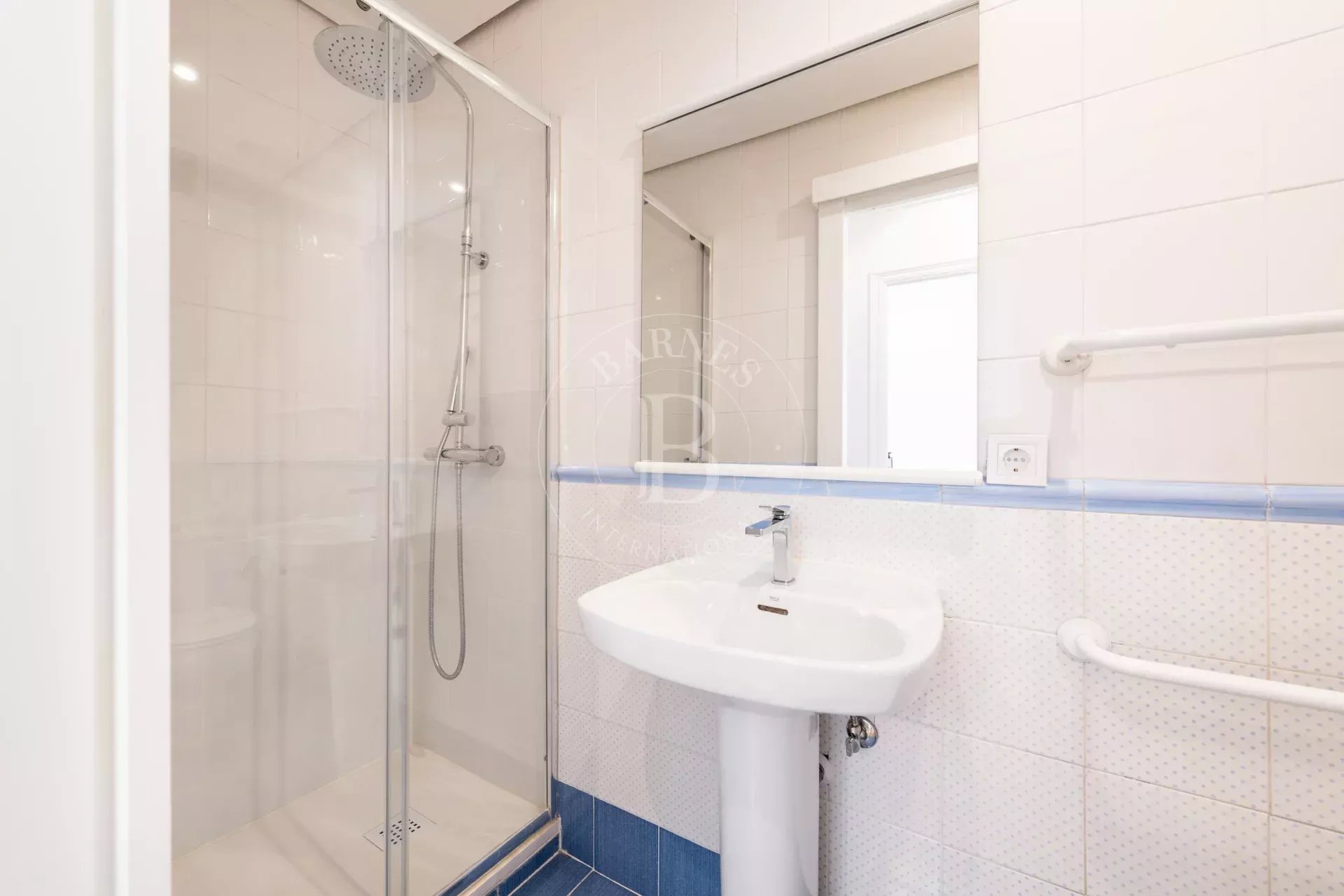 Dans une autre partie de l’appartement, une troisième chambre, également avec placards, actuellement aménagée en bureau, idéale pour le télétravail, ainsi qu’une seconde salle de bains complète avec douche.
