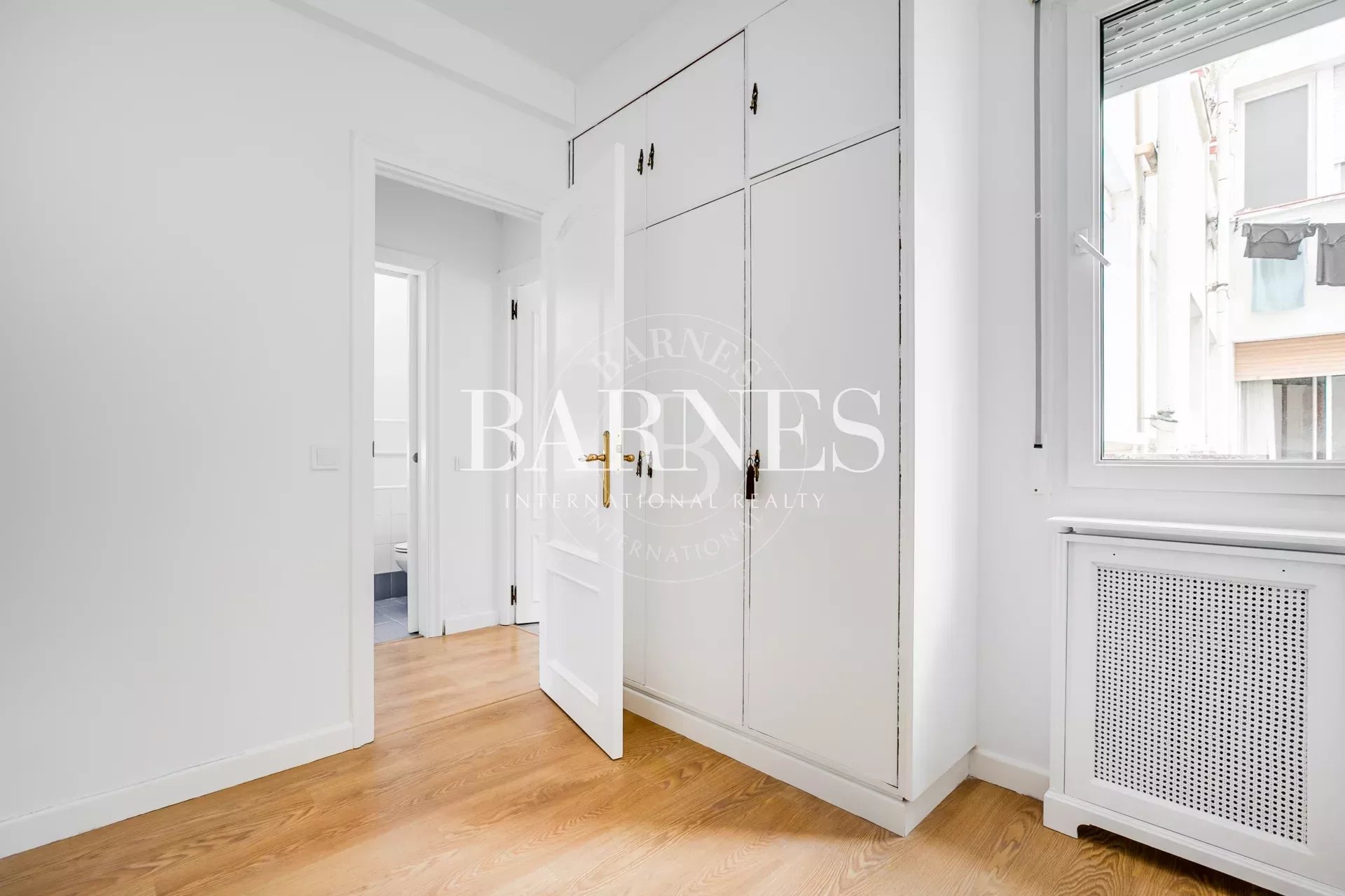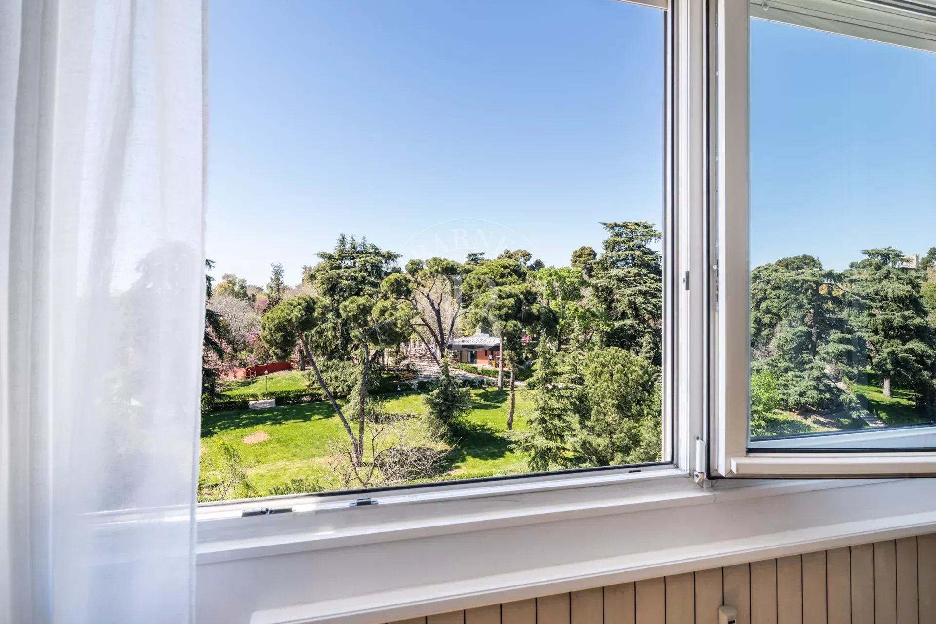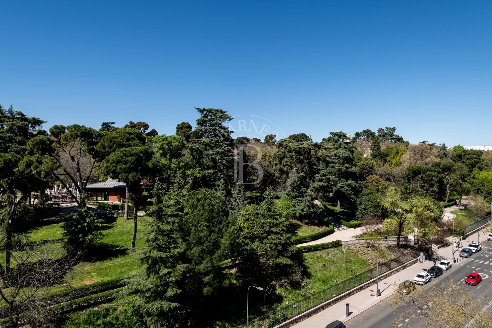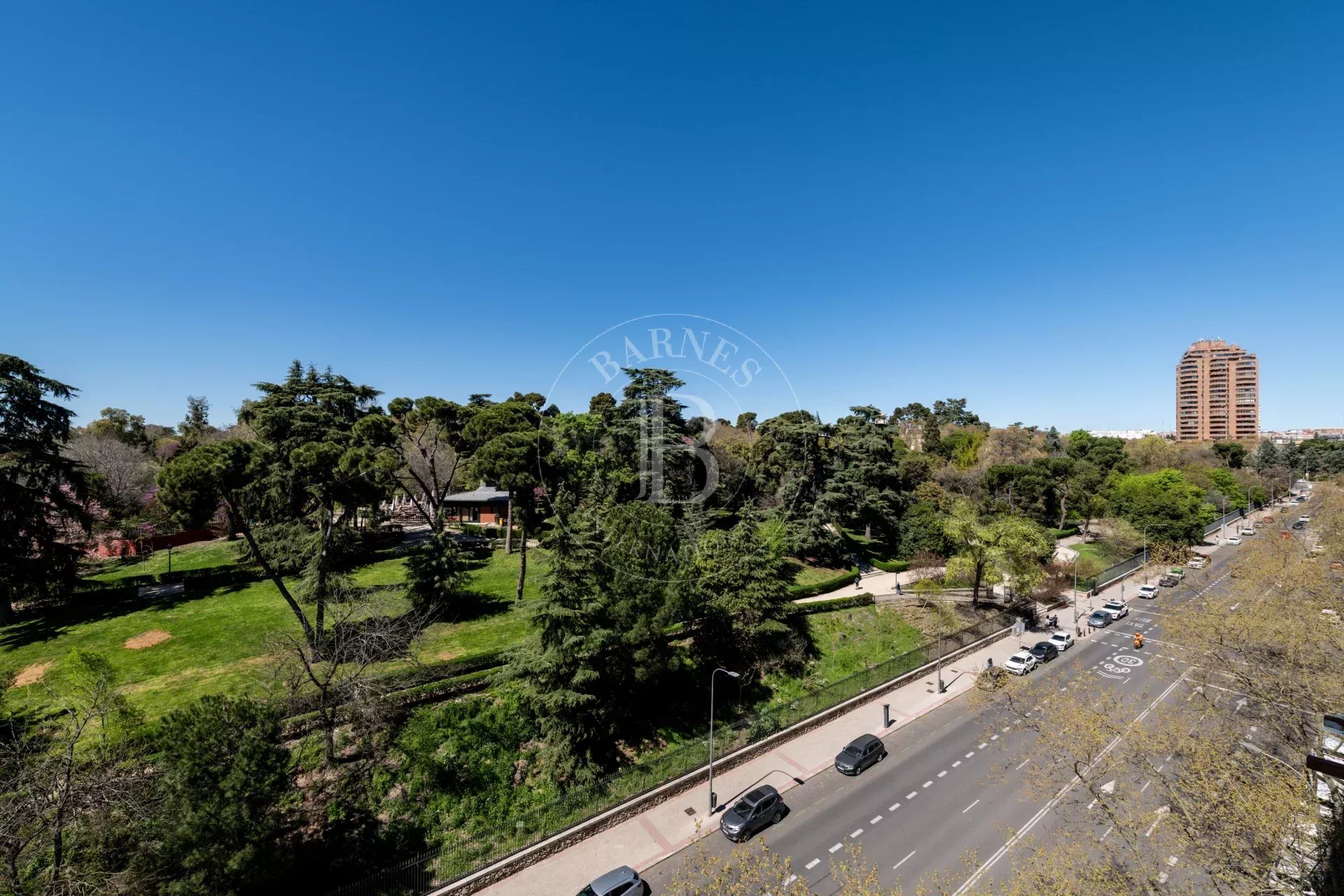 L’entrée s’effectue par un vestibule distribuant les différentes pièces. L’espace de vie comprend un vaste salon avec de grandes fenêtres ouvertes sur le Parc du Retiro, ainsi qu’une salle à manger indépendante. Grâce à son orientation ouest, l’appartement bénéficie d’une excellente luminosité et de magnifiques couchers de soleil.