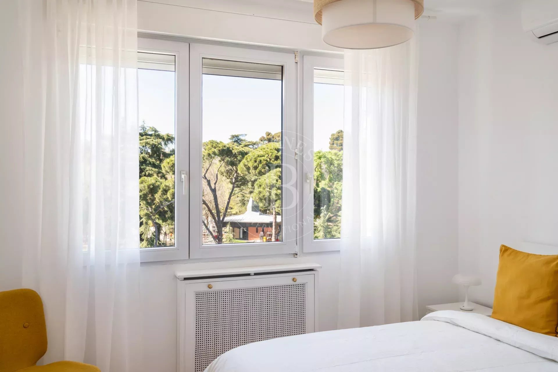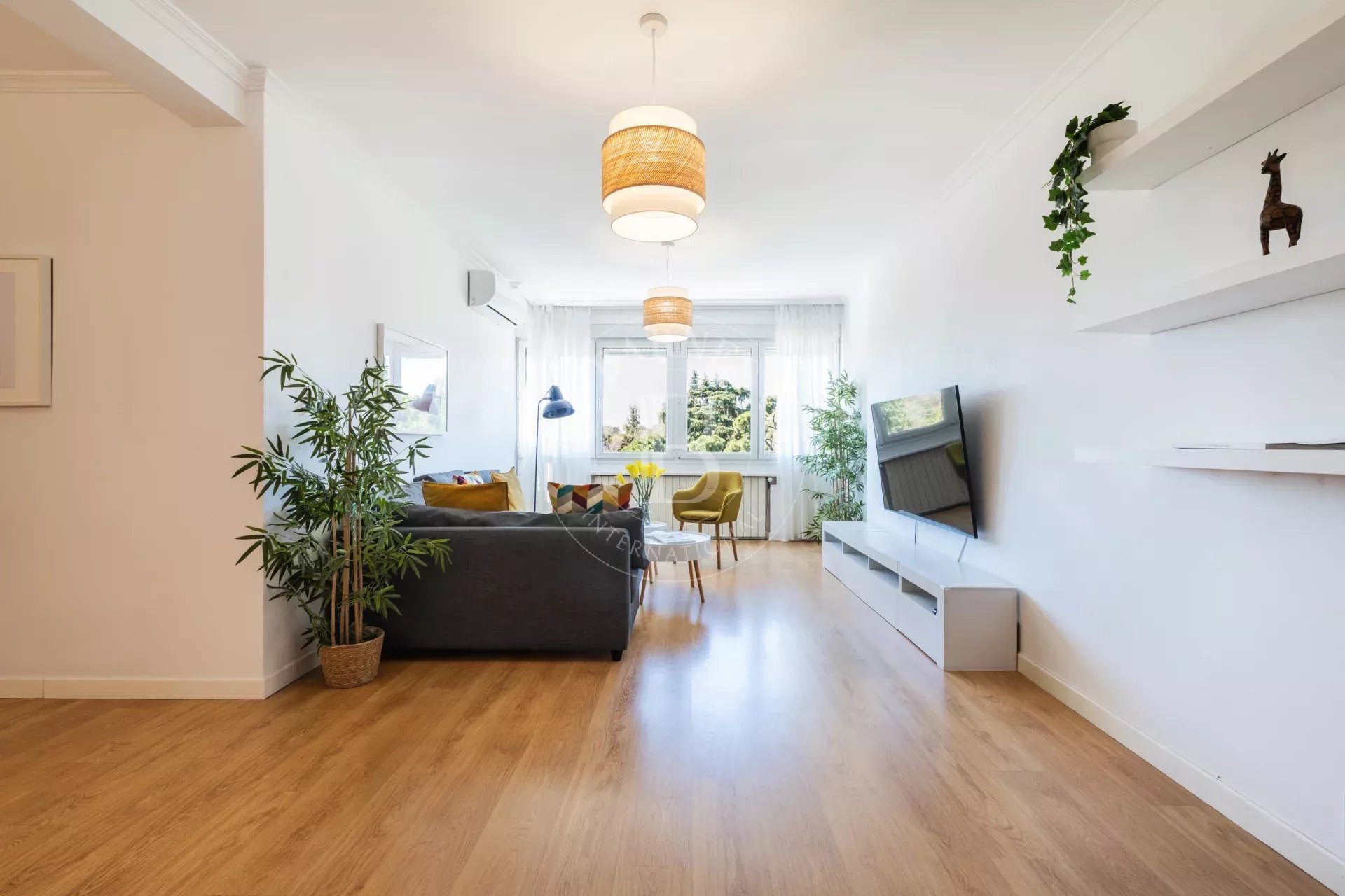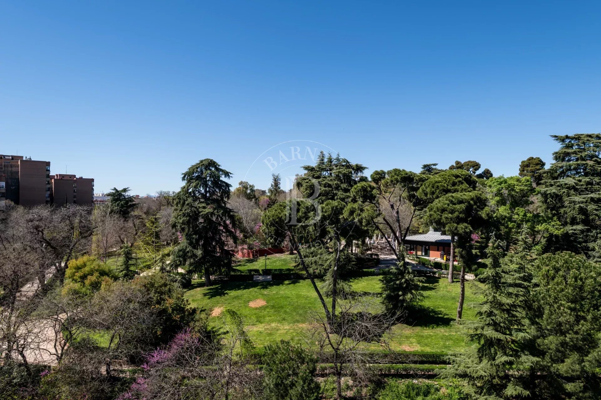 L’entrée s’effectue par un vestibule distribuant les différentes pièces. L’espace de vie comprend un vaste salon avec de grandes fenêtres ouvertes sur le Parc du Retiro, ainsi qu’une salle à manger indépendante. Grâce à son orientation ouest, l’appartement bénéficie d’une excellente luminosité et de magnifiques couchers de soleil.