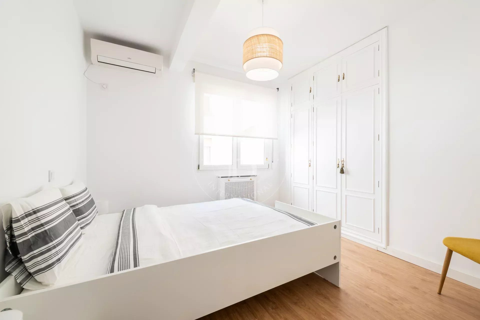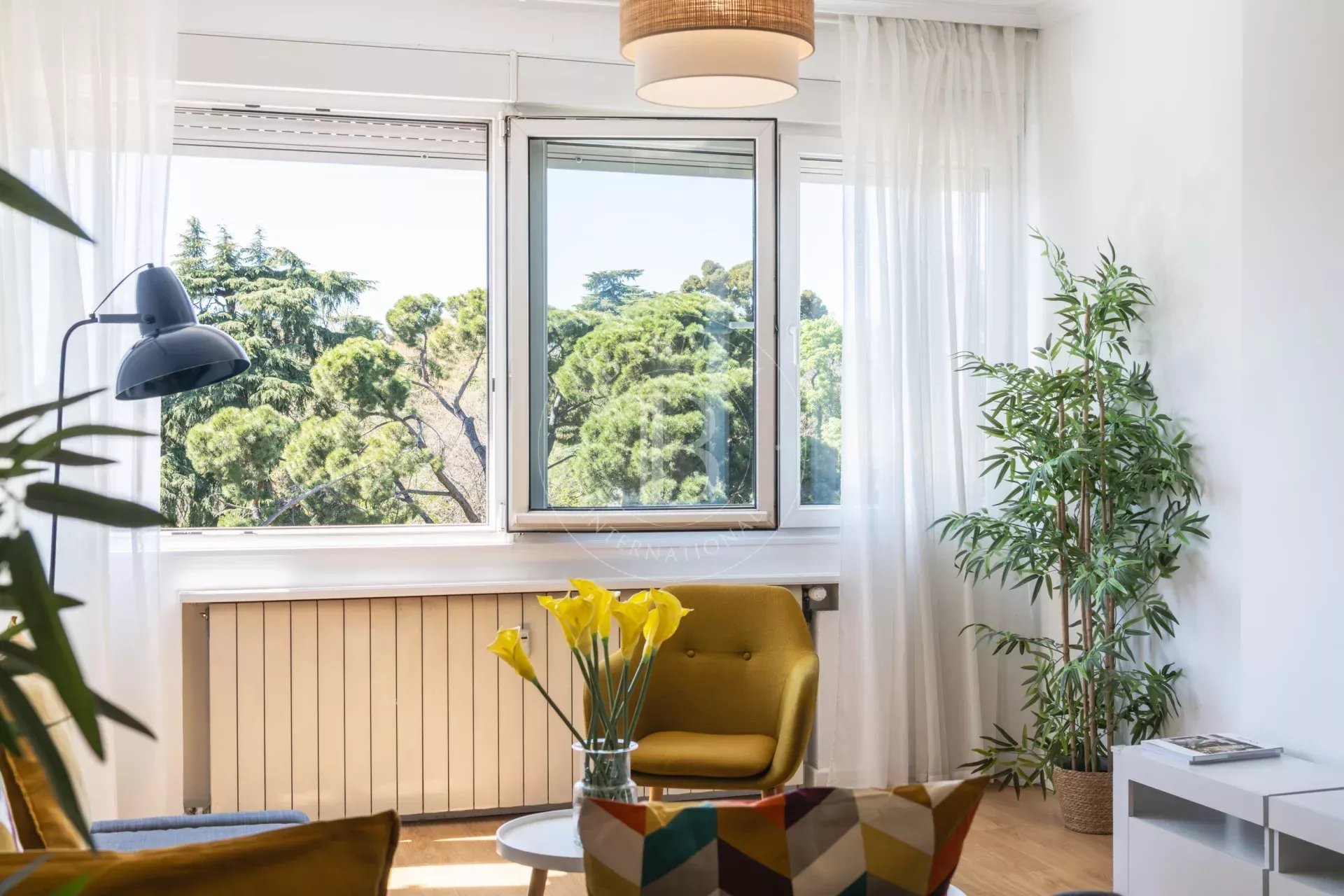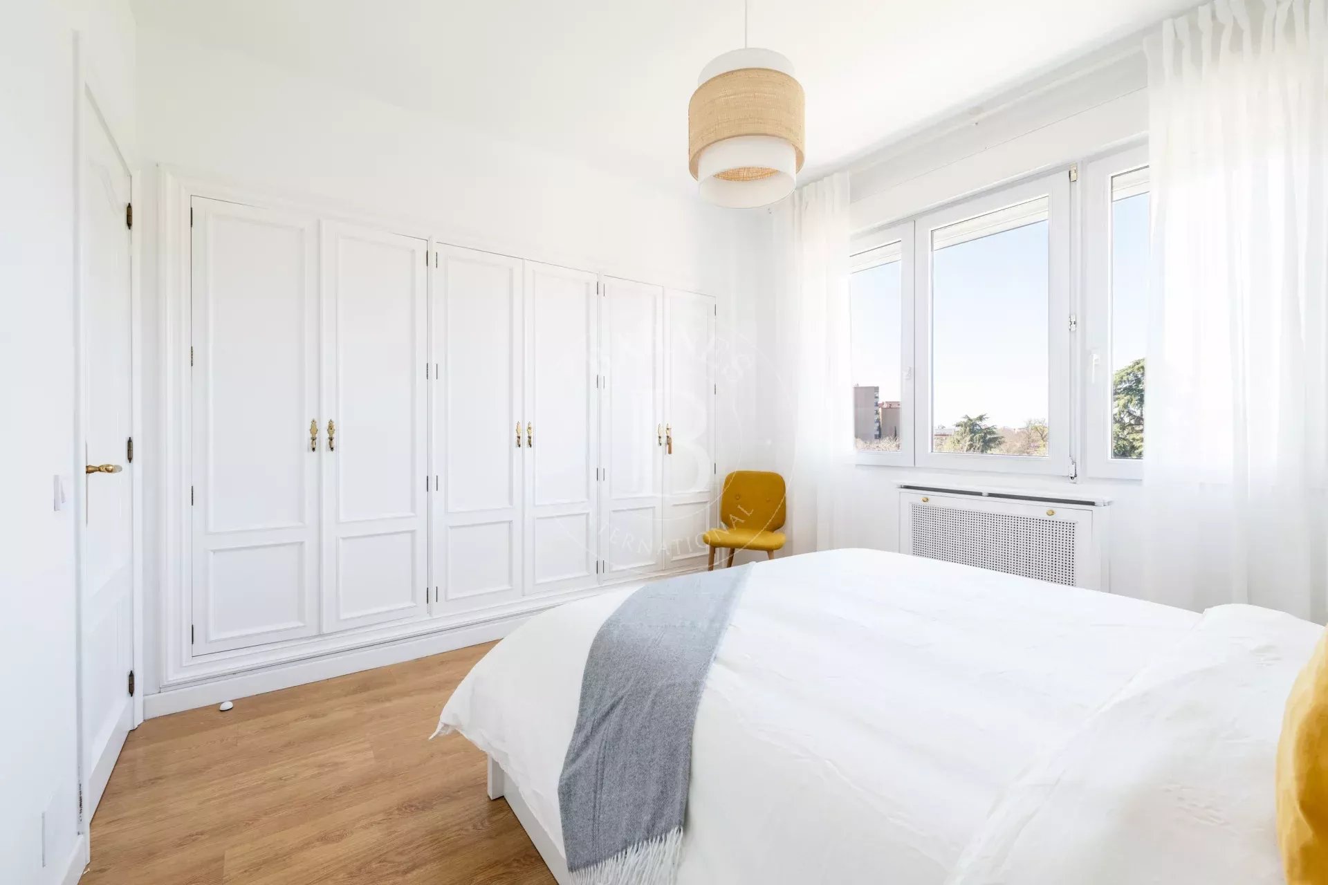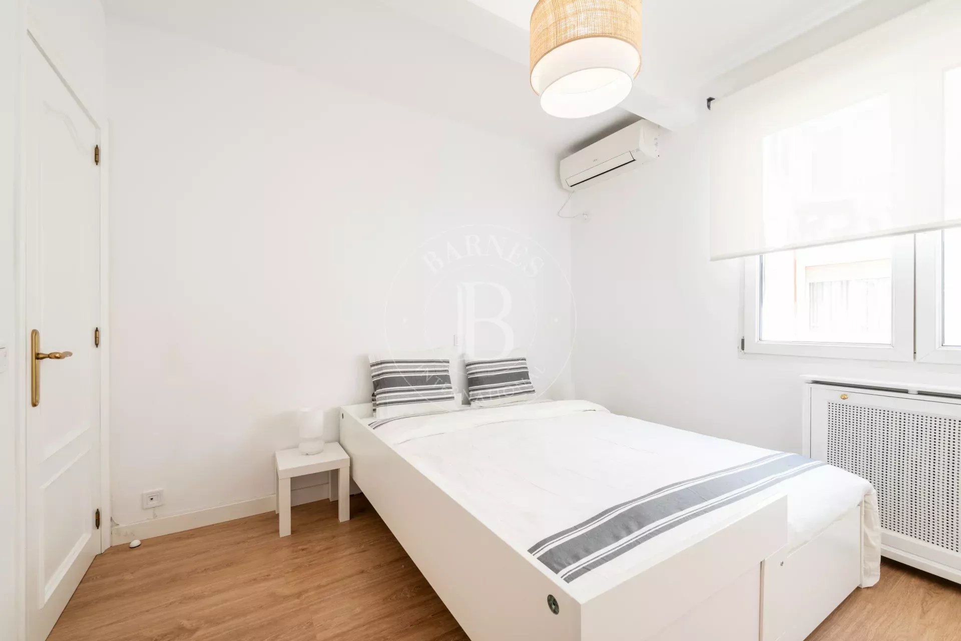 L’entrée s’effectue par un vestibule distribuant les différentes pièces. L’espace de vie comprend un vaste salon avec de grandes fenêtres ouvertes sur le Parc du Retiro, ainsi qu’une salle à manger indépendante. Grâce à son orientation ouest, l’appartement bénéficie d’une excellente luminosité et de magnifiques couchers de soleil.
