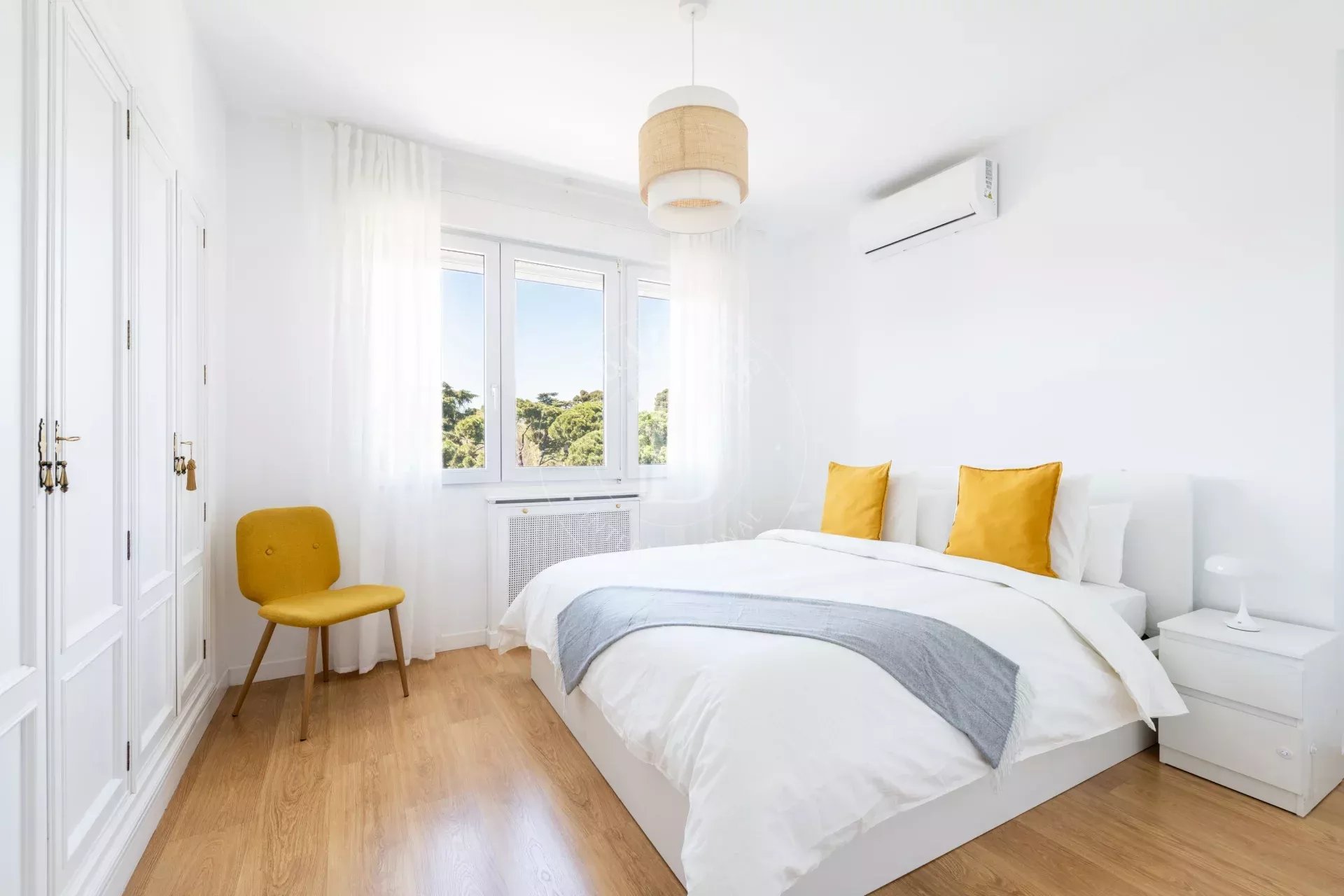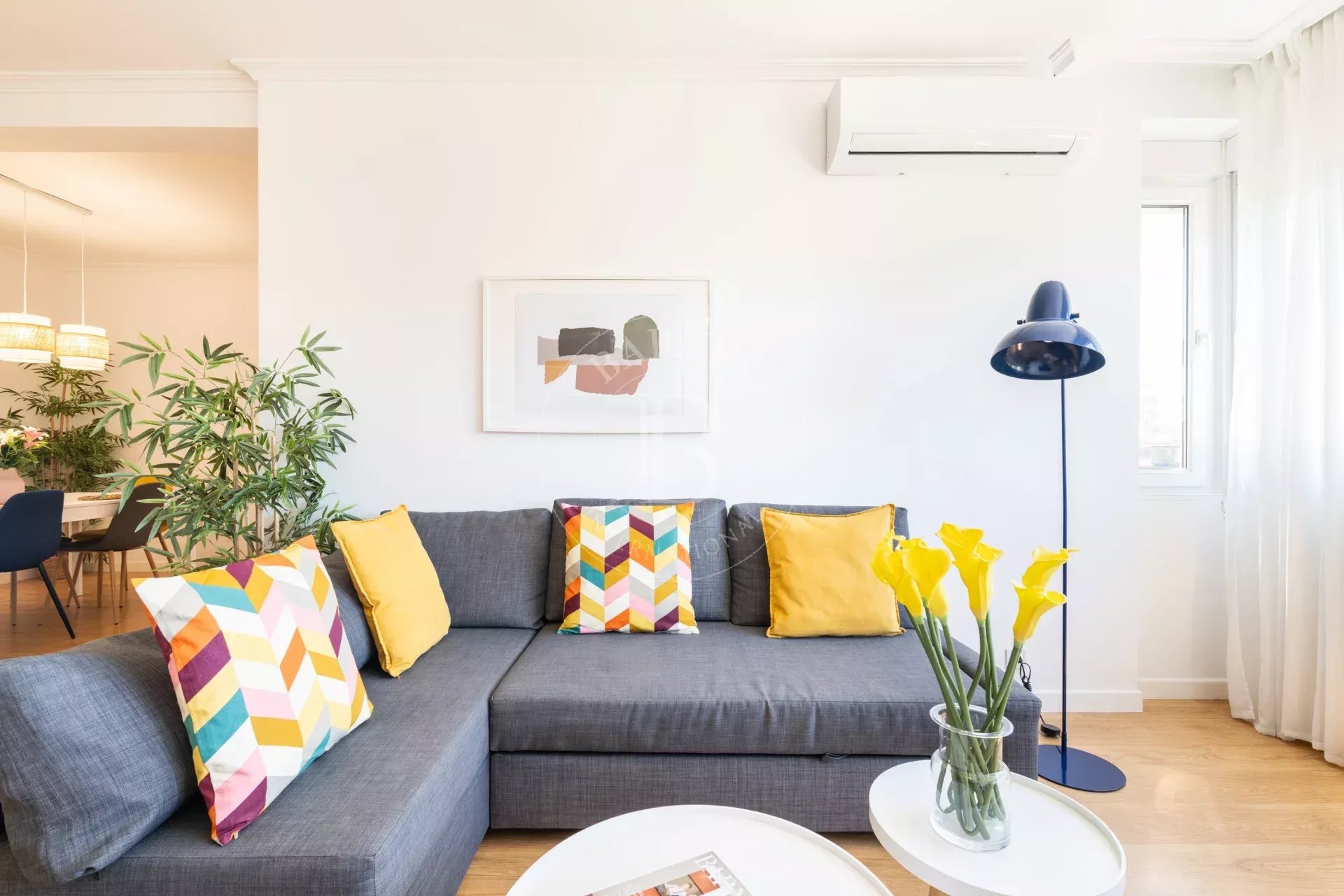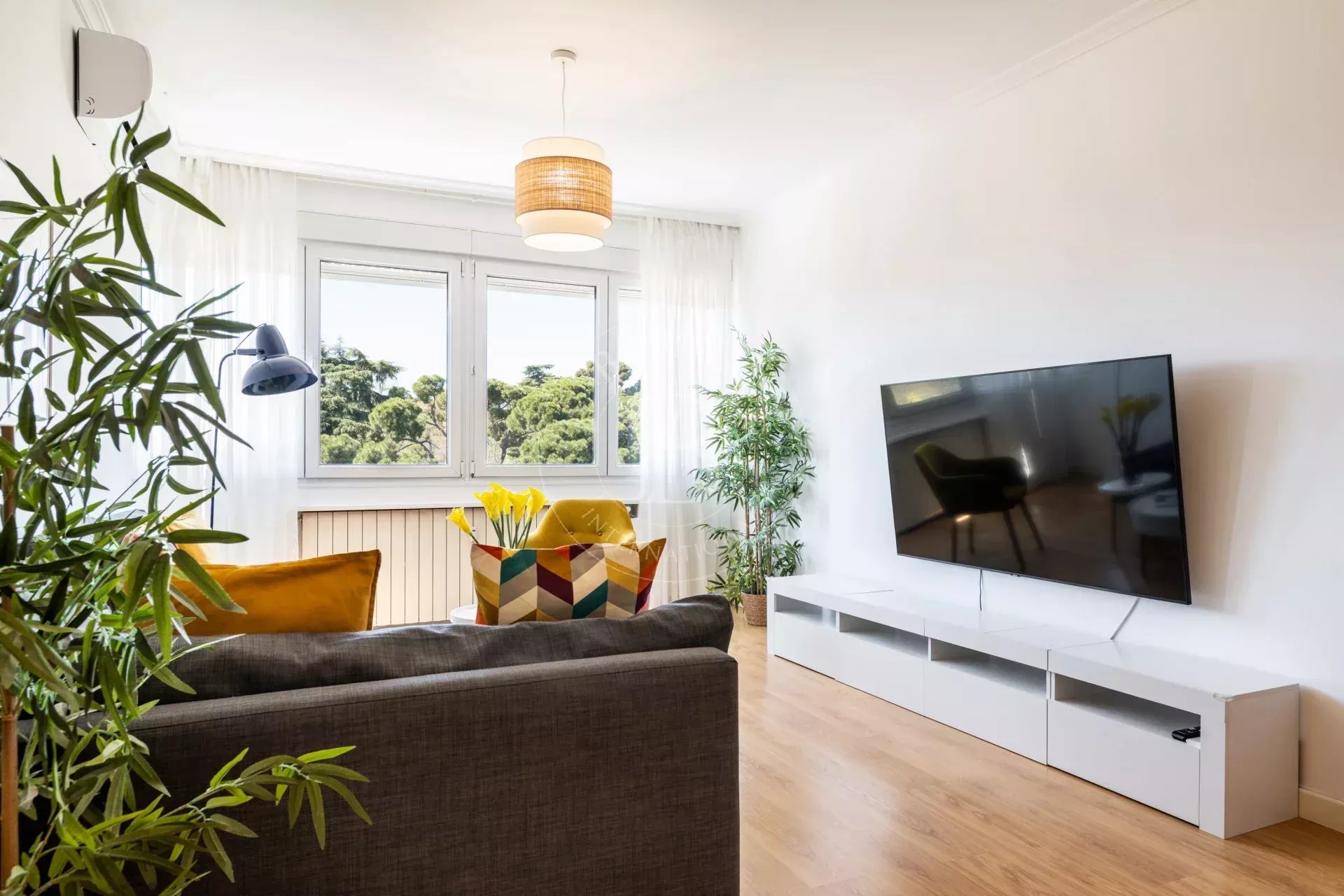 L’appartement offre de belles prestations : fenêtres double vitrage avec isolation thermique et acoustique, parquet stratifié, hauts plafonds, murs lisses et menuiseries neuves. Il dispose également de chauffage central, eau chaude collective, climatisation (splits dans toutes les pièces) et visiophone.