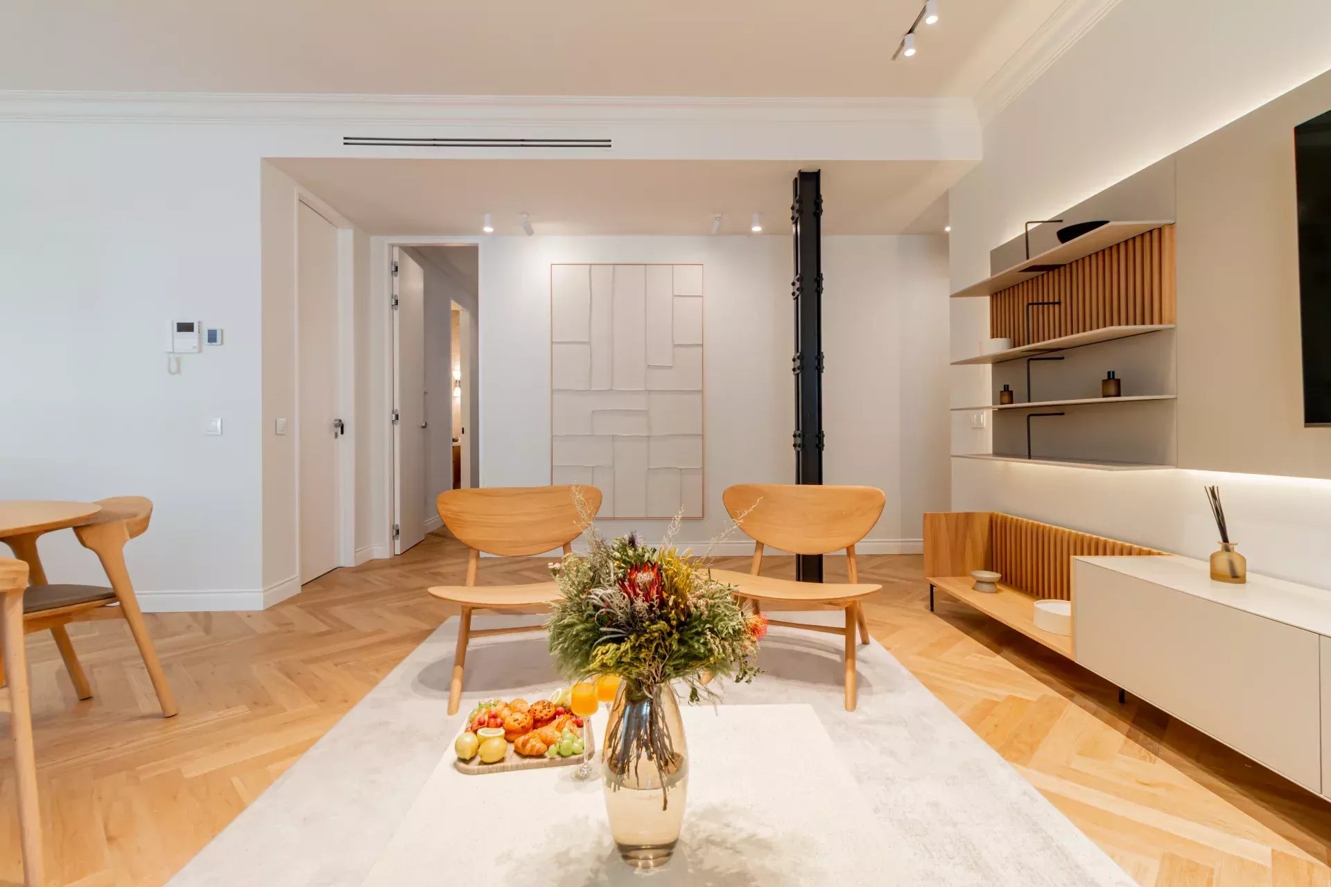 BARNES Madrid présente cet appartement moderne et lumineux de deux chambres et deux salles de bains, situé dans l’un des quartiers les plus prestigieux de la capitale : Recoletos, au cœur du Barrio de Salamanca. Une option idéale pour des séjours temporaires, que ce soit pour le travail, les études ou une escapade prolongée à Madrid.
