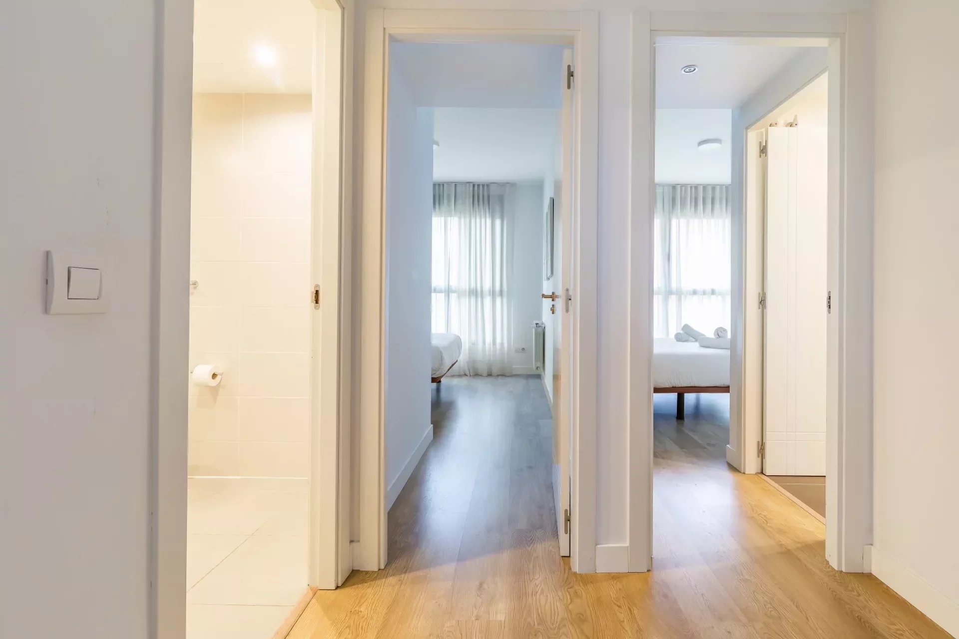 Il dispose de trois chambres : deux doubles et une simple, ainsi que deux salles de bains.