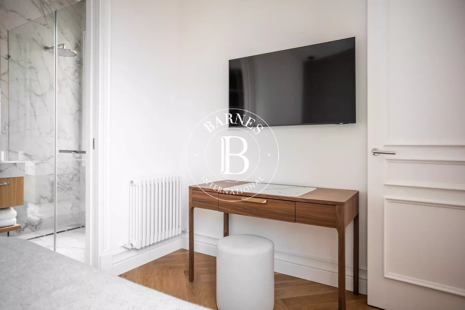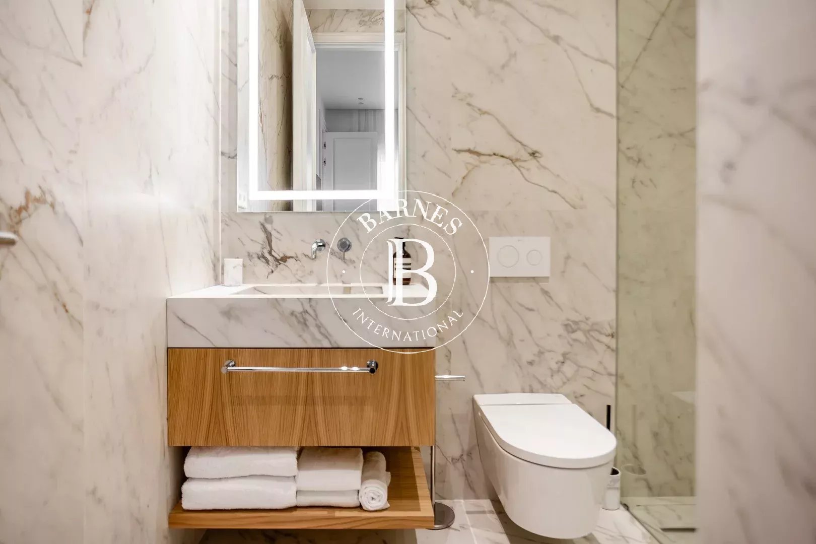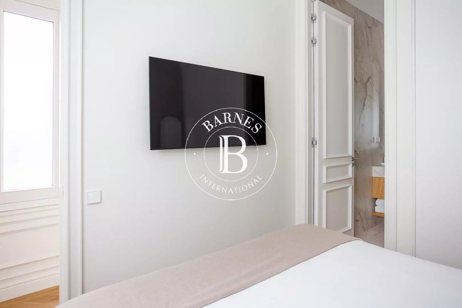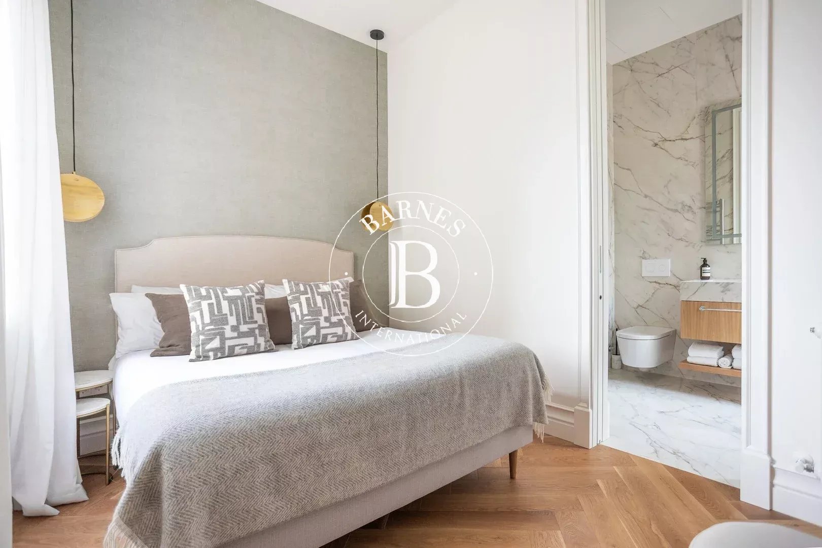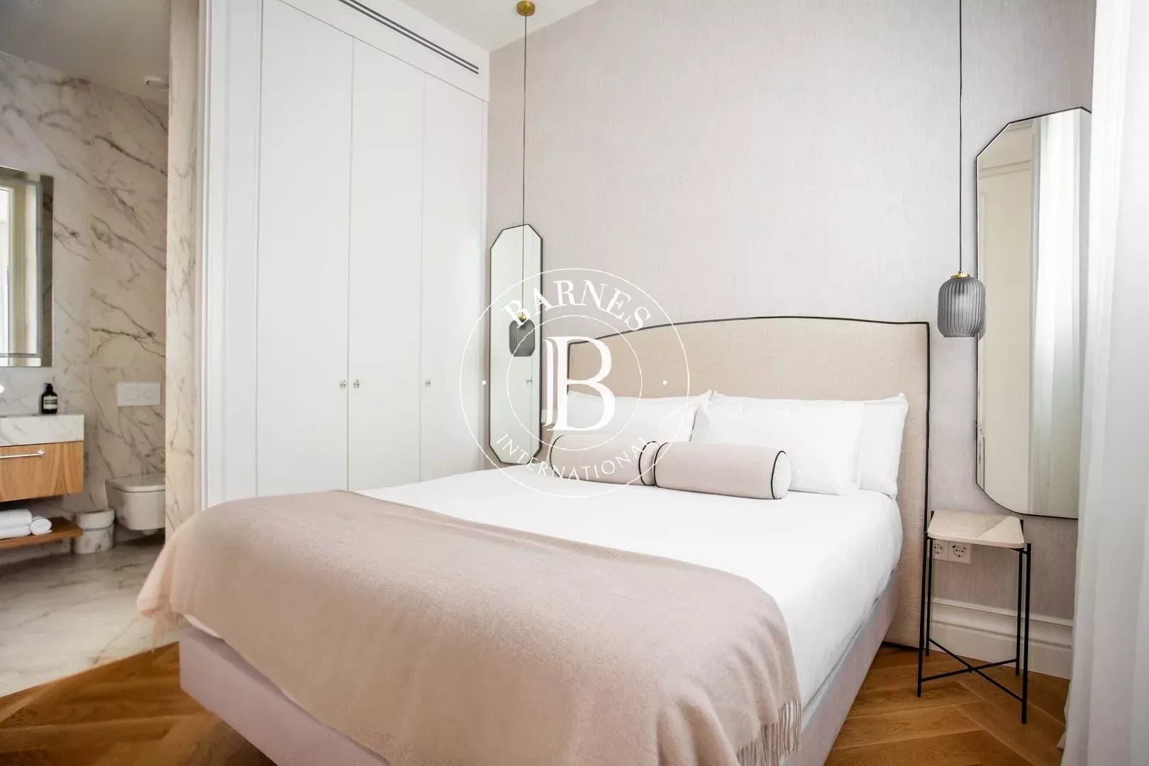 L’appartement dispose de trois chambres doubles, toutes avec salle de bain en suite, garantissant confort et intimité. Un WC invités complète le bien. Pouvant accueillir jusqu’à six personnes, cette propriété est idéale pour les familles ou les professionnels recherchant une résidence temporaire haut de gamme.