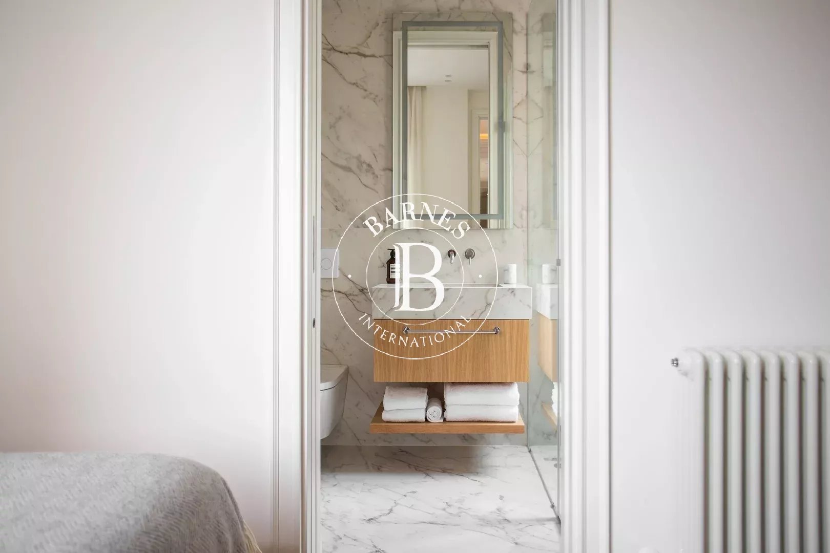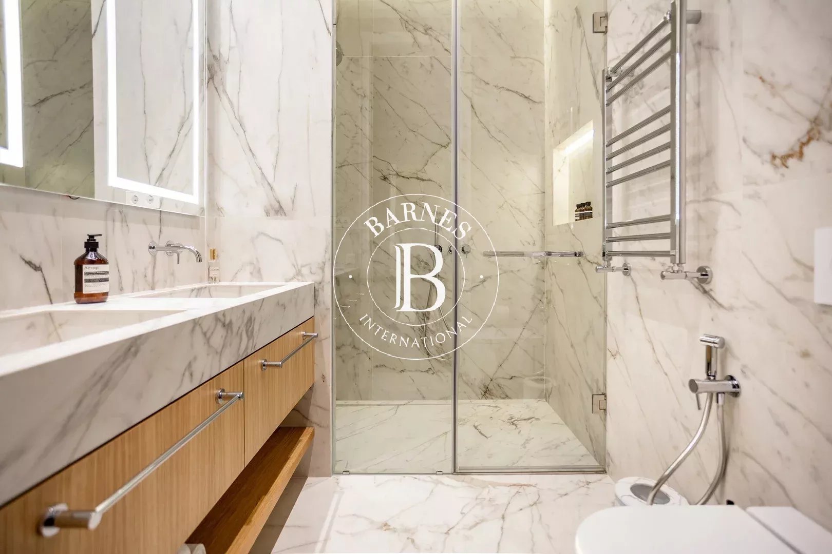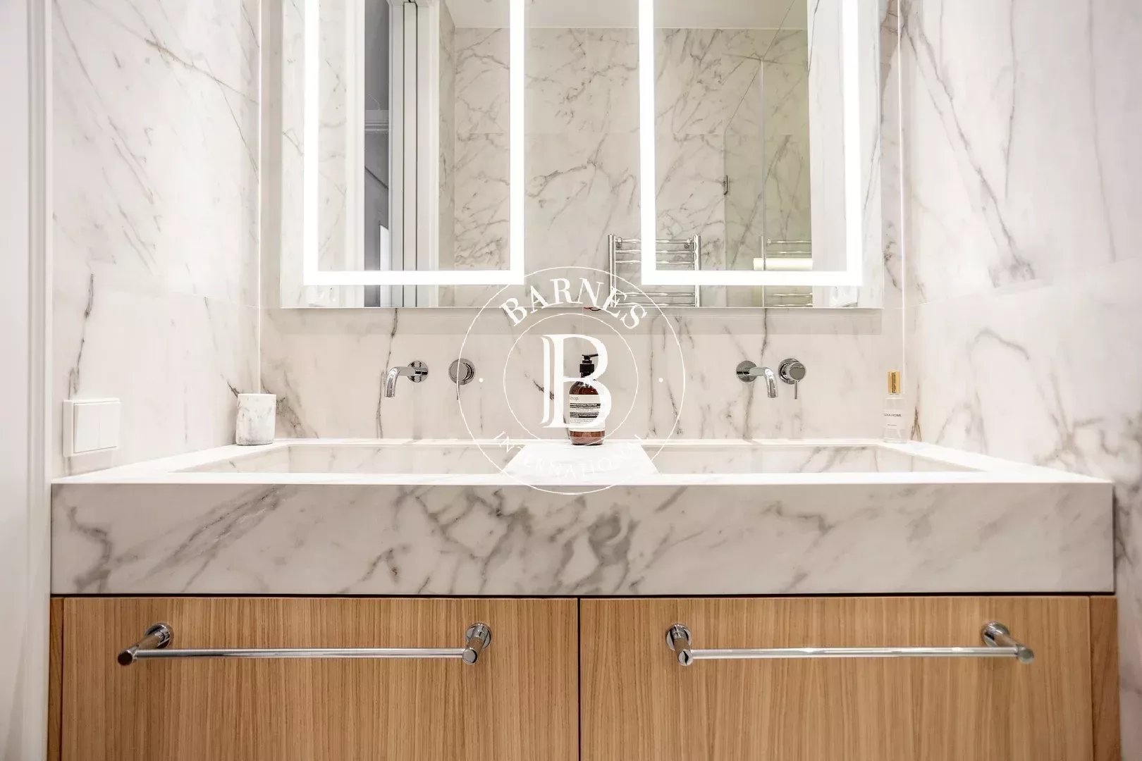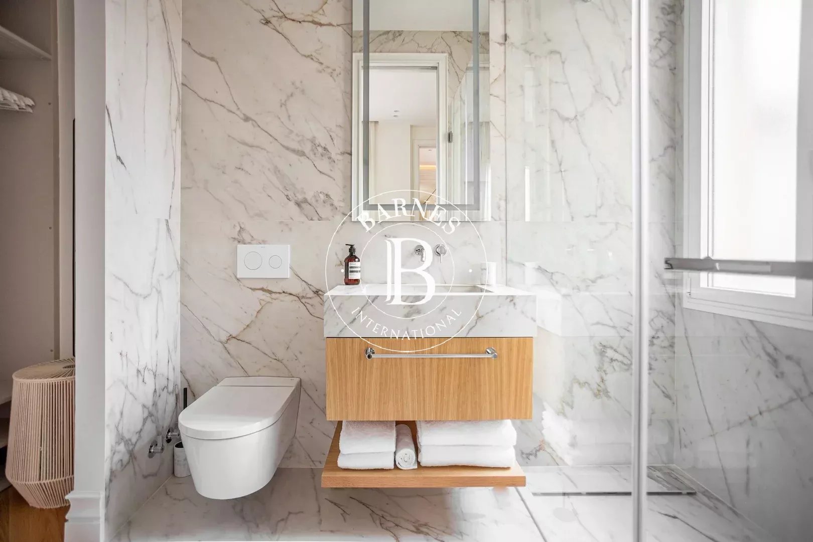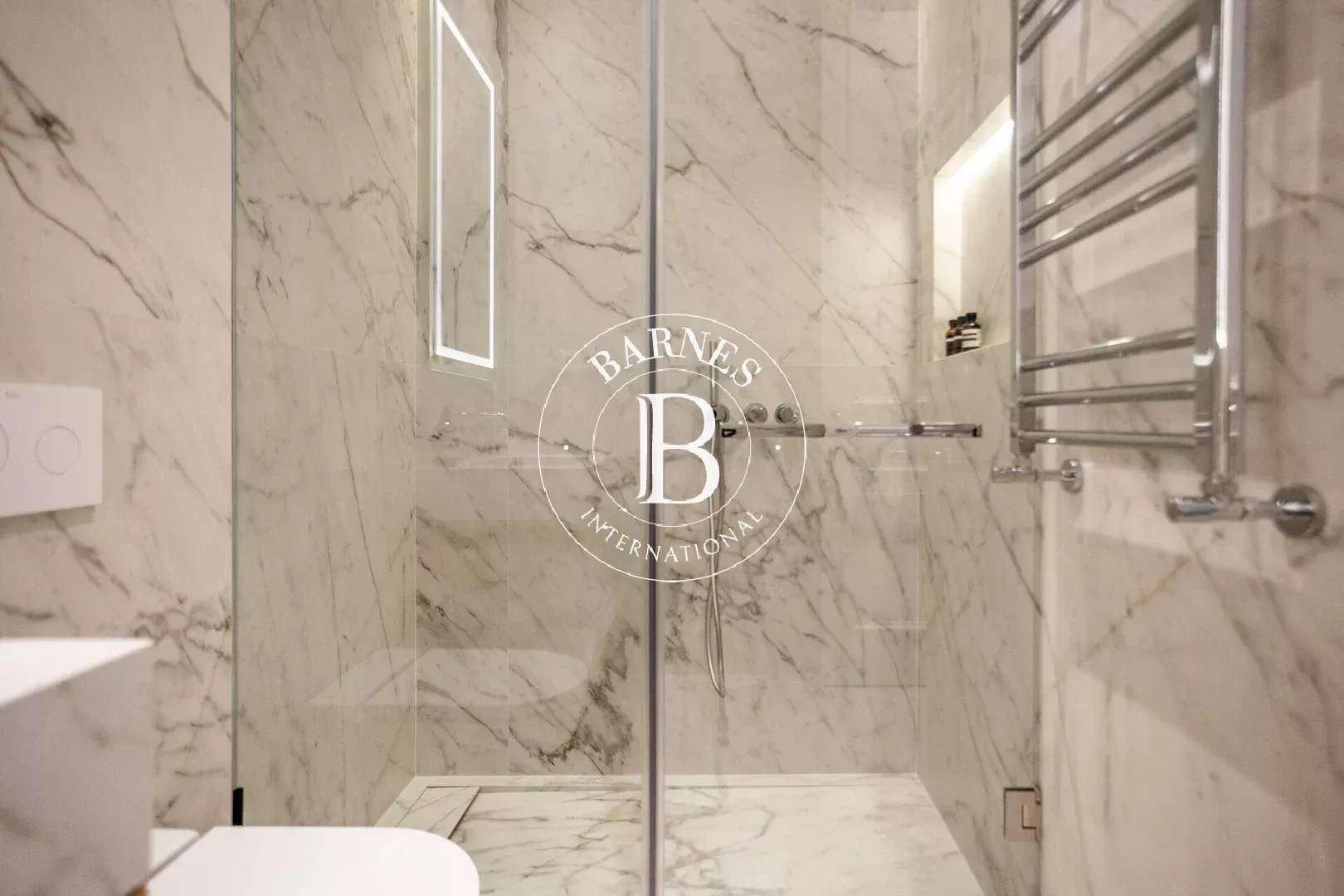 L’appartement dispose de trois chambres doubles, toutes avec salle de bain en suite, garantissant confort et intimité. Un WC invités complète le bien. Pouvant accueillir jusqu’à six personnes, cette propriété est idéale pour les familles ou les professionnels recherchant une résidence temporaire haut de gamme.