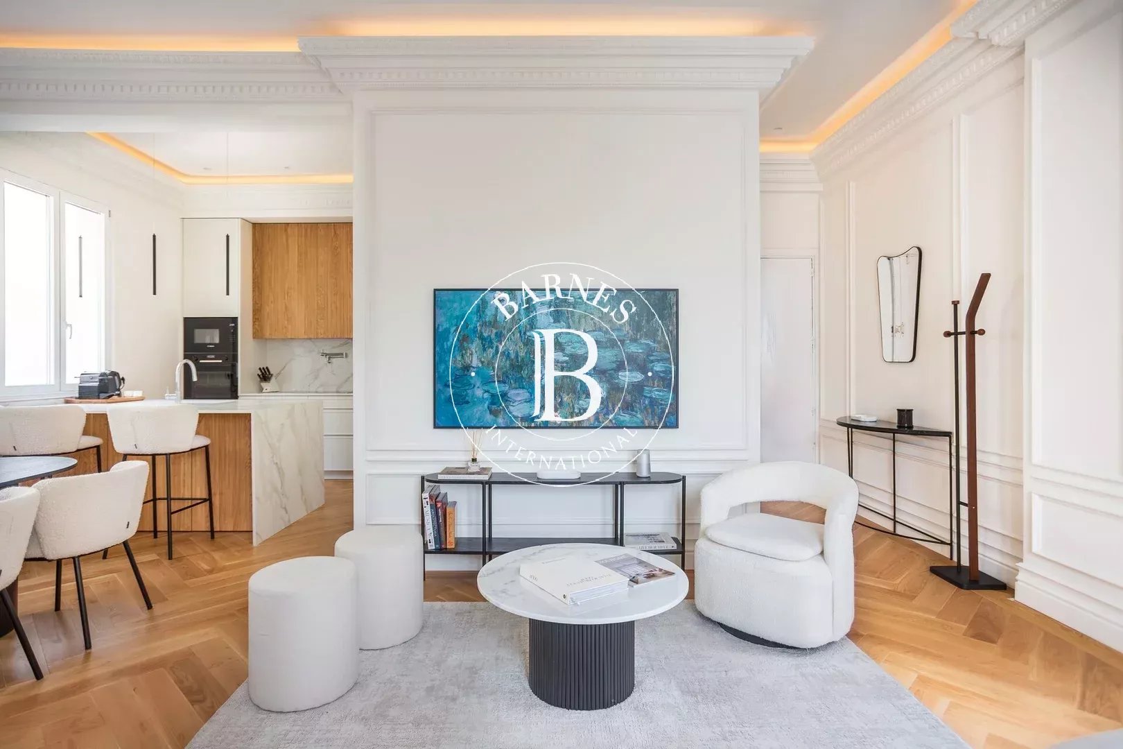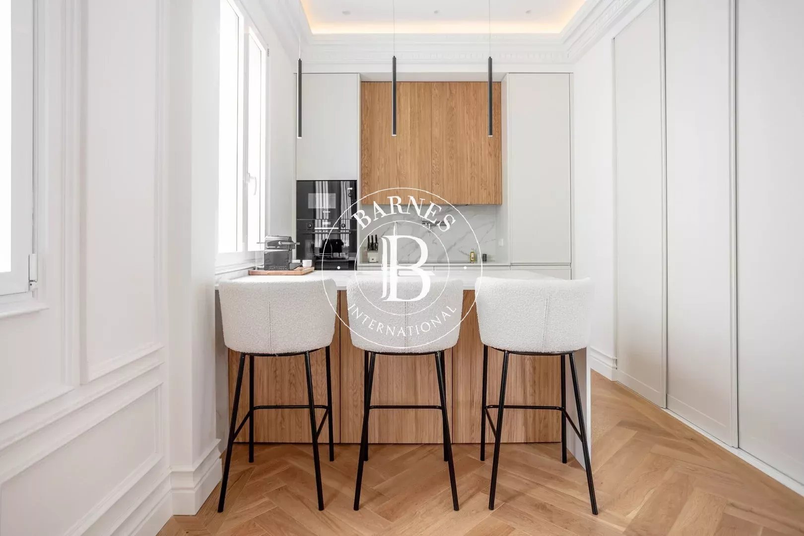 La propriété s’articule autour d’un vaste salon-salle à manger lumineux, conçu comme un espace élégant et convivial. La cuisine ouverte s’intègre harmonieusement, avec un îlot central faisant office de bar, équipée d’électroménagers de dernière génération et entièrement fonctionnelle. L’ensemble offre un équilibre parfait entre esthétique et praticité.