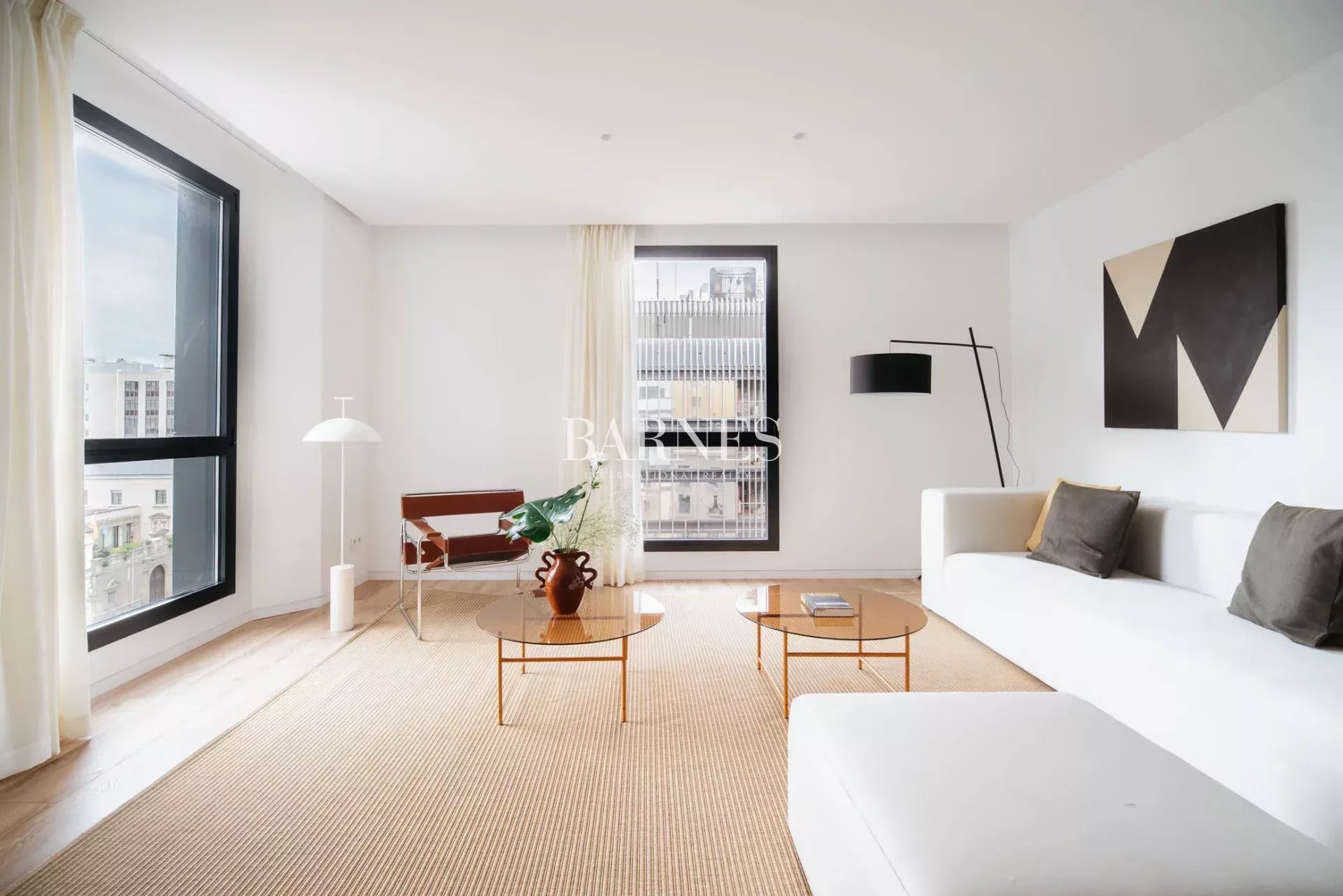 Parquet en chêne dans tout l'appartement avec chauffage par le sol, ce qui rend l'appartement très confortable en hiver. Grandes fenêtres avec fermeture hermétique et insonorisée, et double vitrage, de couleur blanche. Climatisation par gaines, chaude et froide, centrale pour toute la maison. Connexion internet gratuite à l'immeuble via le système WIFI. Appartement entièrement meublé et équipé, avec double jeu de draps et de serviettes dans chaque chambre, ainsi que panier de bienvenue et kit de produits d'hygiène à l'arrivée. L'appartement dispose d'une place de parking dans l'immeuble avec accès à l'ascenseur.