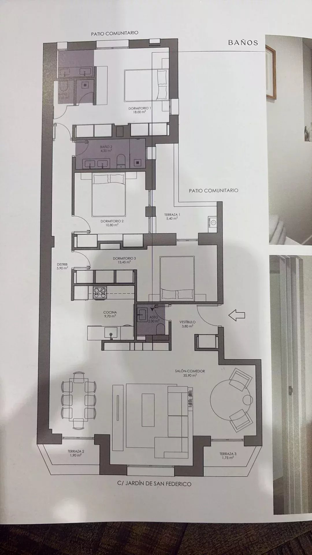 La zone nuit comprend trois chambres doubles, dont une suite parentale, ainsi qu’une seconde salle de bains complète et un WC invité. Les finitions de qualité, les placards intégrés et un éclairage soigné renforcent le confort dans tout l’appartement. Deux des chambres bénéficient d’un accès direct et partagé à la terrasse.